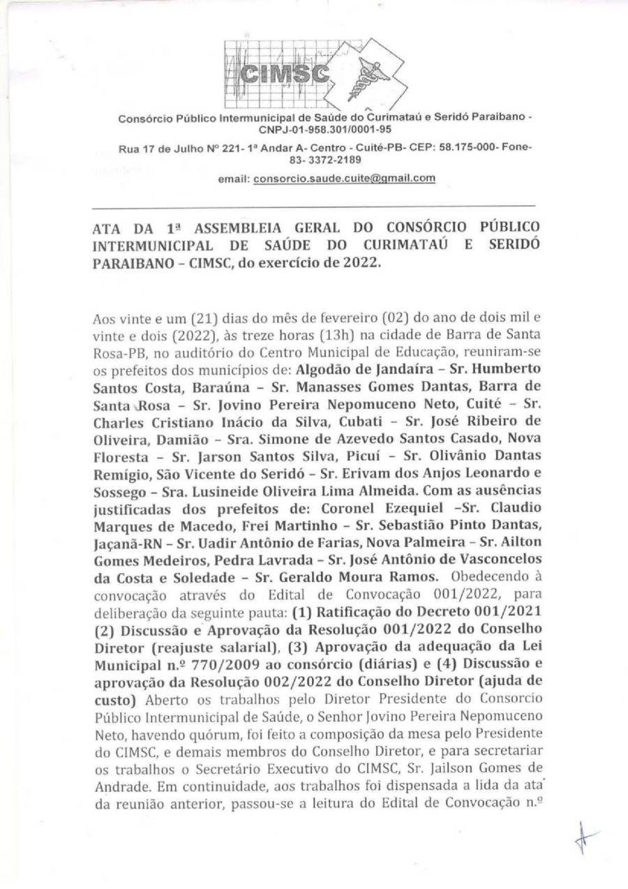 ATA DA 1° ASSEMBLÉIA GERAL - 21 DE FEVEREIRO 2022