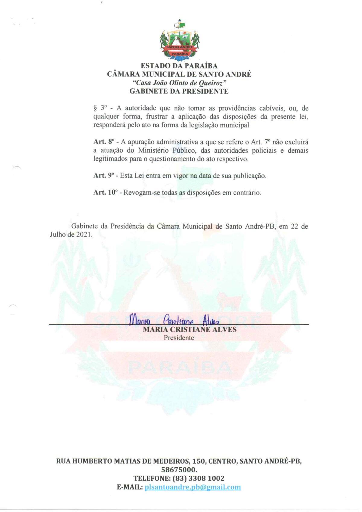 Conforme MP n° 2.200-2 de 24/08/2001, que institui a infraestrutura de chaves Públicas. Matéria Publicada no Diário Oficial do Município de Santo André/PB no dia - Edição 00457.