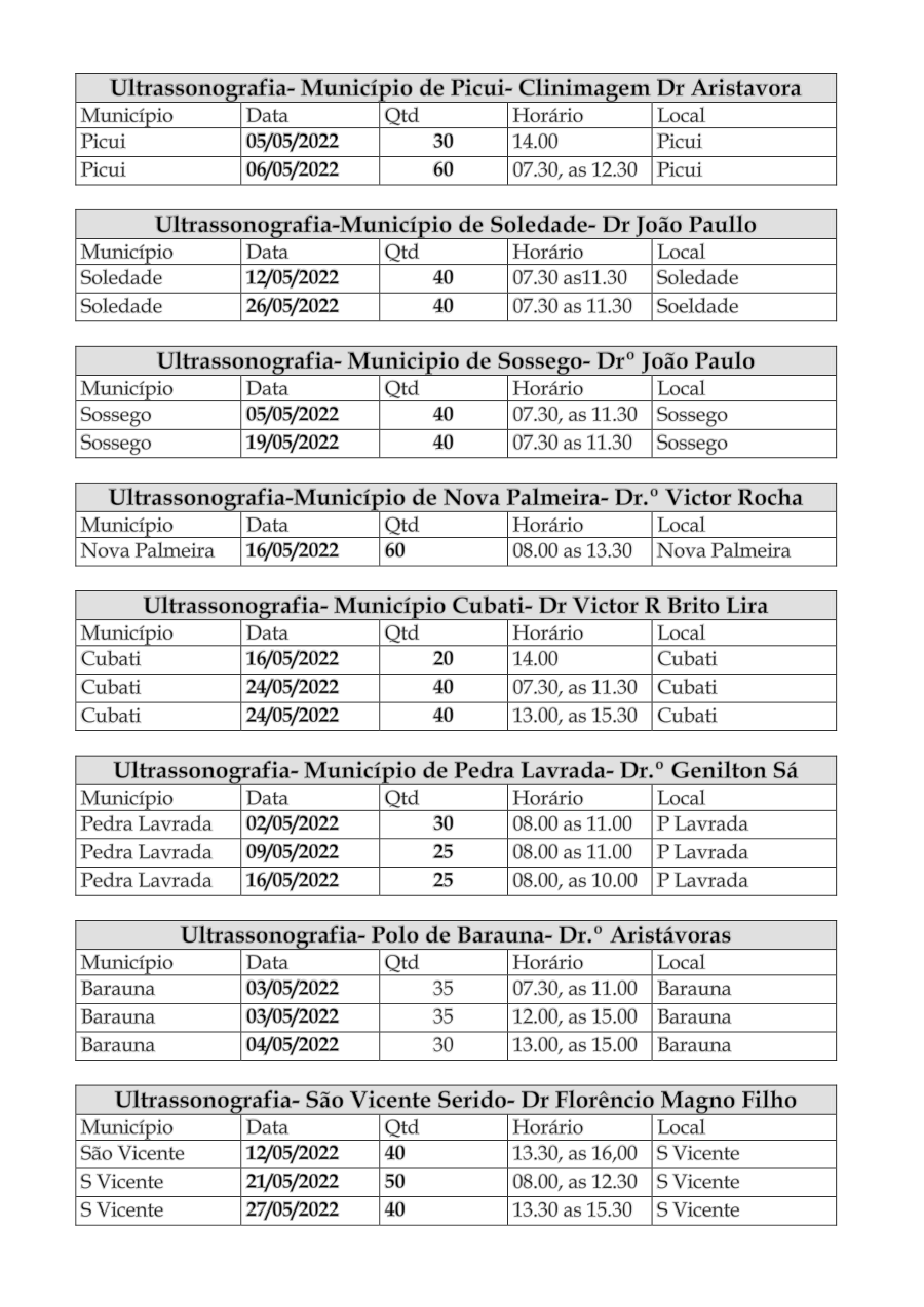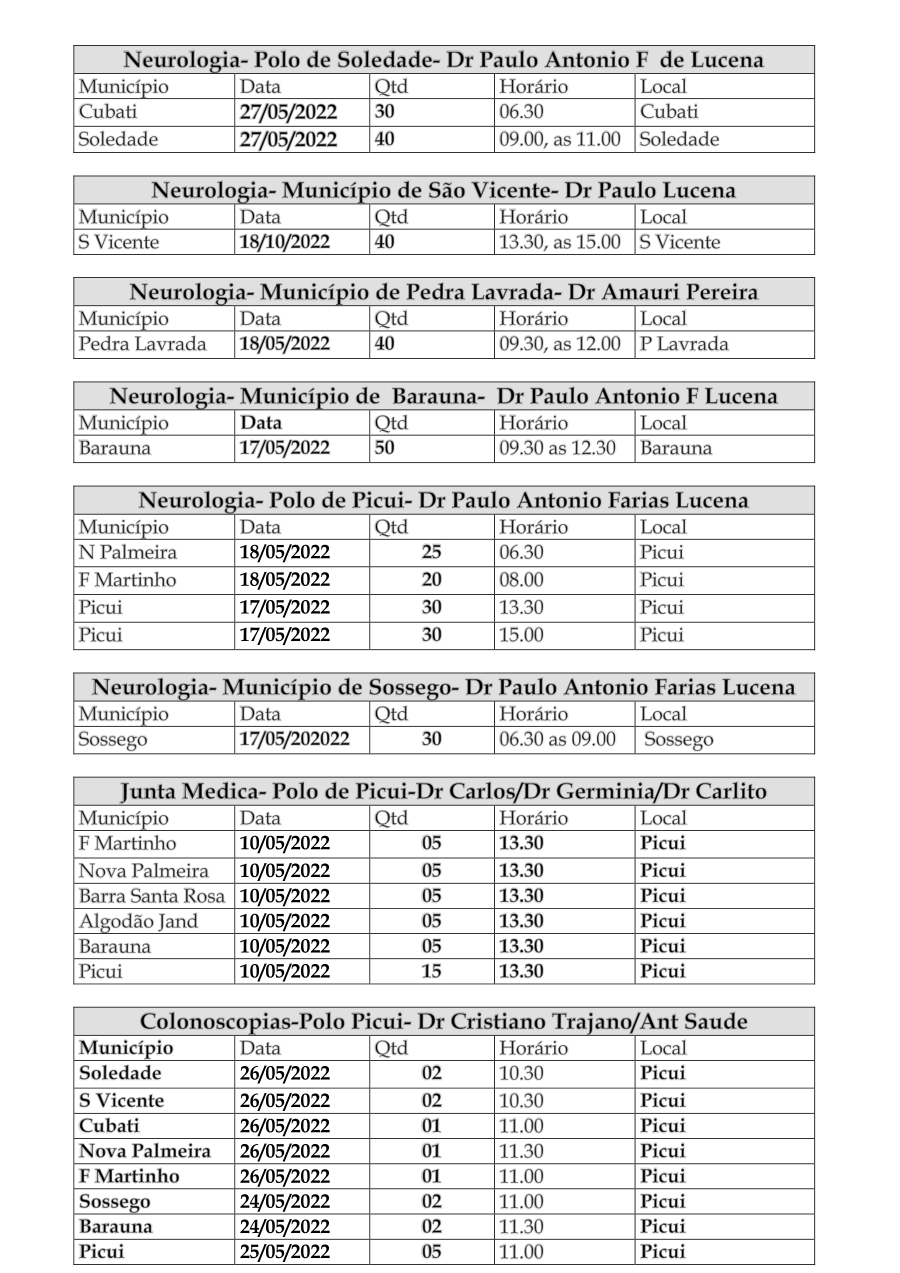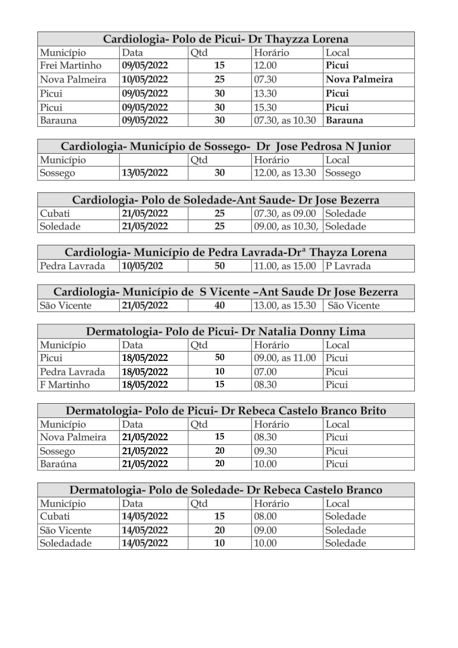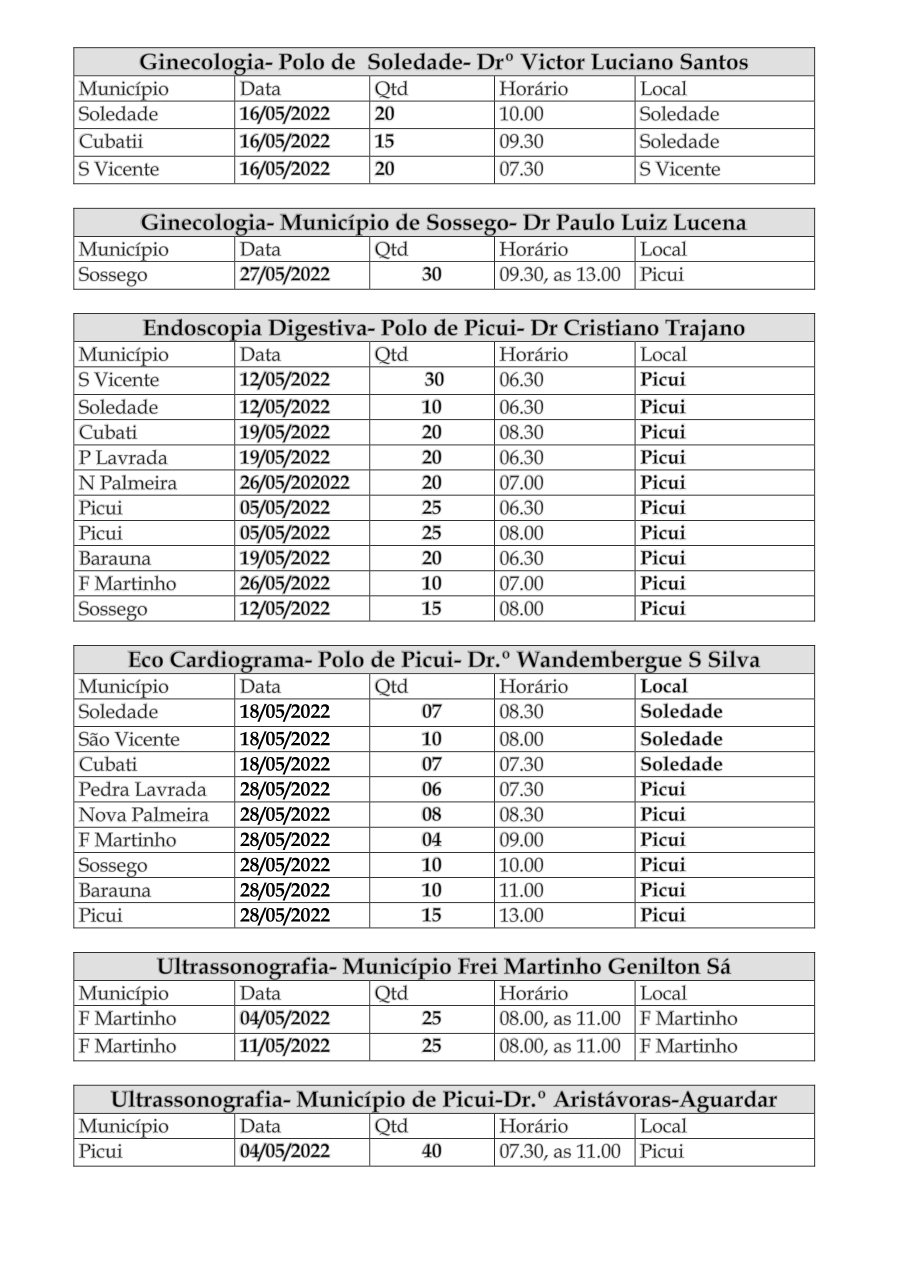 CALENDÁRIO DE ATENDIMENTO - POLO DE PICUI - SOLEDADE - MÊS MAIO/2022