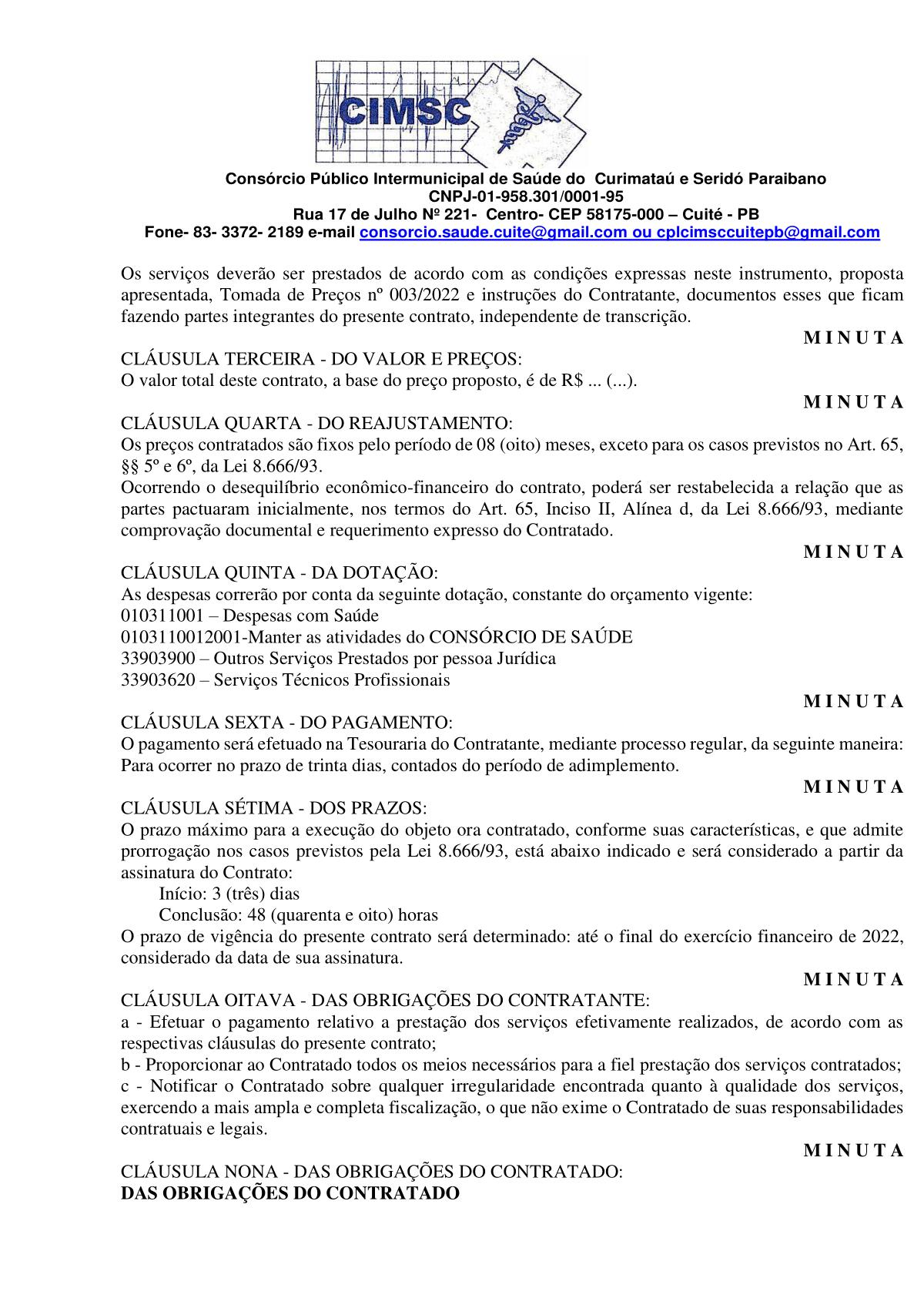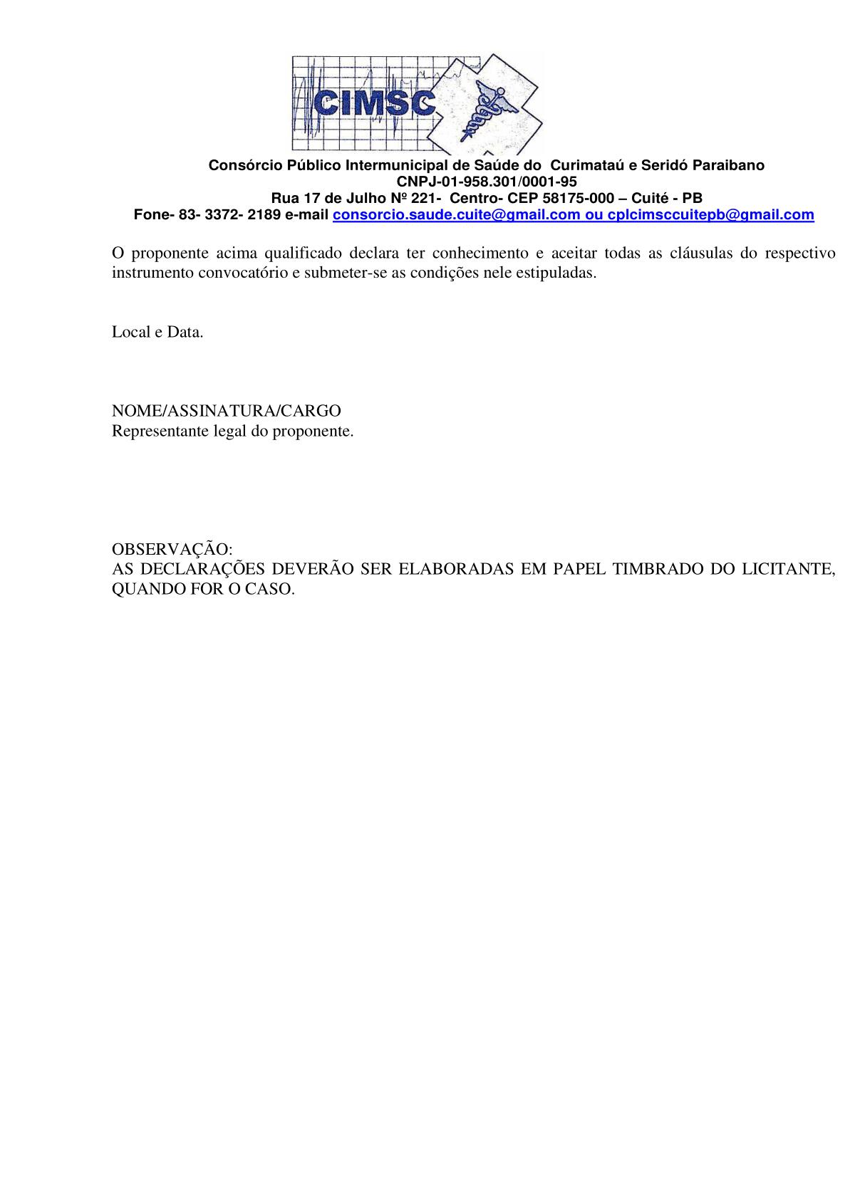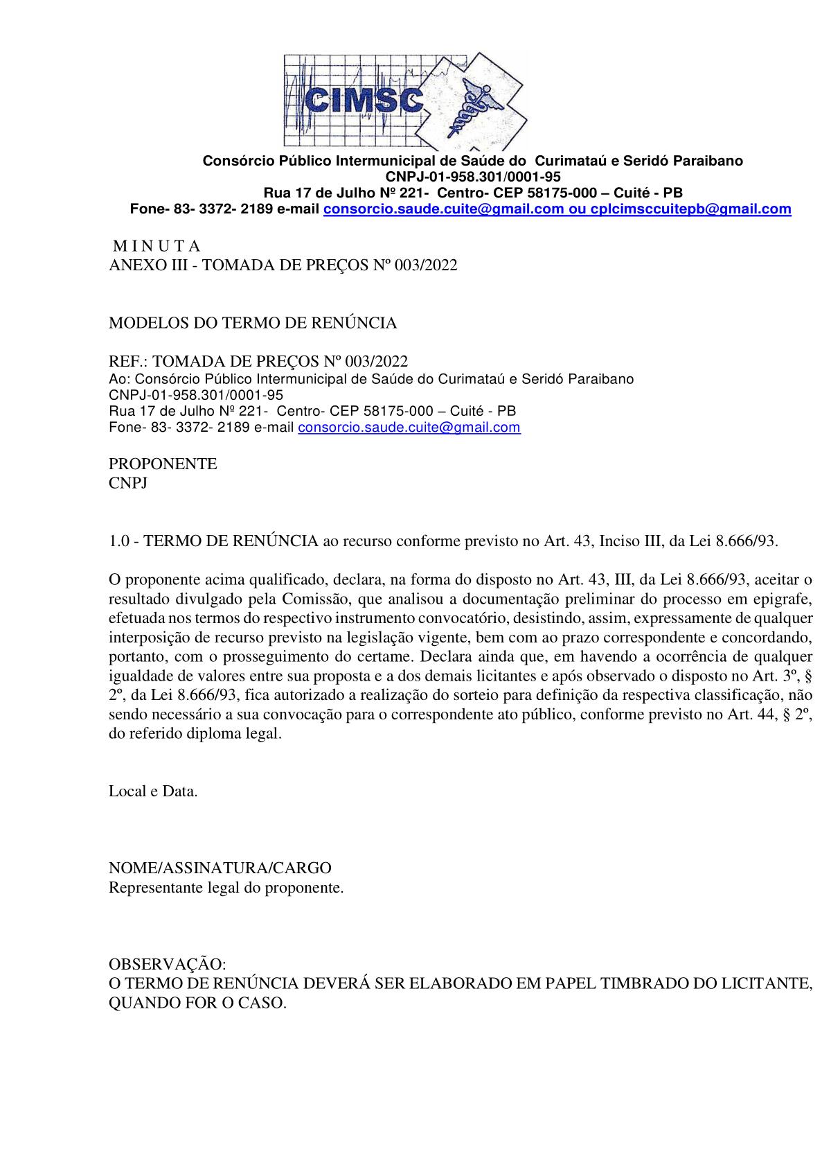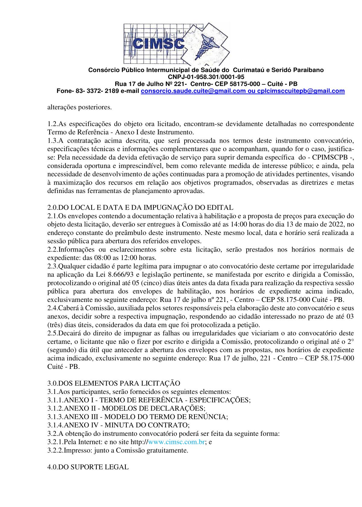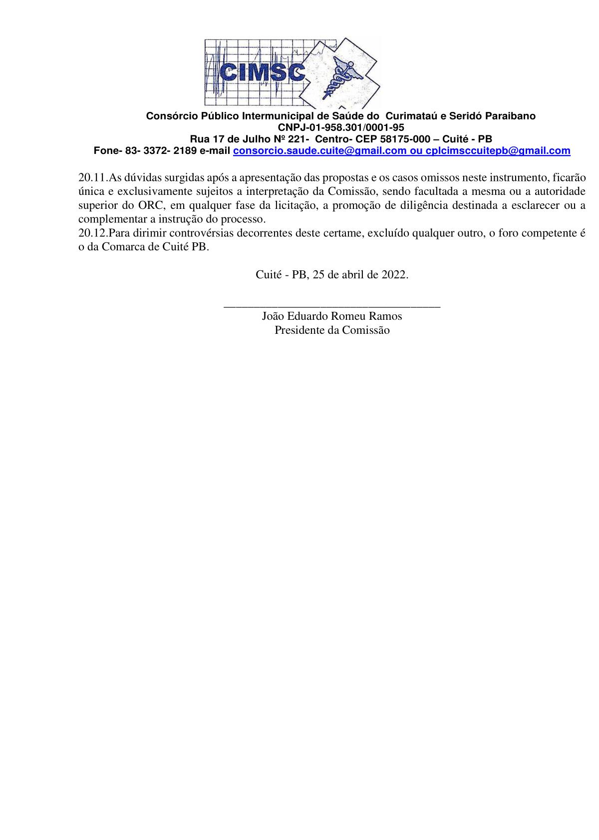 Conforme MP n° 2.200-2 de 24/08/2001, que institui a infraestrutura de chaves Públicas. Matéria Publicada no Diário Oficial do Consórcio Intermunicipal de Saúde do Curimataú e Seridó Paraibano/PB no dia - Edição 00476.