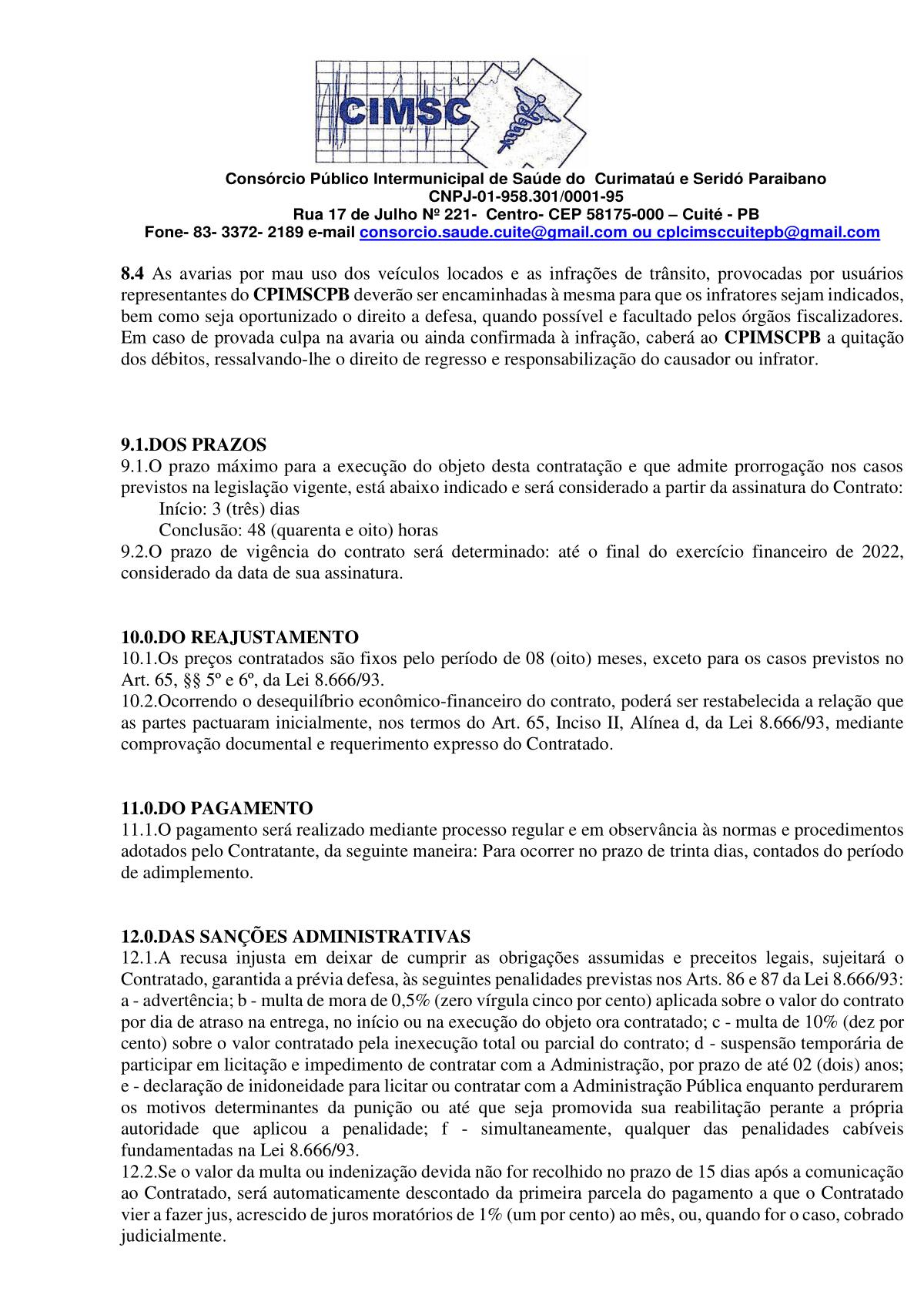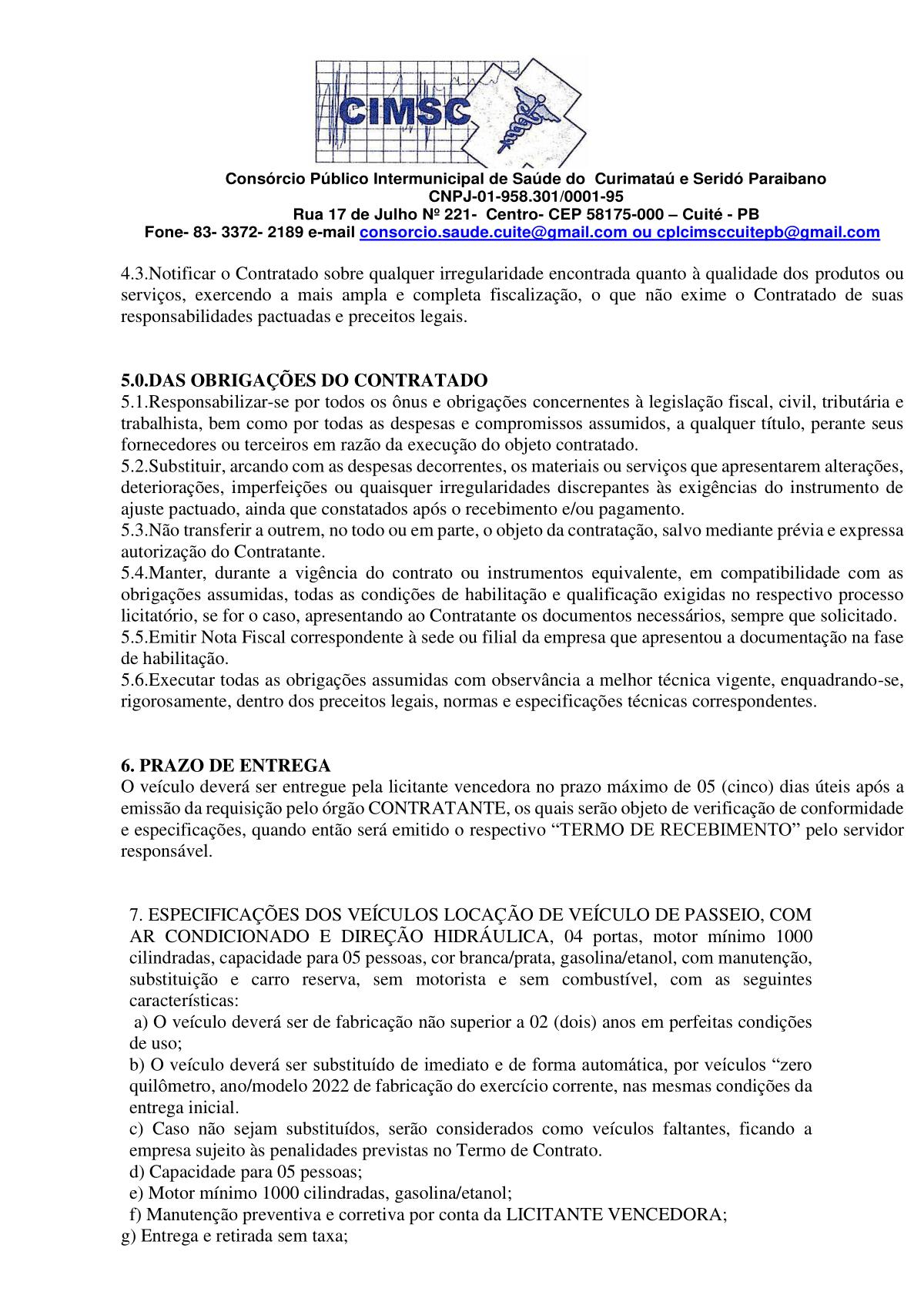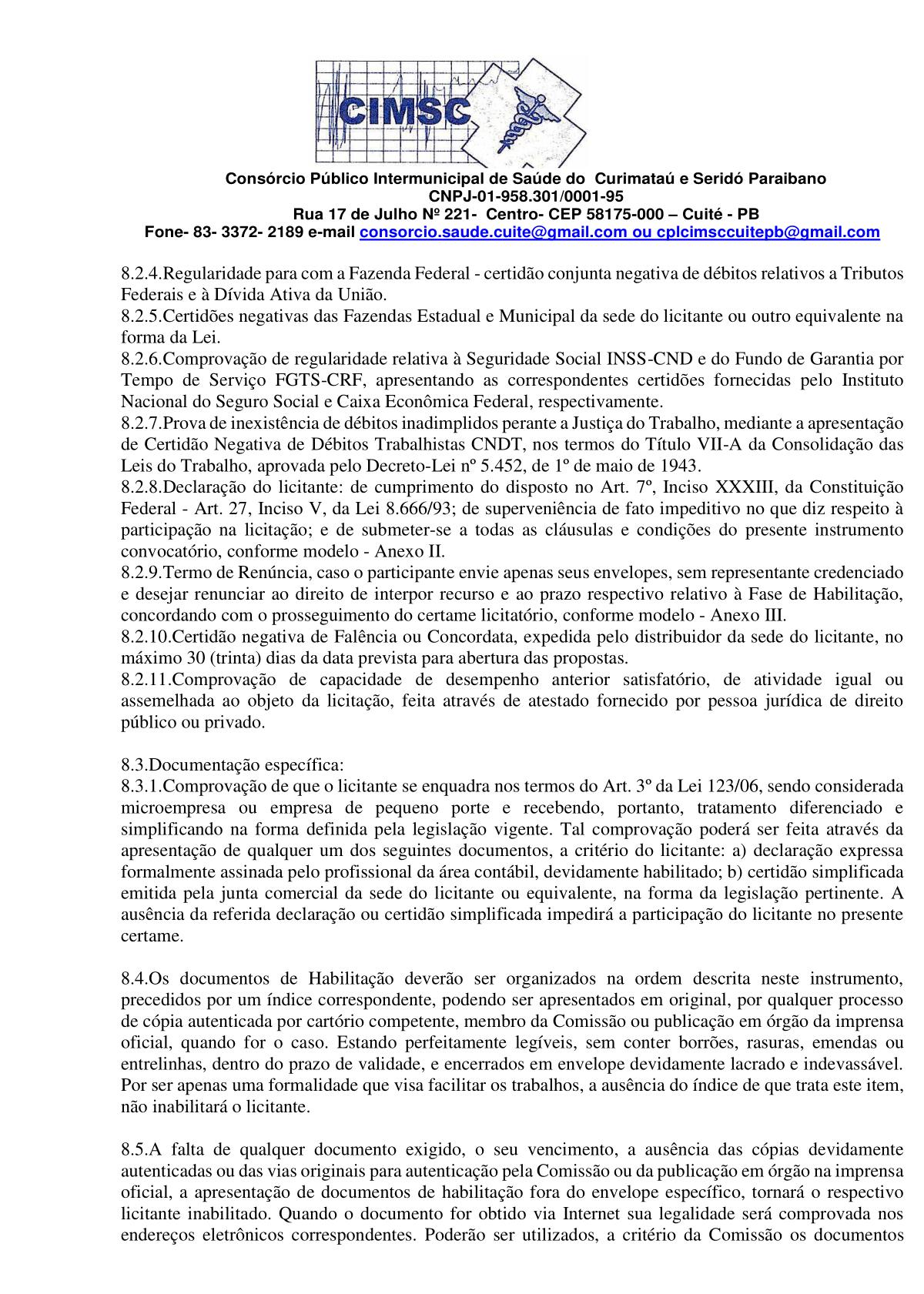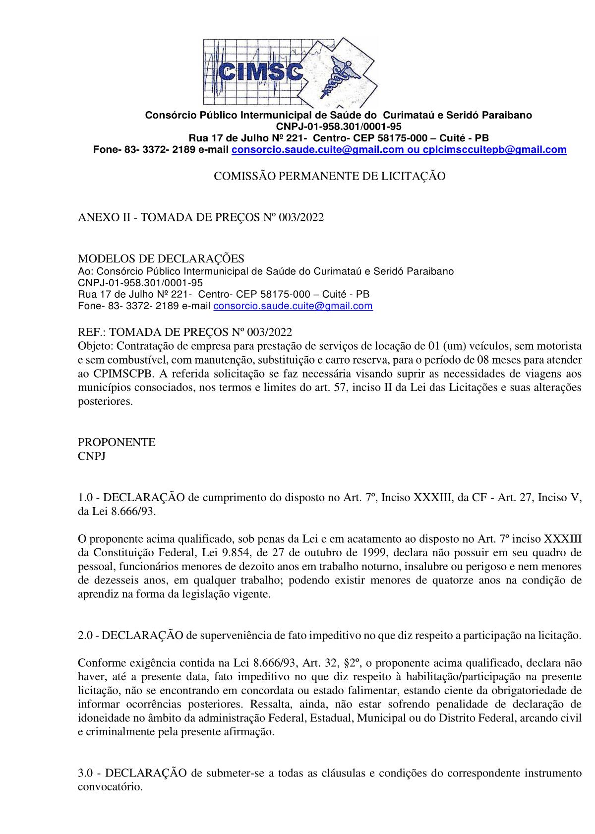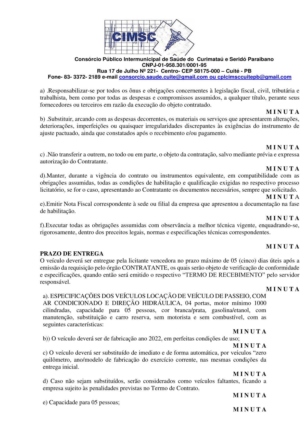 Conforme MP n° 2.200-2 de 24/08/2001, que institui a infraestrutura de chaves Públicas. Matéria Publicada no Diário Oficial do Consórcio Intermunicipal de Saúde do Curimataú e Seridó Paraibano/PB no dia - Edição 00476.