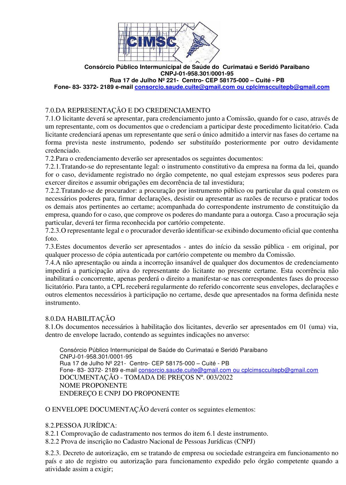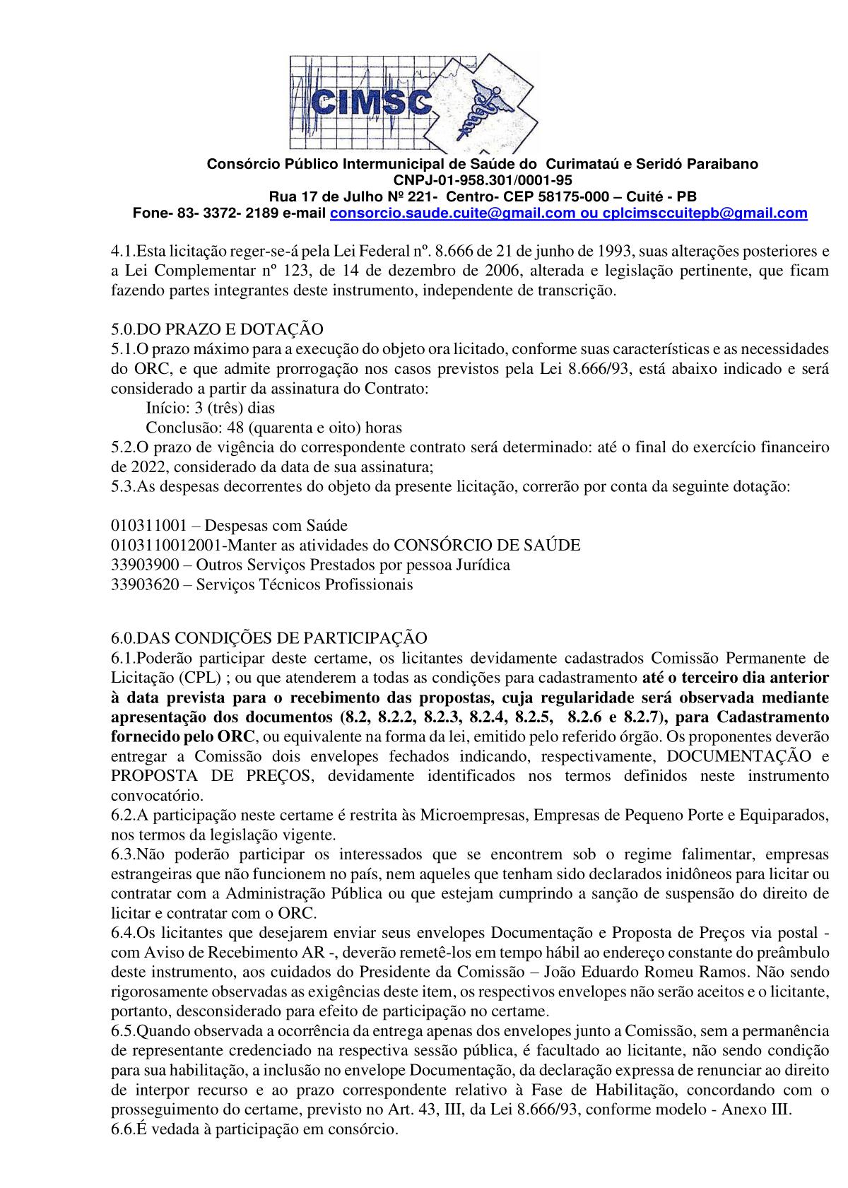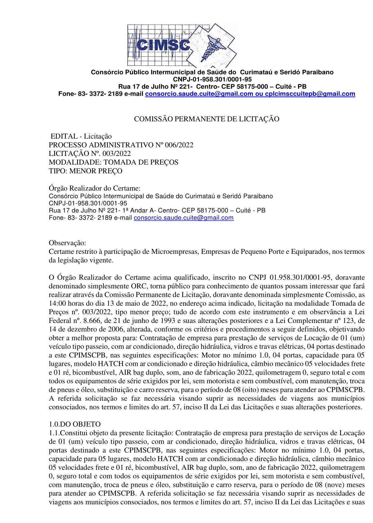 EDITAL DE LICITAÇÃO - PROCESSO ADMINISTRATIVO N° 0006/2022