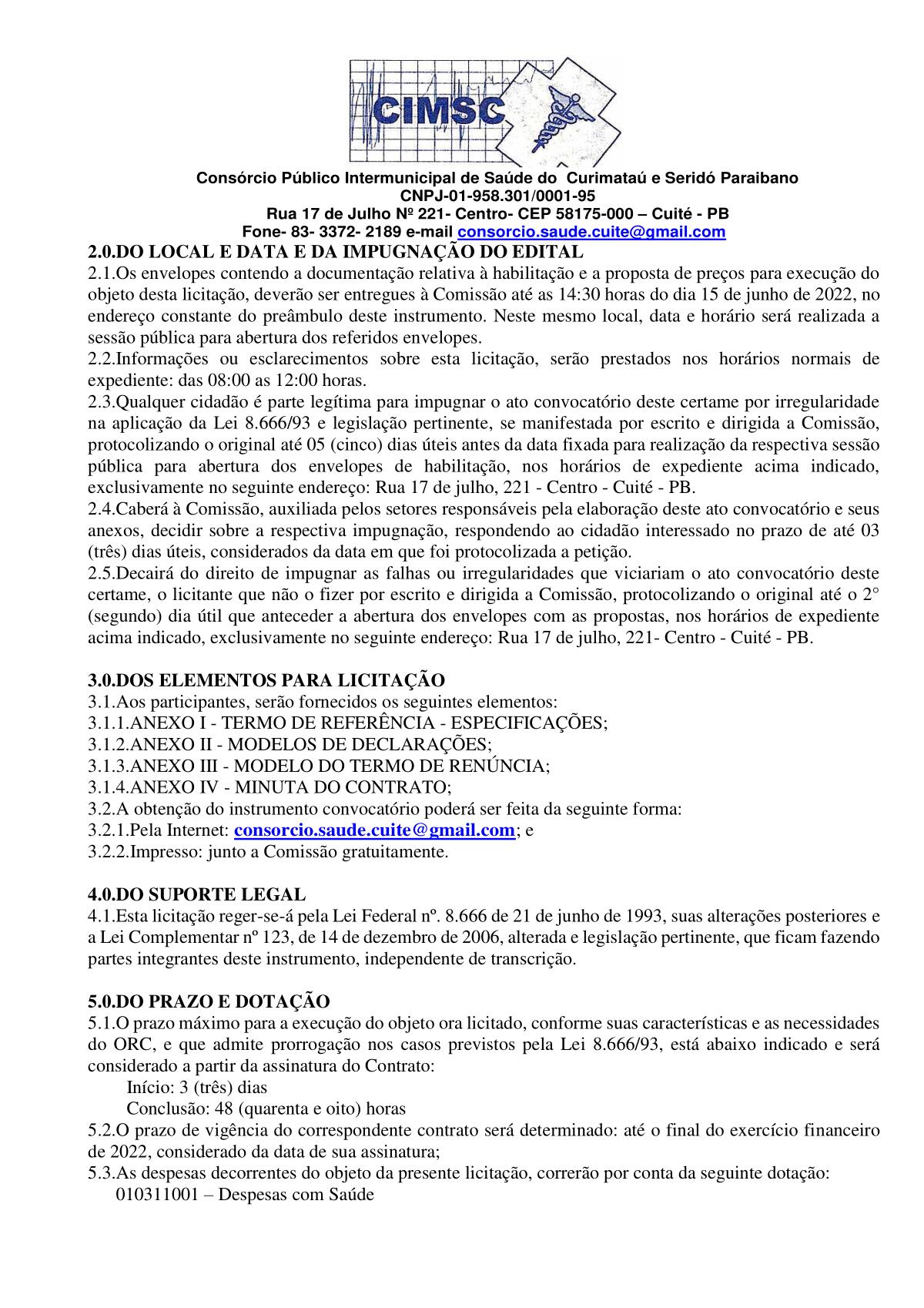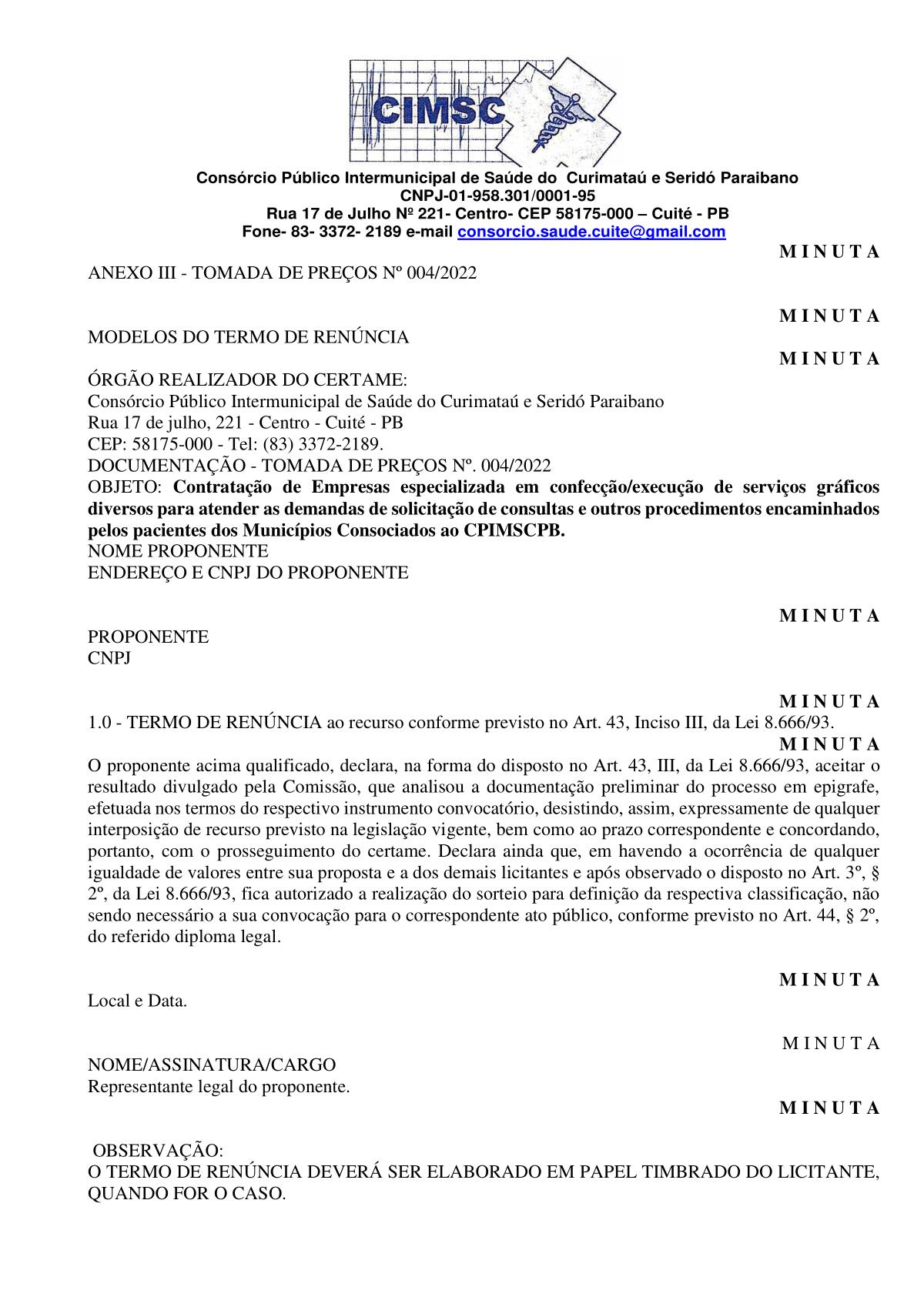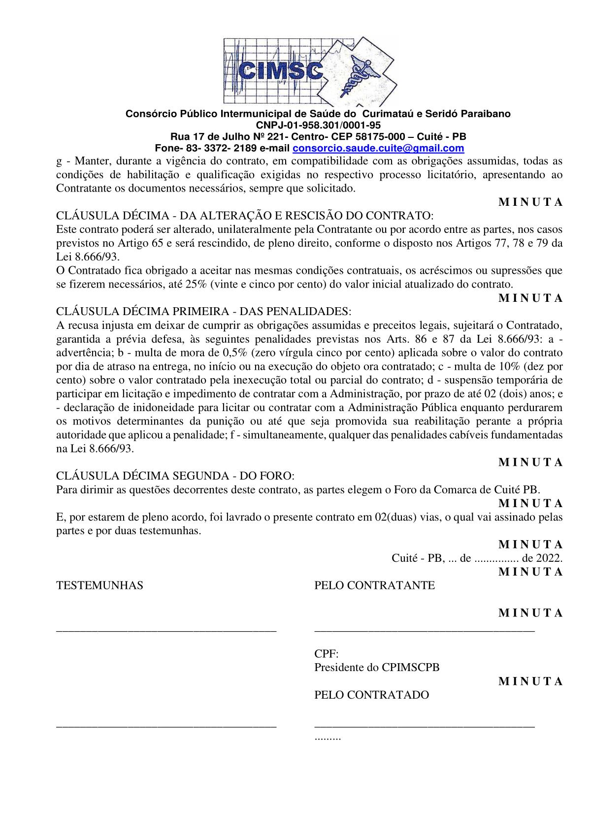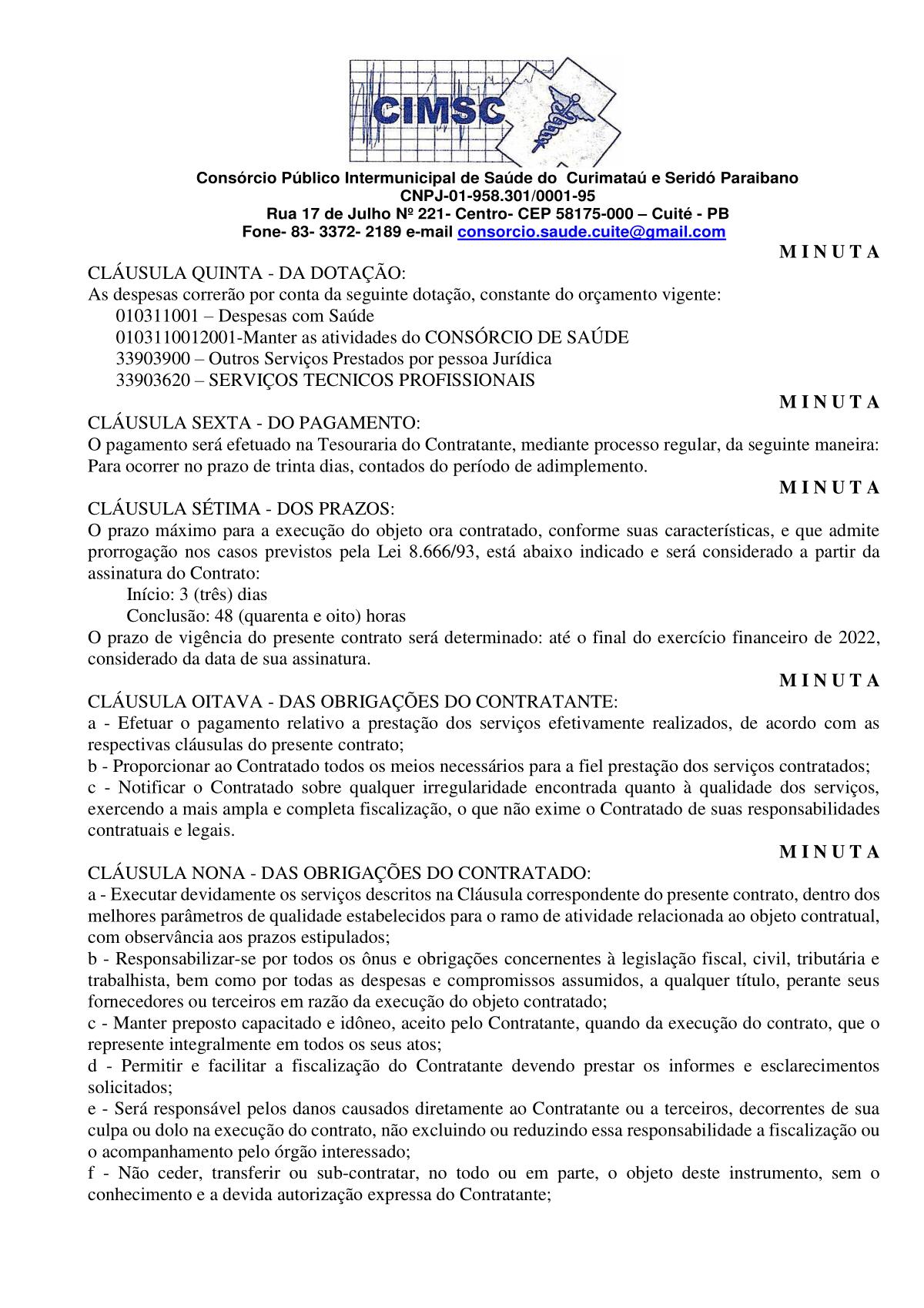 Conforme MP n° 2.200-2 de 24/08/2001, que institui a infraestrutura de chaves Públicas. Matéria Publicada no Diário Oficial do Consórcio Intermunicipal de Saúde do Curimataú e Seridó Paraibano/PB no dia - Edição 00498.