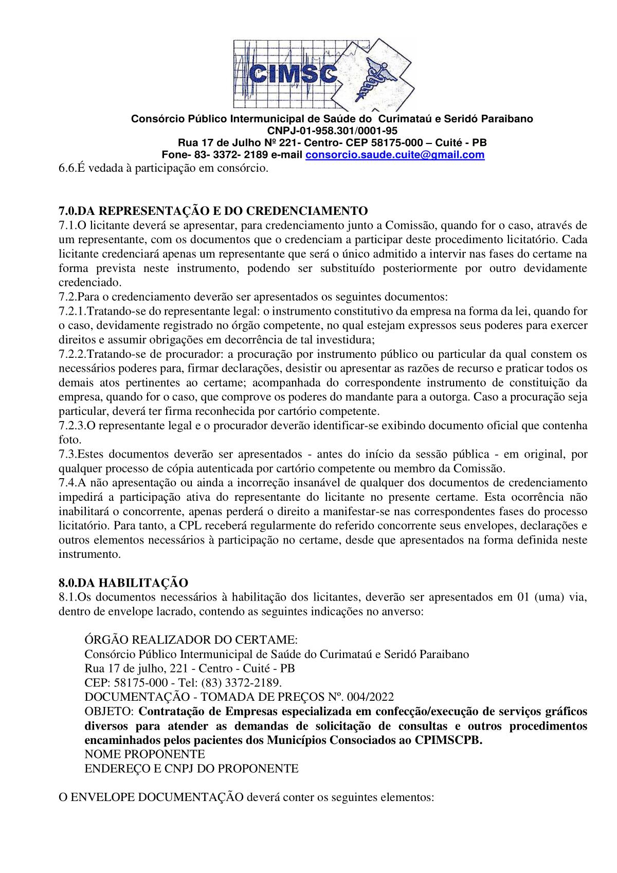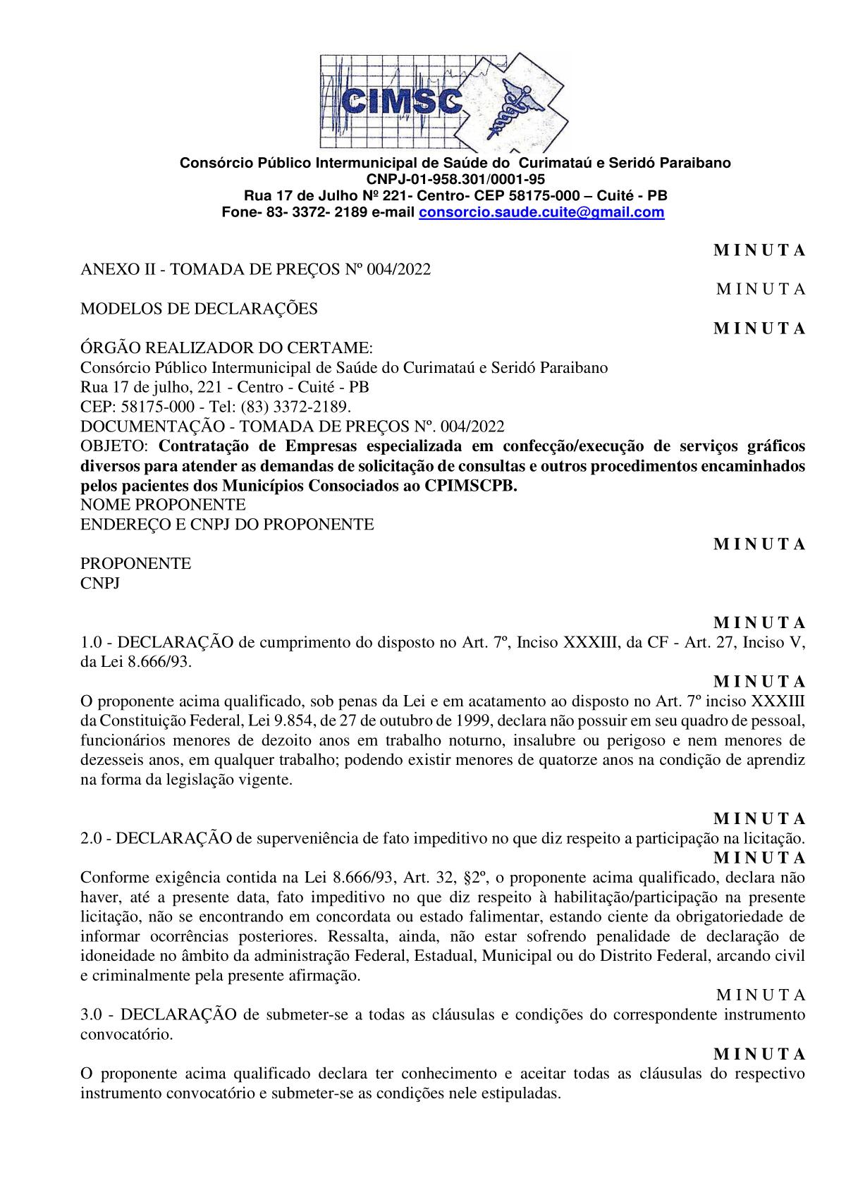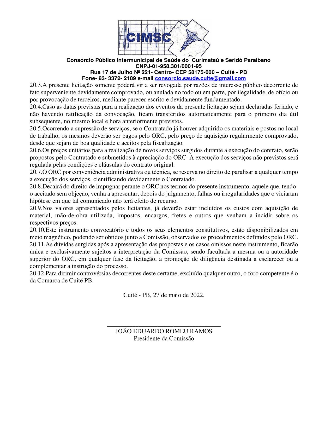 Conforme MP n° 2.200-2 de 24/08/2001, que institui a infraestrutura de chaves Públicas. Matéria Publicada no Diário Oficial do Consórcio Intermunicipal de Saúde do Curimataú e Seridó Paraibano/PB no dia - Edição 00498.