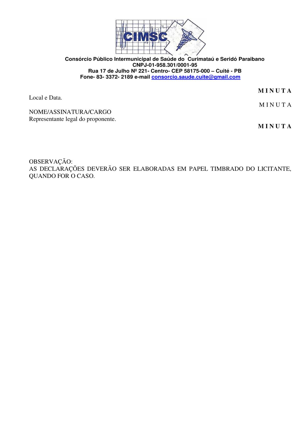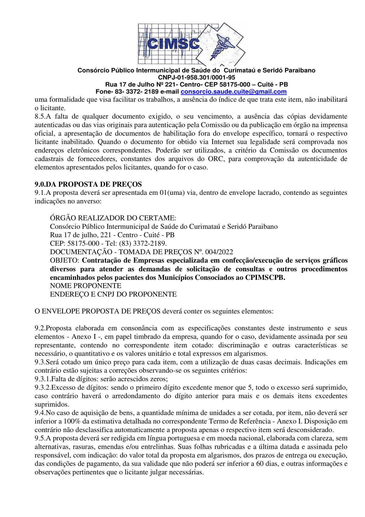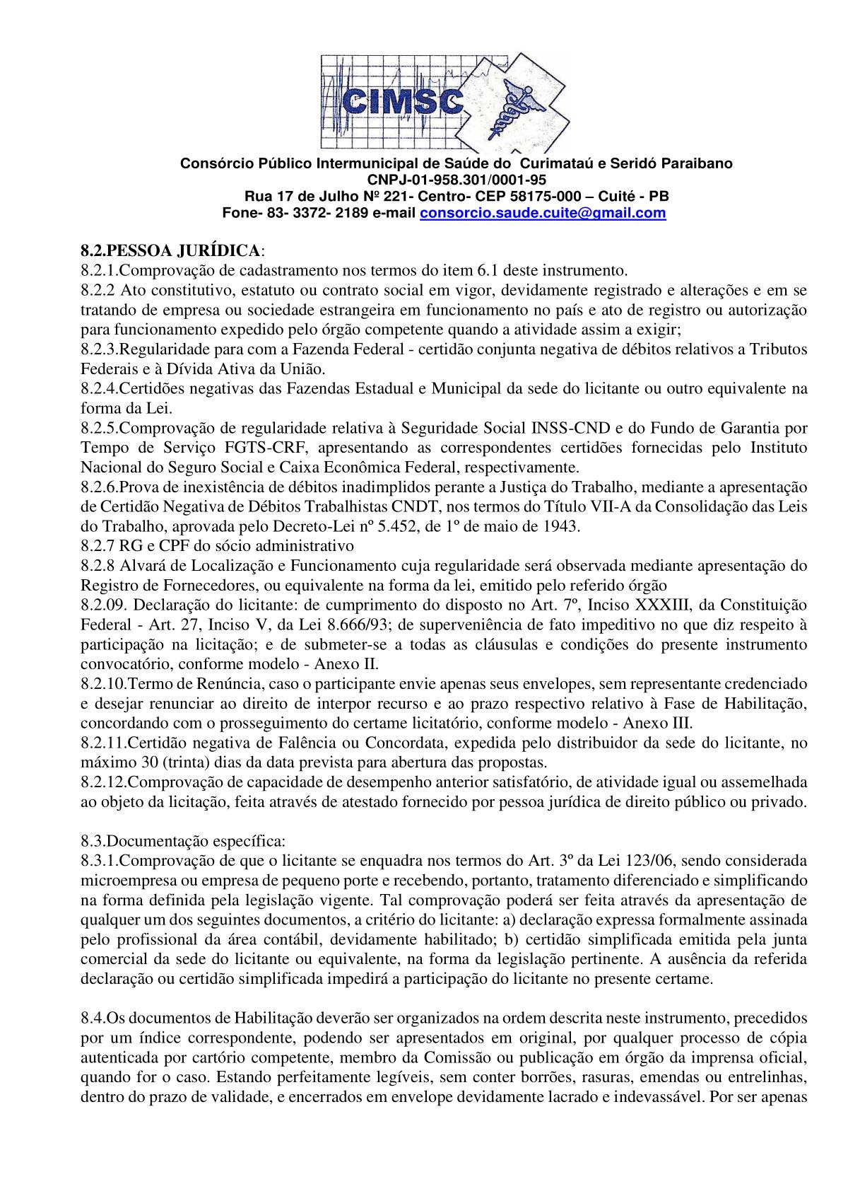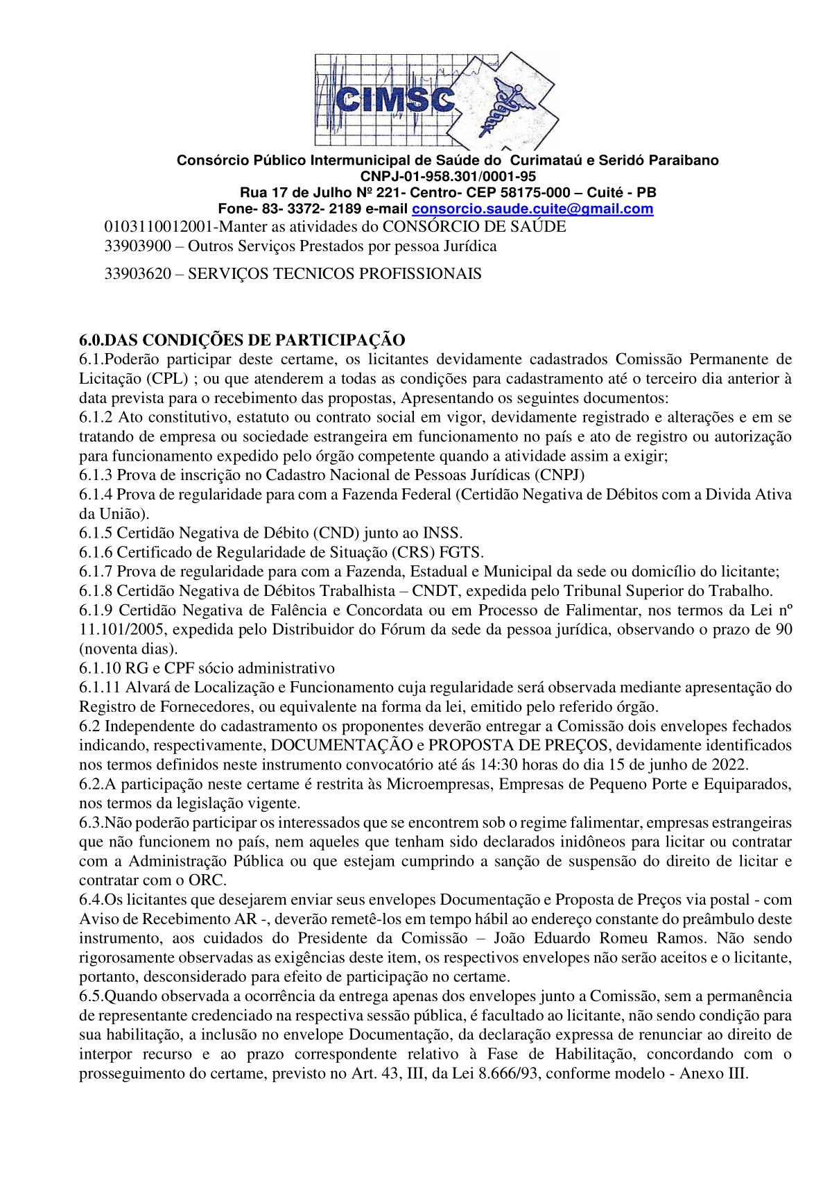 Conforme MP n° 2.200-2 de 24/08/2001, que institui a infraestrutura de chaves Públicas. Matéria Publicada no Diário Oficial do Consórcio Intermunicipal de Saúde do Curimataú e Seridó Paraibano/PB no dia - Edição 00498.