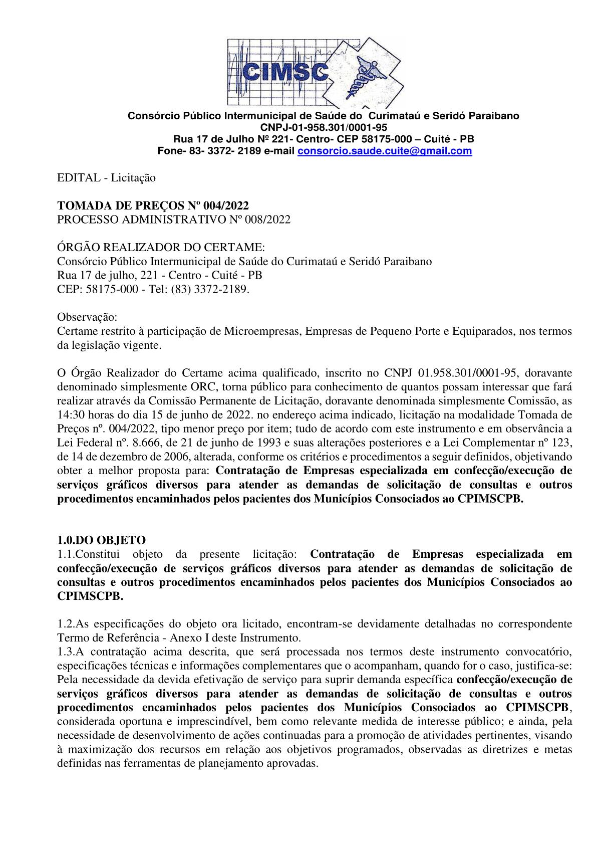 EDITAL DE LICITAÇÃO - TOMADA DE PREÇOS N° 0004/2022