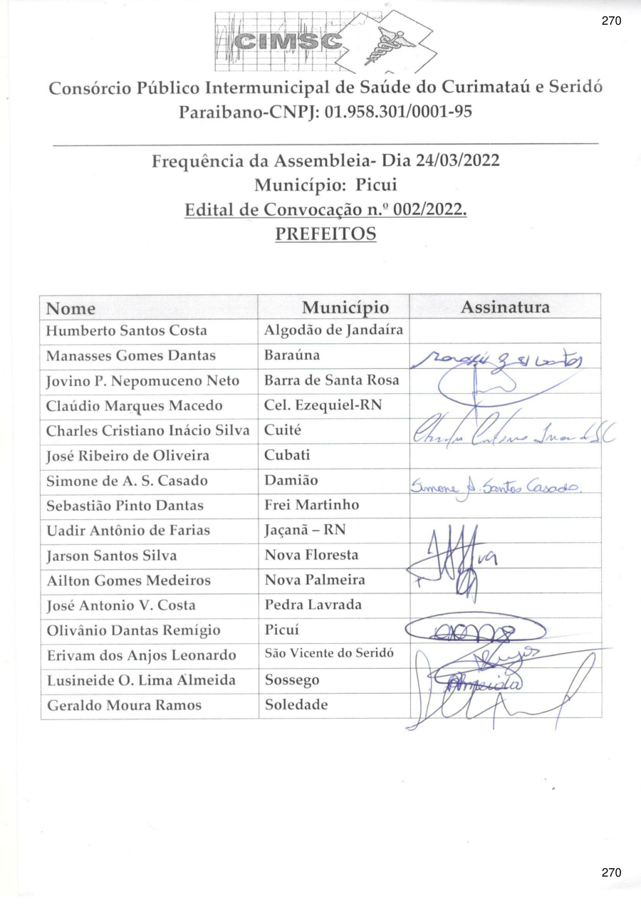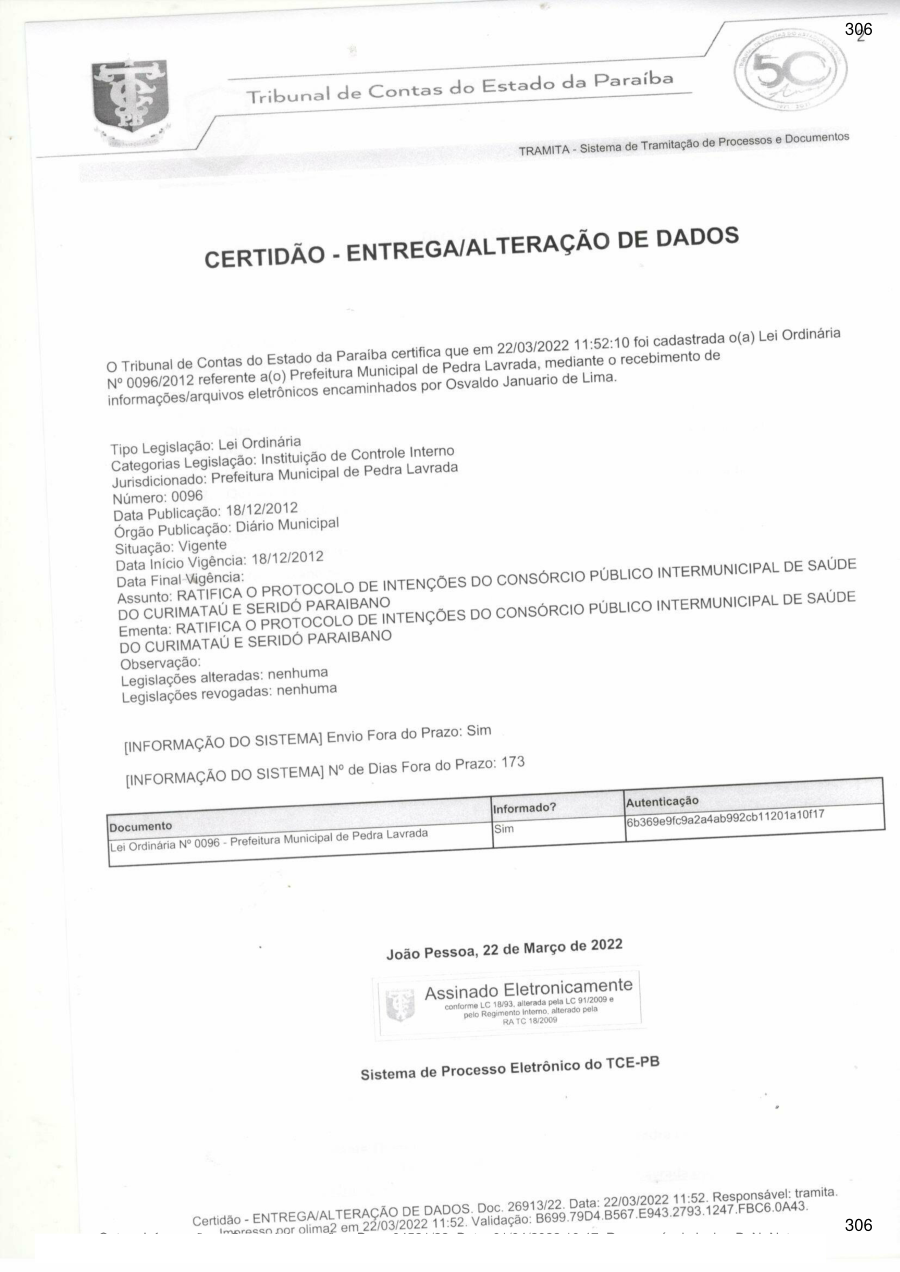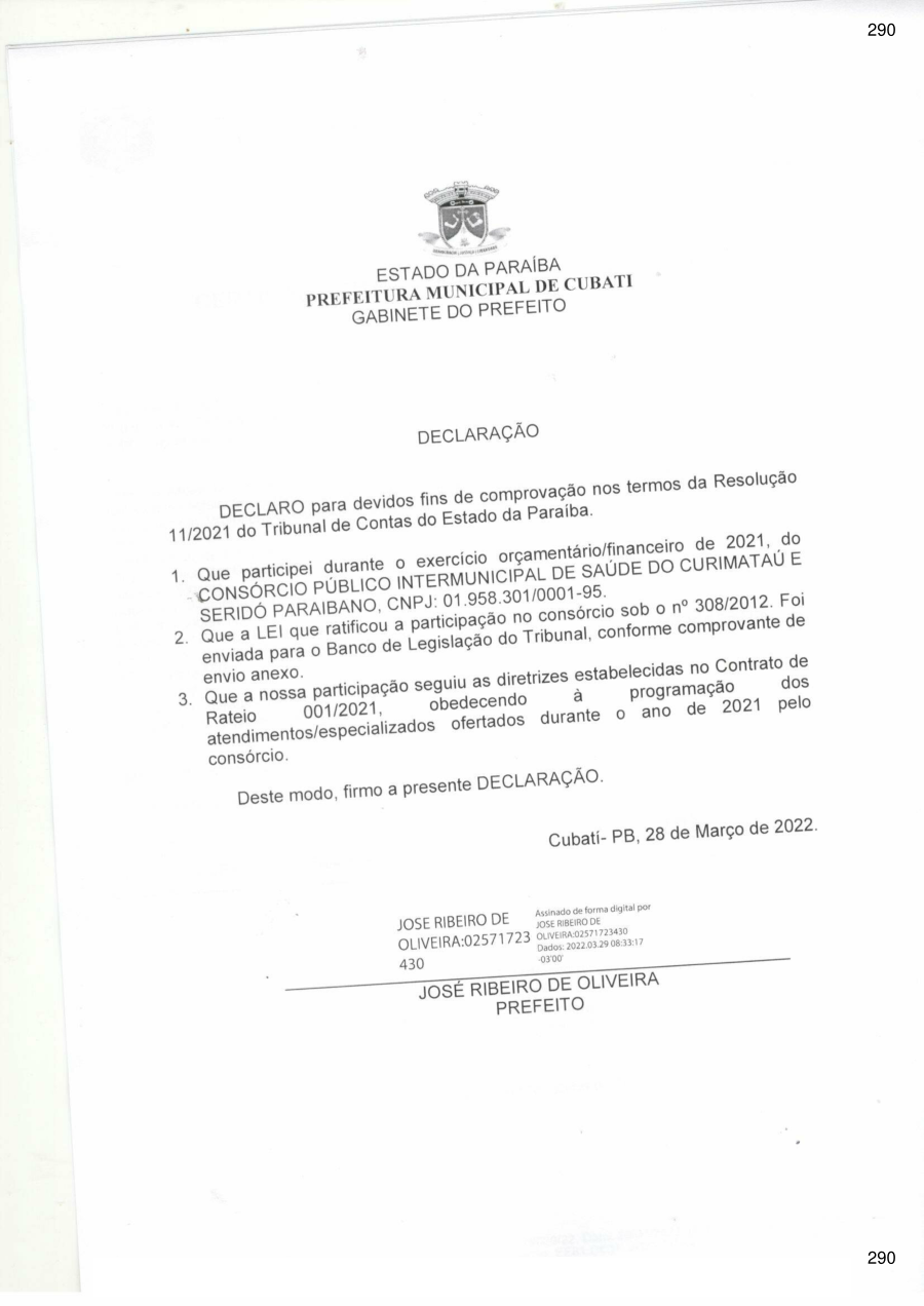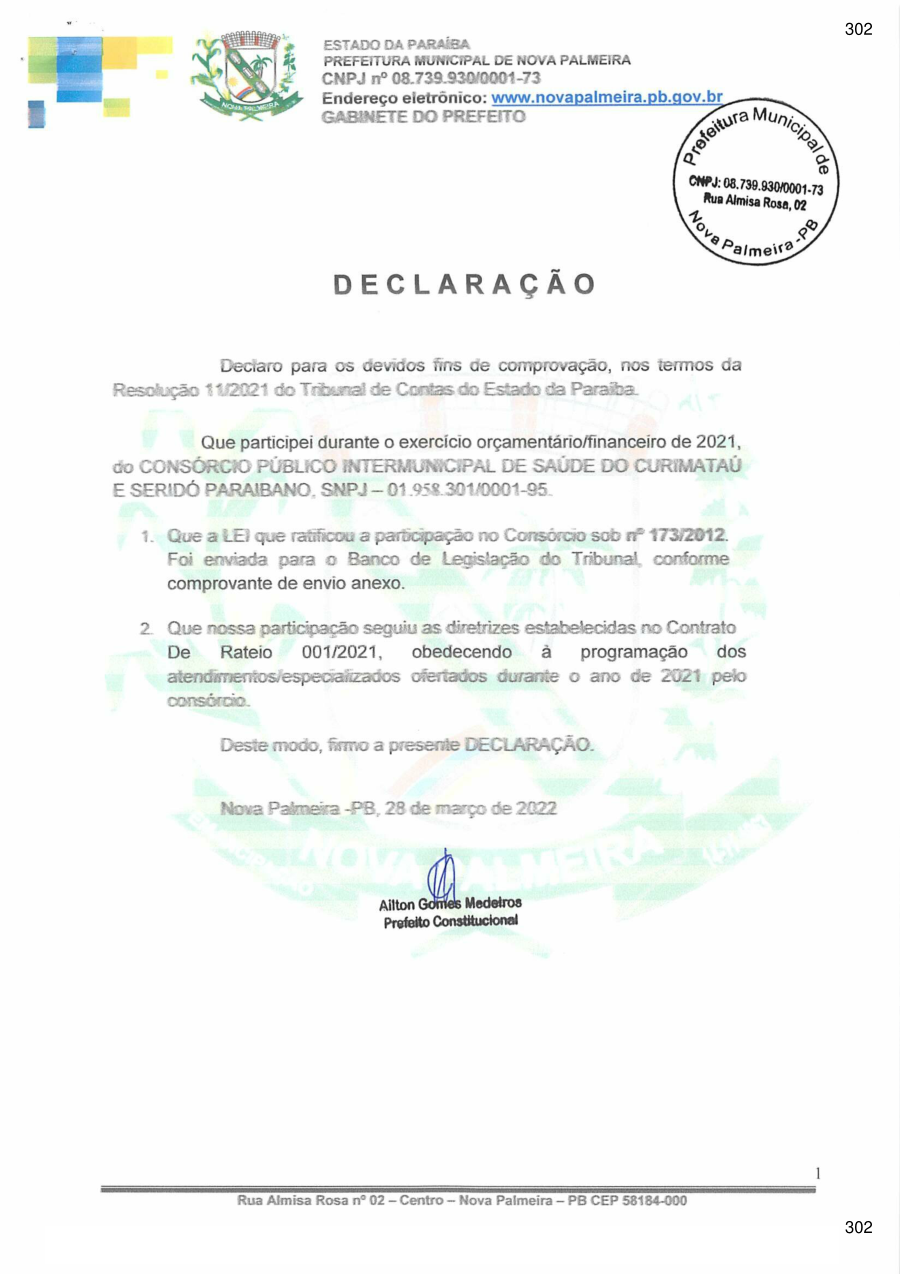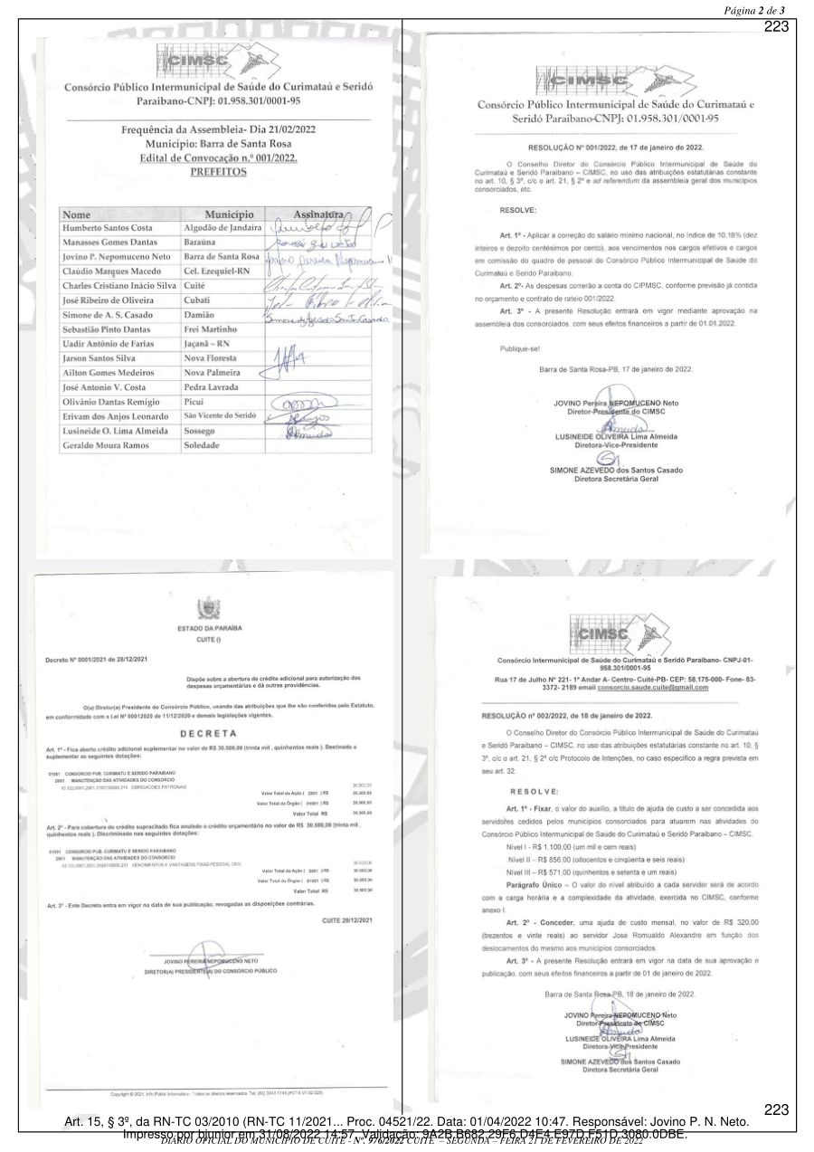 Conforme MP n° 2.200-2 de 24/08/2001, que institui a infraestrutura de chaves Públicas. Matéria Publicada no Diário Oficial do Consórcio Intermunicipal de Saúde do Curimataú e Seridó Paraibano/PB no dia - Edição 00457.