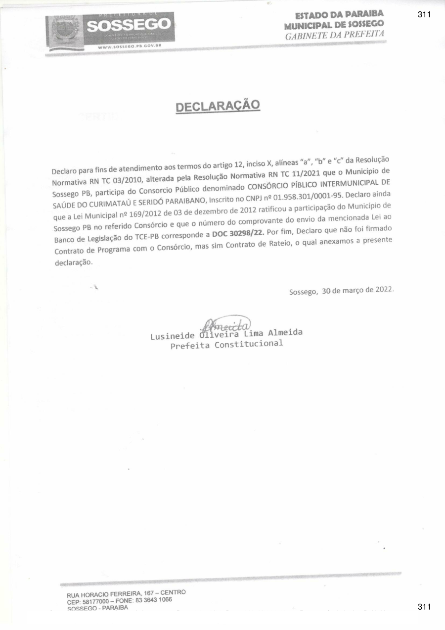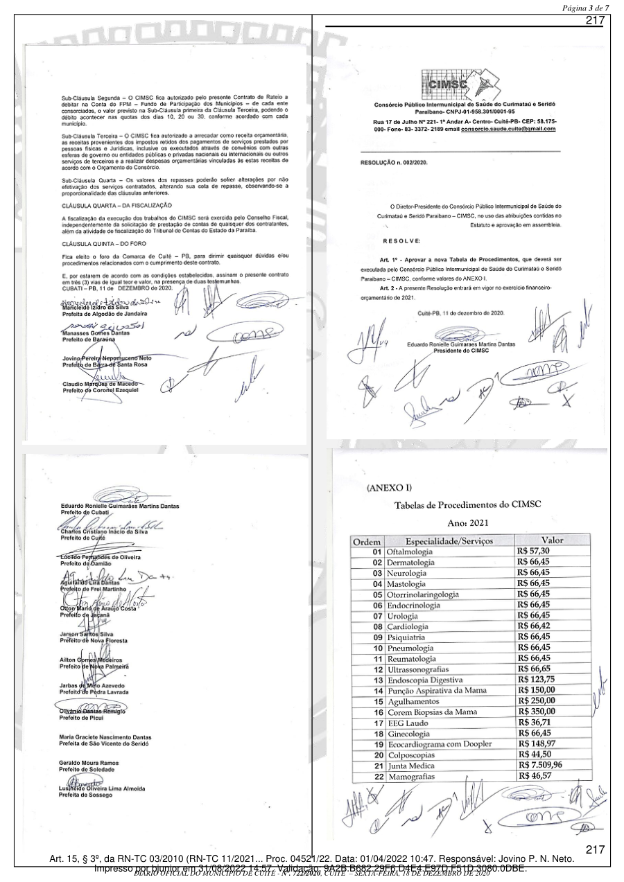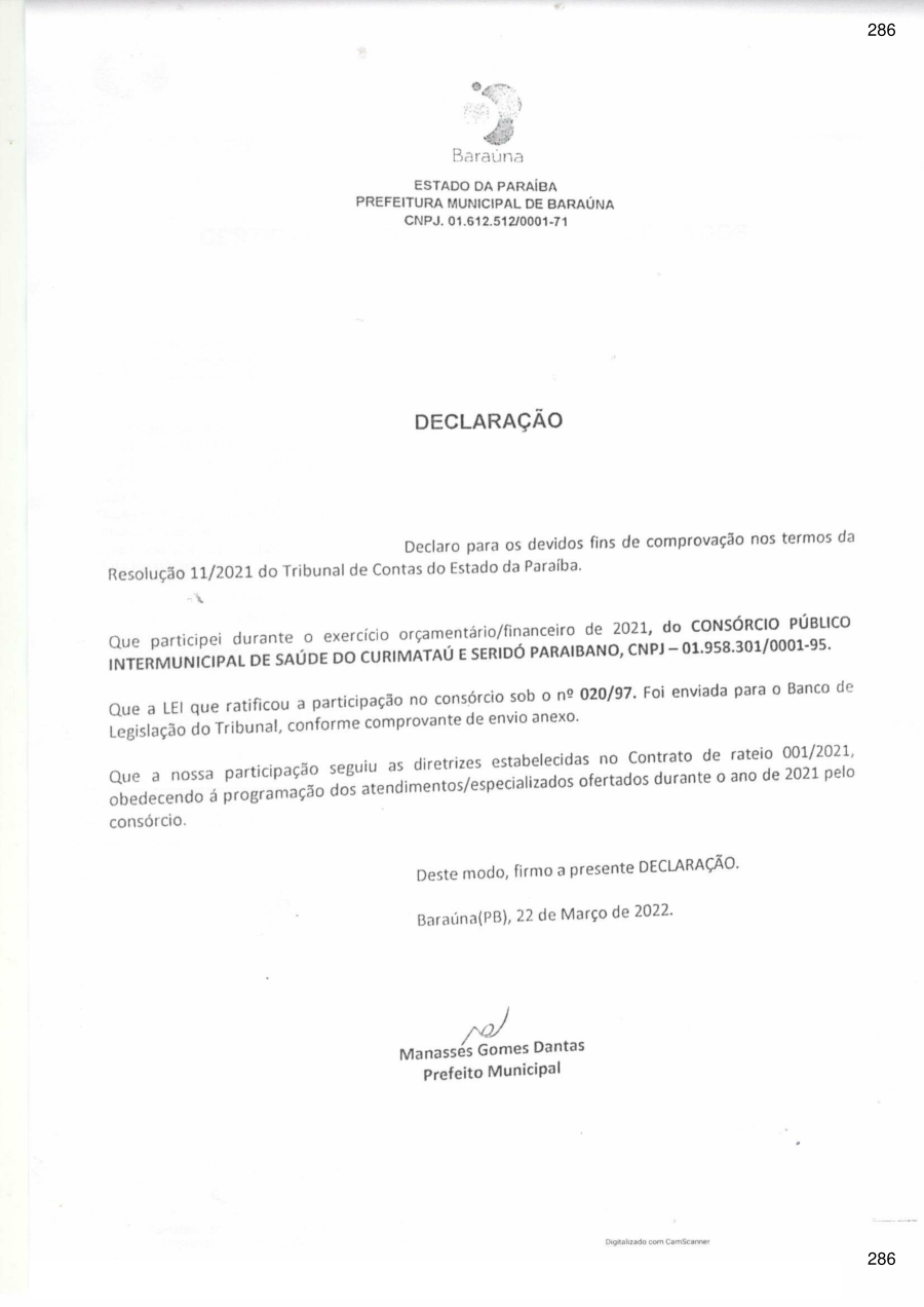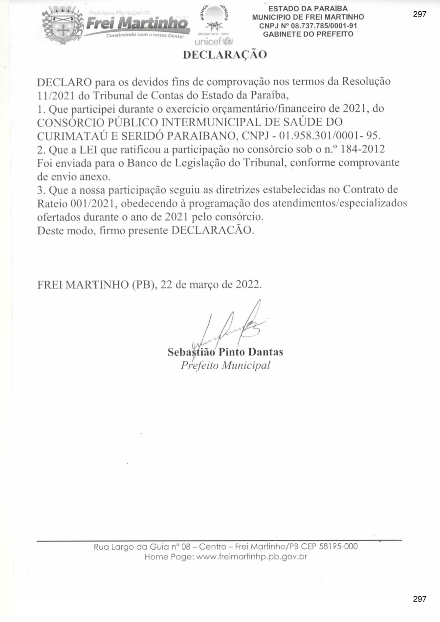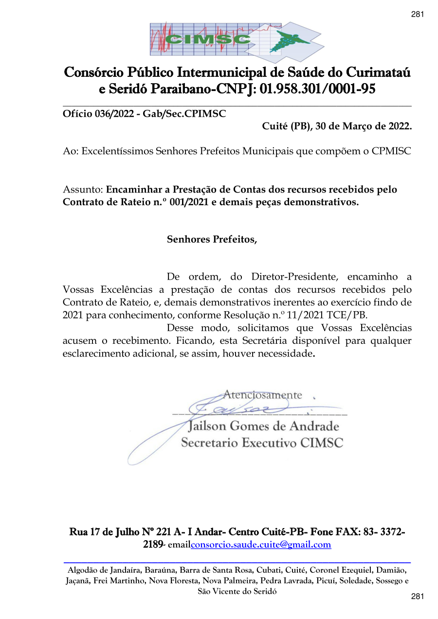 Conforme MP n° 2.200-2 de 24/08/2001, que institui a infraestrutura de chaves Públicas. Matéria Publicada no Diário Oficial do Consórcio Intermunicipal de Saúde do Curimataú e Seridó Paraibano/PB no dia - Edição 00457.