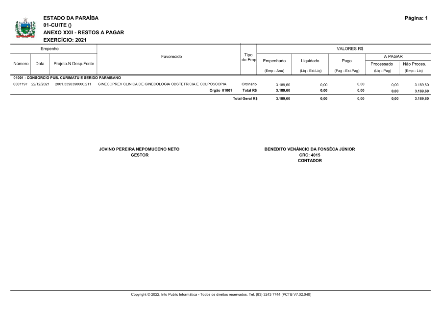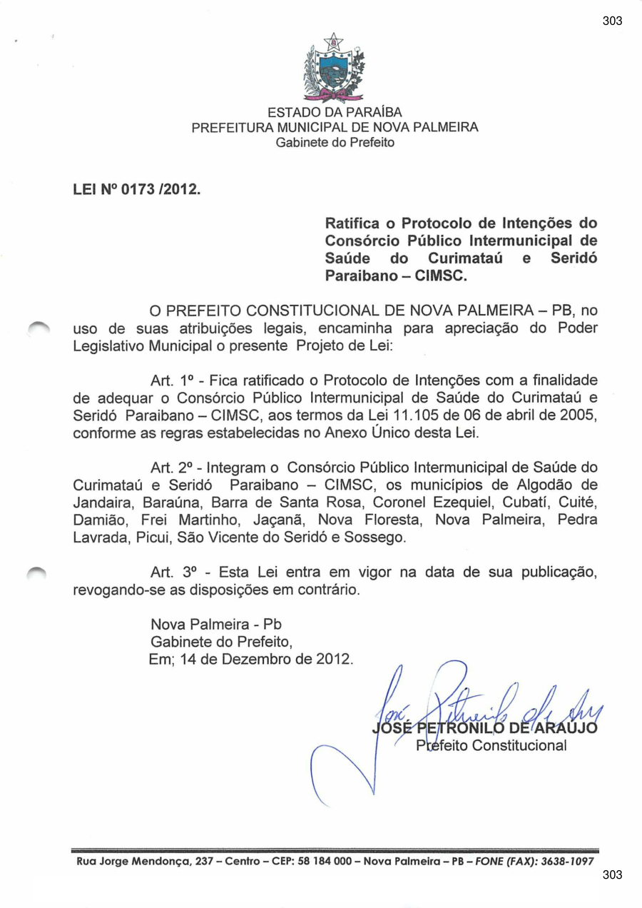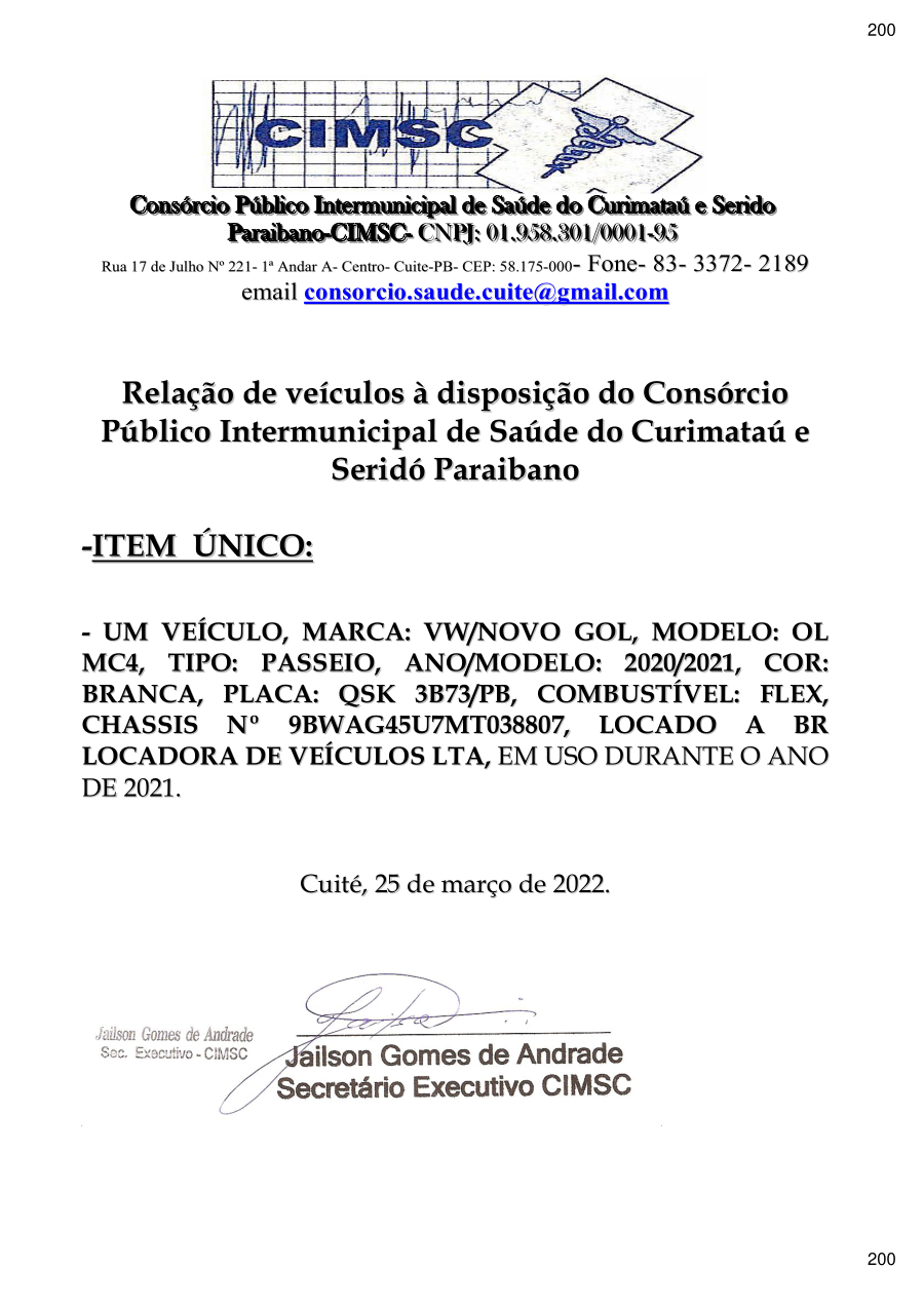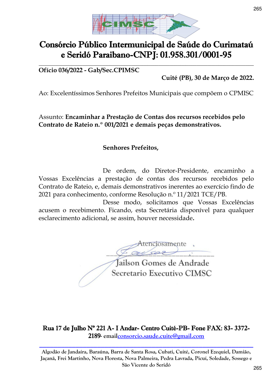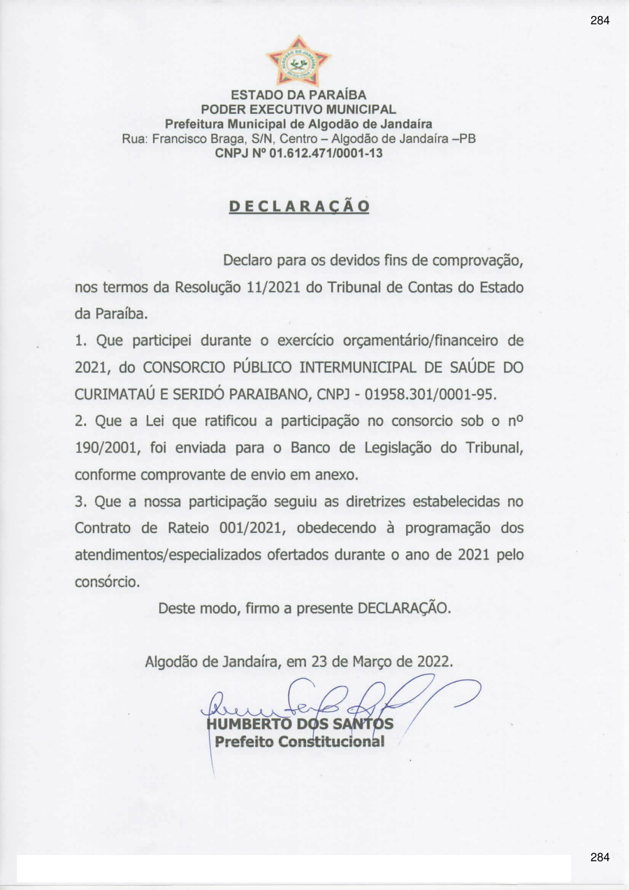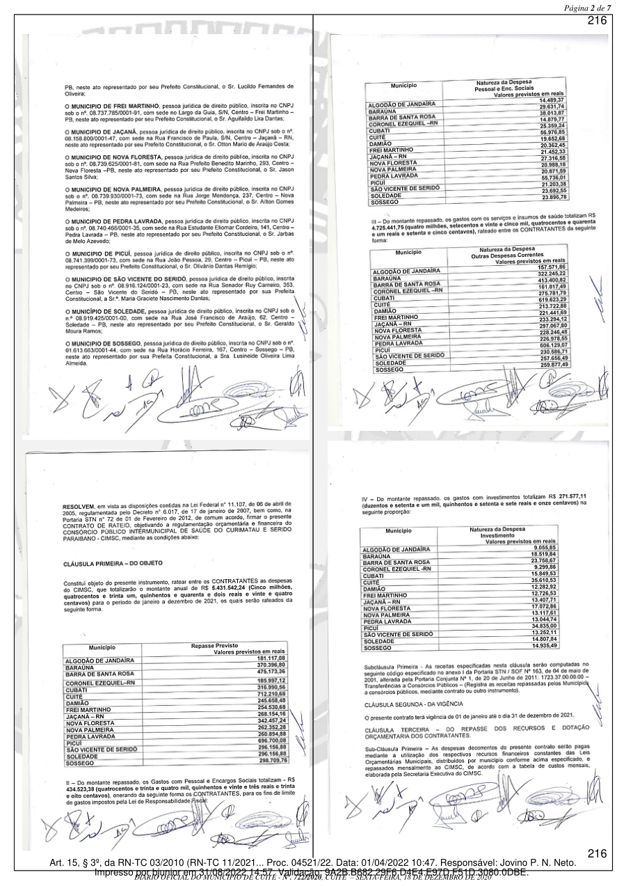 Conforme MP n° 2.200-2 de 24/08/2001, que institui a infraestrutura de chaves Públicas. Matéria Publicada no Diário Oficial do Consórcio Intermunicipal de Saúde do Curimataú e Seridó Paraibano/PB no dia - Edição 00457.