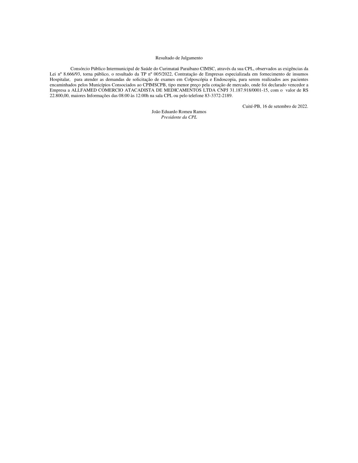 Data Publicação: 19/09/2022 - Data Circulação: 20/09/2022