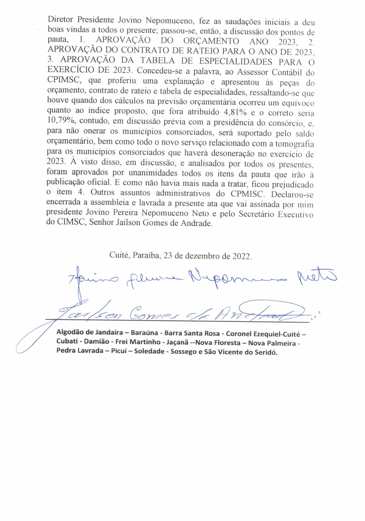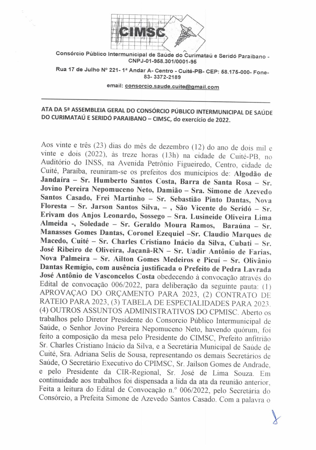 ATA DA 5º ASSEMBLEIA GERAL DO CONSORCIO PUBLICO INTERMUNICIPAL DE SAUDE DO CURIMATAU E SERIDO PARAIBANO