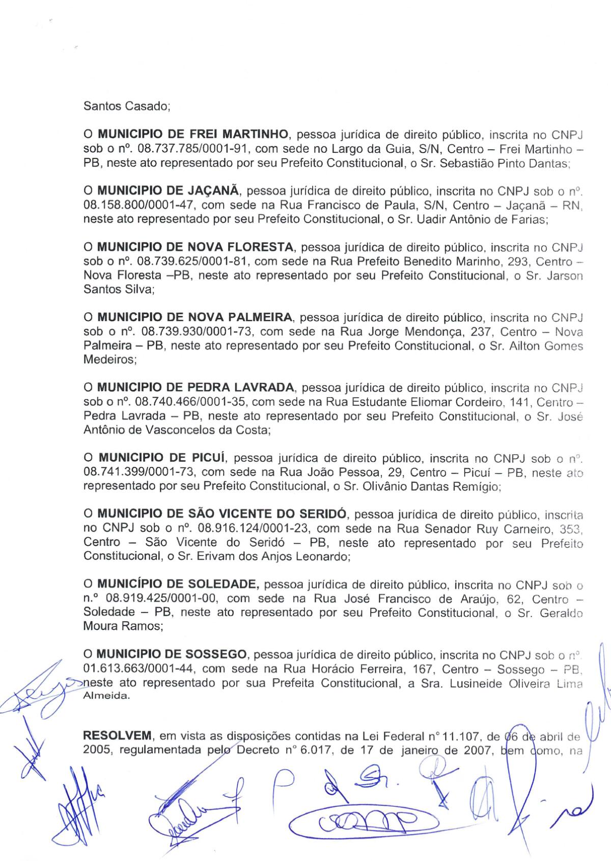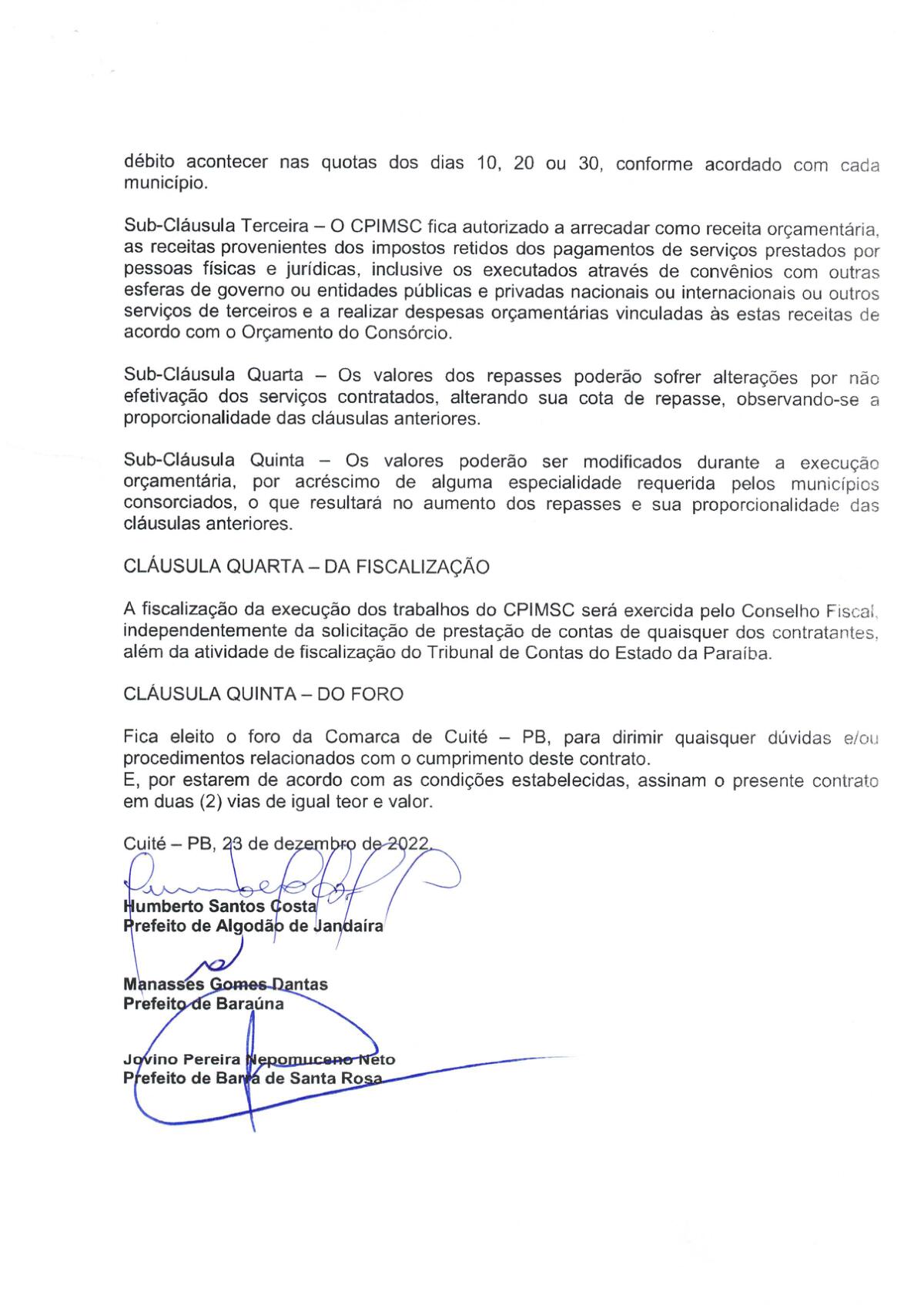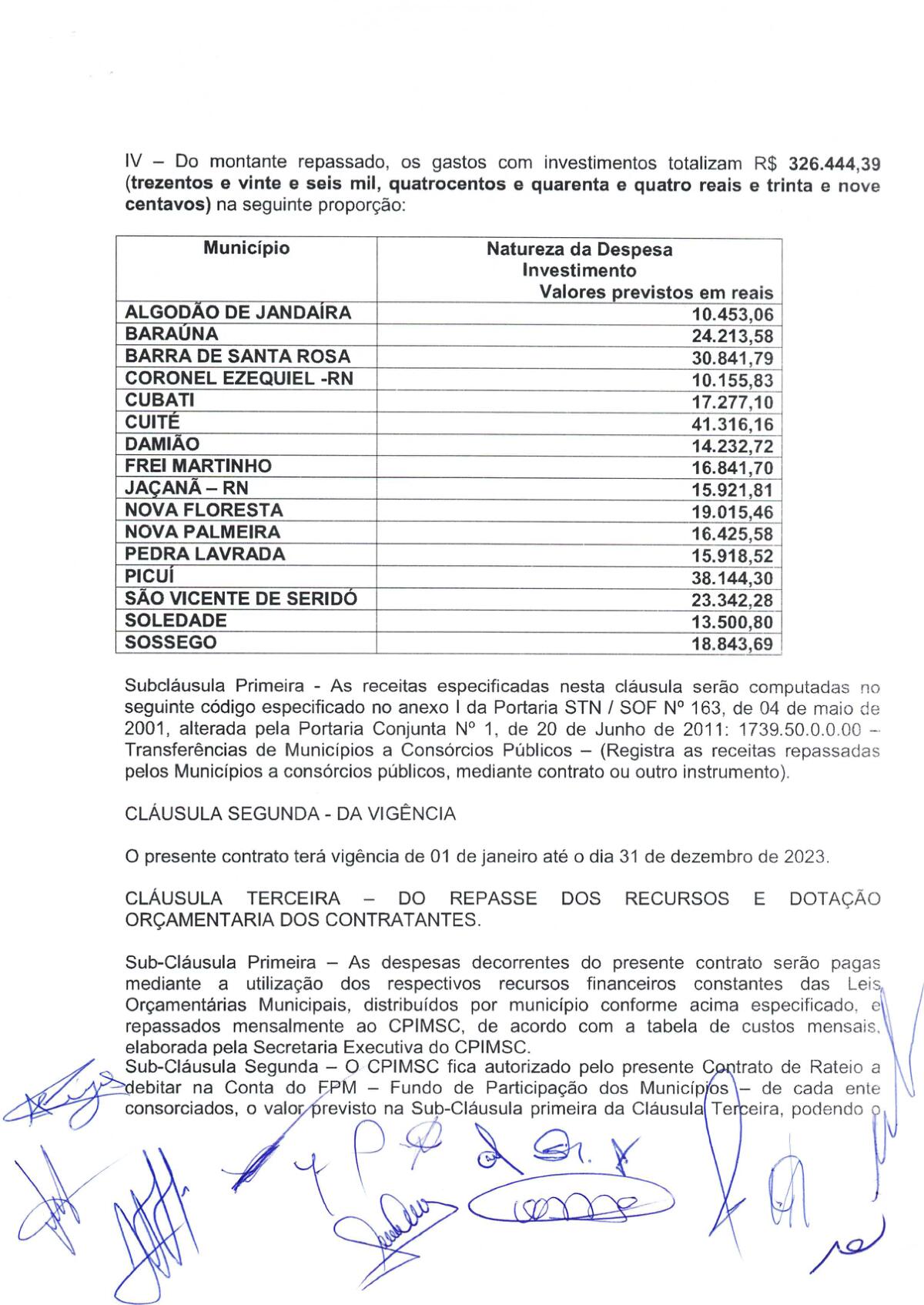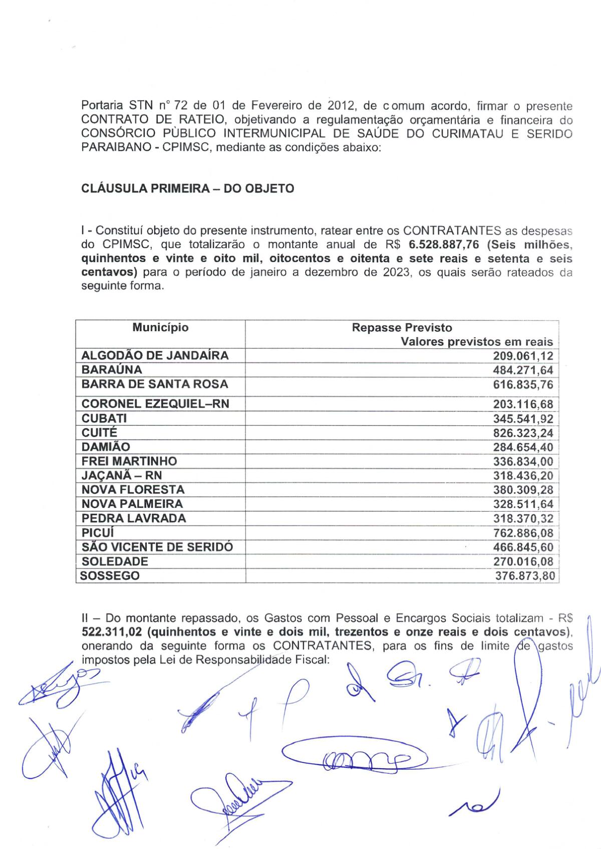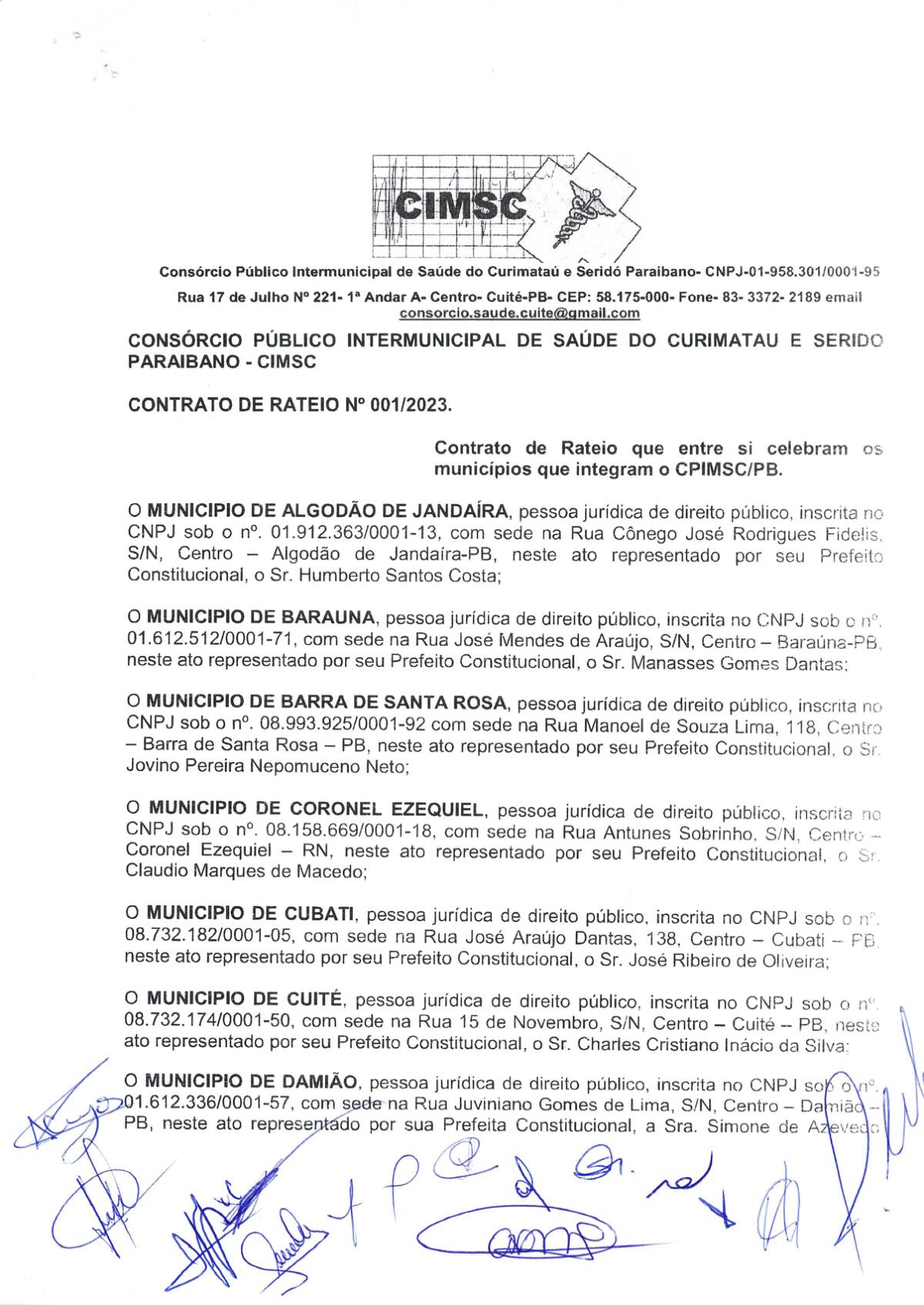 CONTRATO DE RATEIO N° 0001/2023 - CONTRATO DE RATEIO QUE ENTRE SI CELEBRAM OS MUNICIPIOS QUE INTEGRAM O CPIMSC/PB