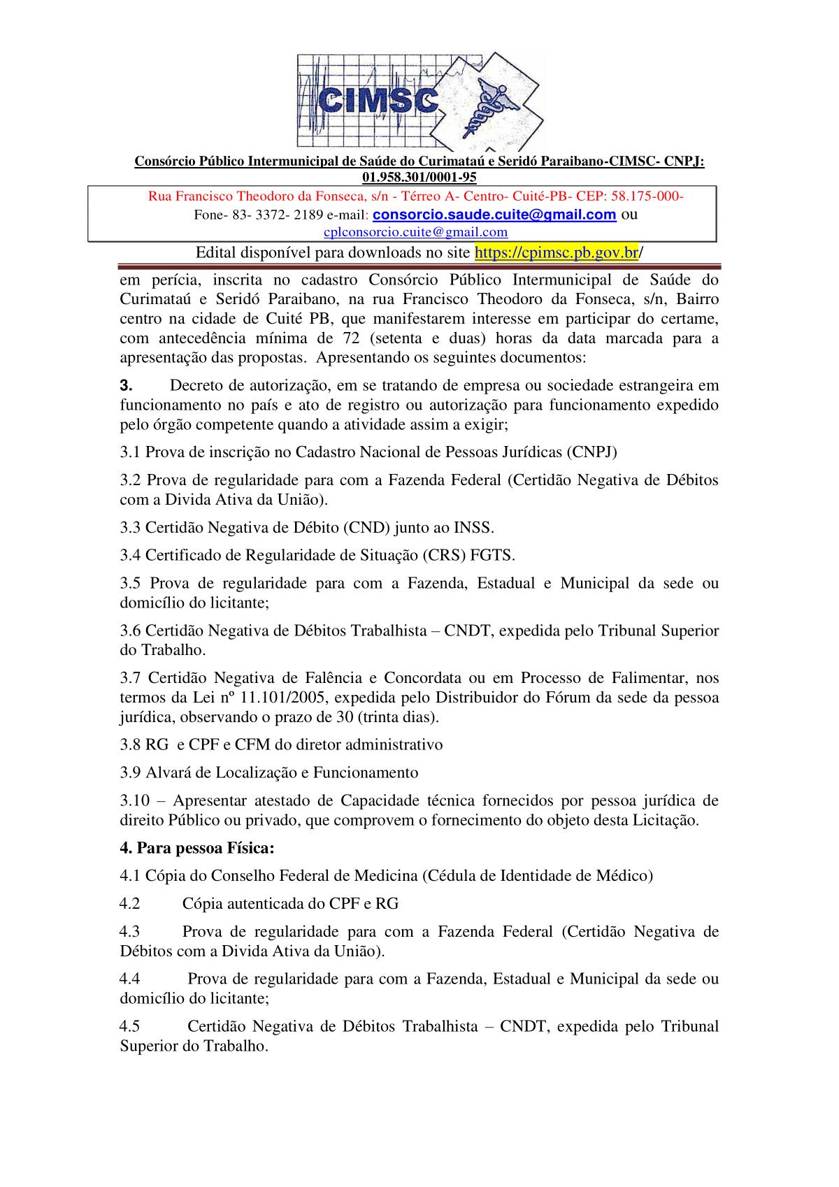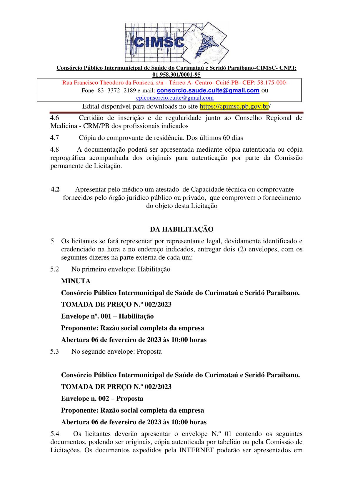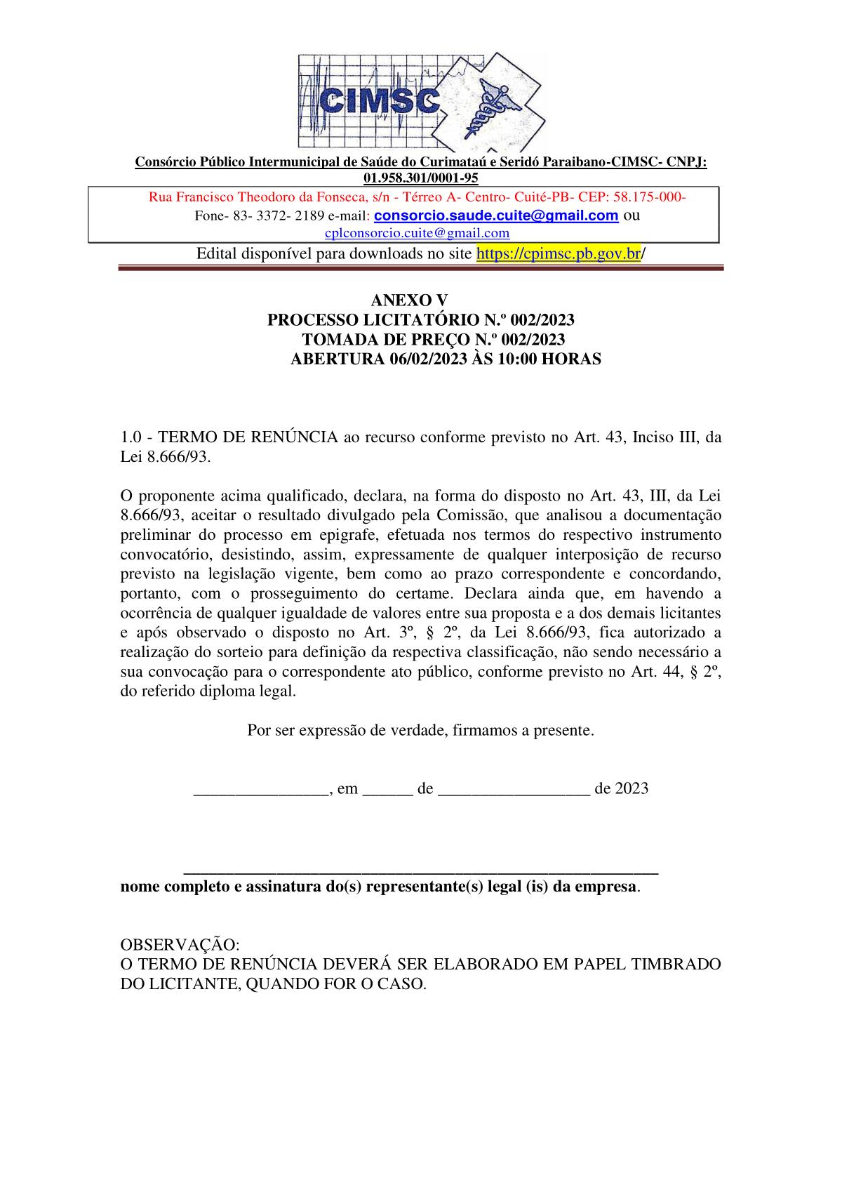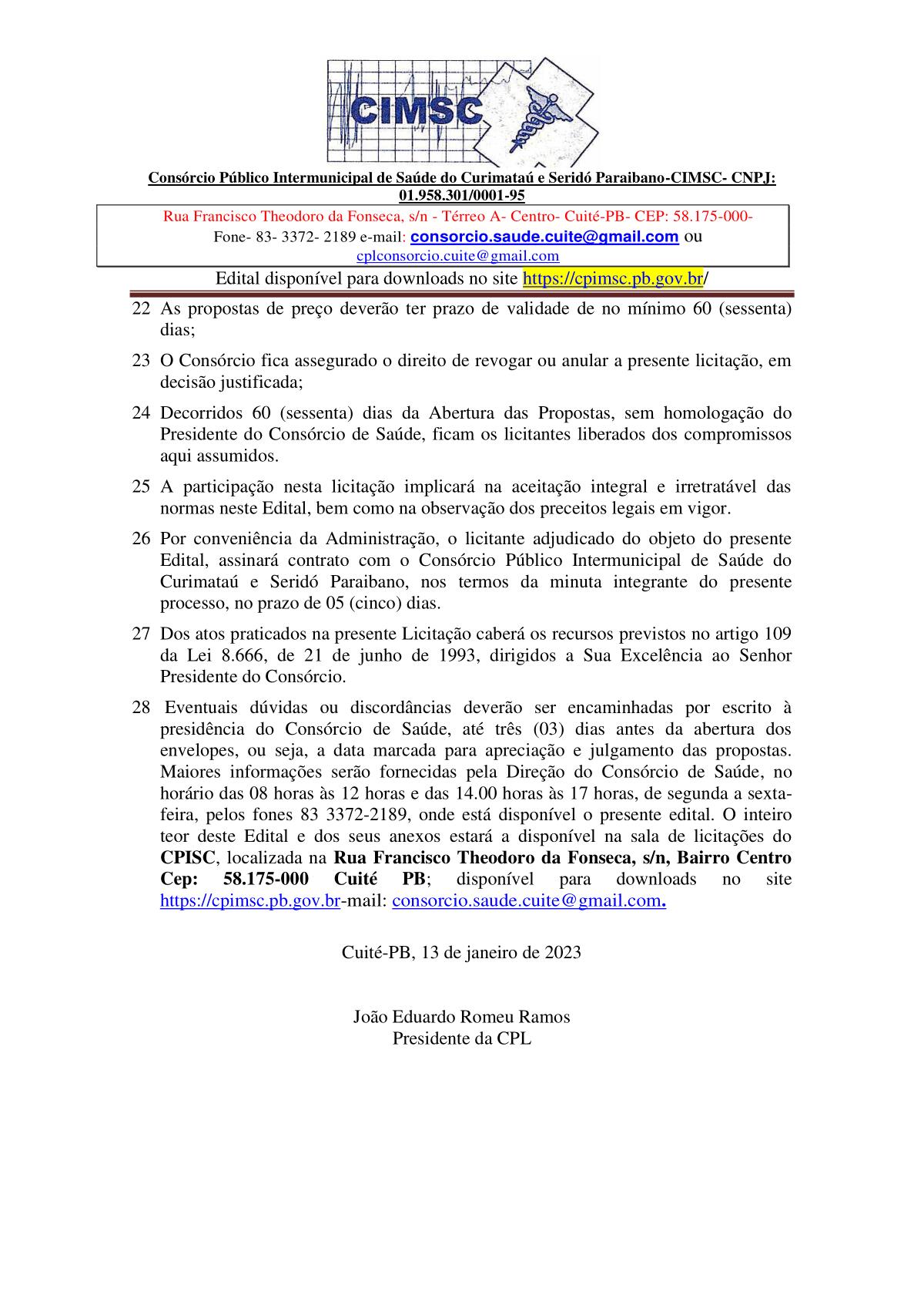 Conforme MP n° 2.200-2 de 24/08/2001, que institui a infraestrutura de chaves Públicas. Matéria Publicada no Diário Oficial do Consórcio Intermunicipal de Saúde do Curimataú e Seridó Paraibano/PB no dia - Edição 00656.