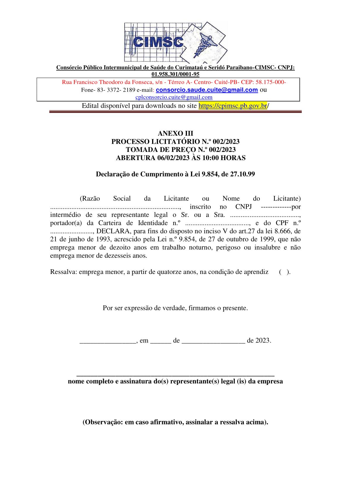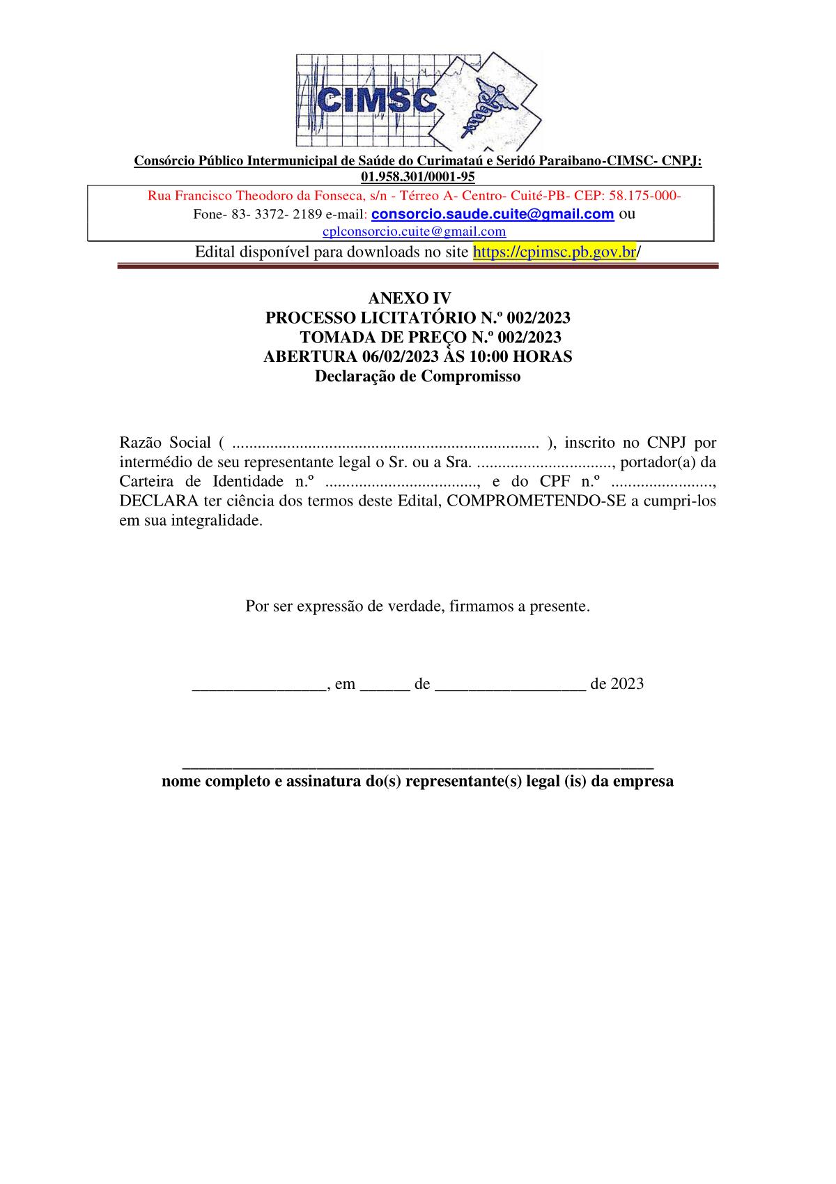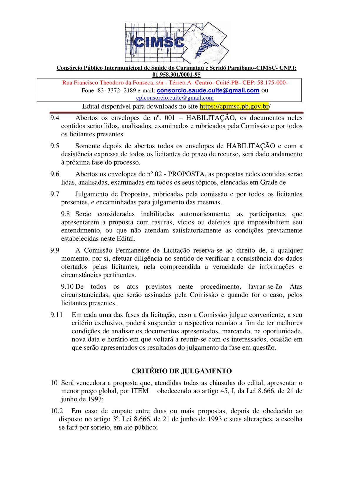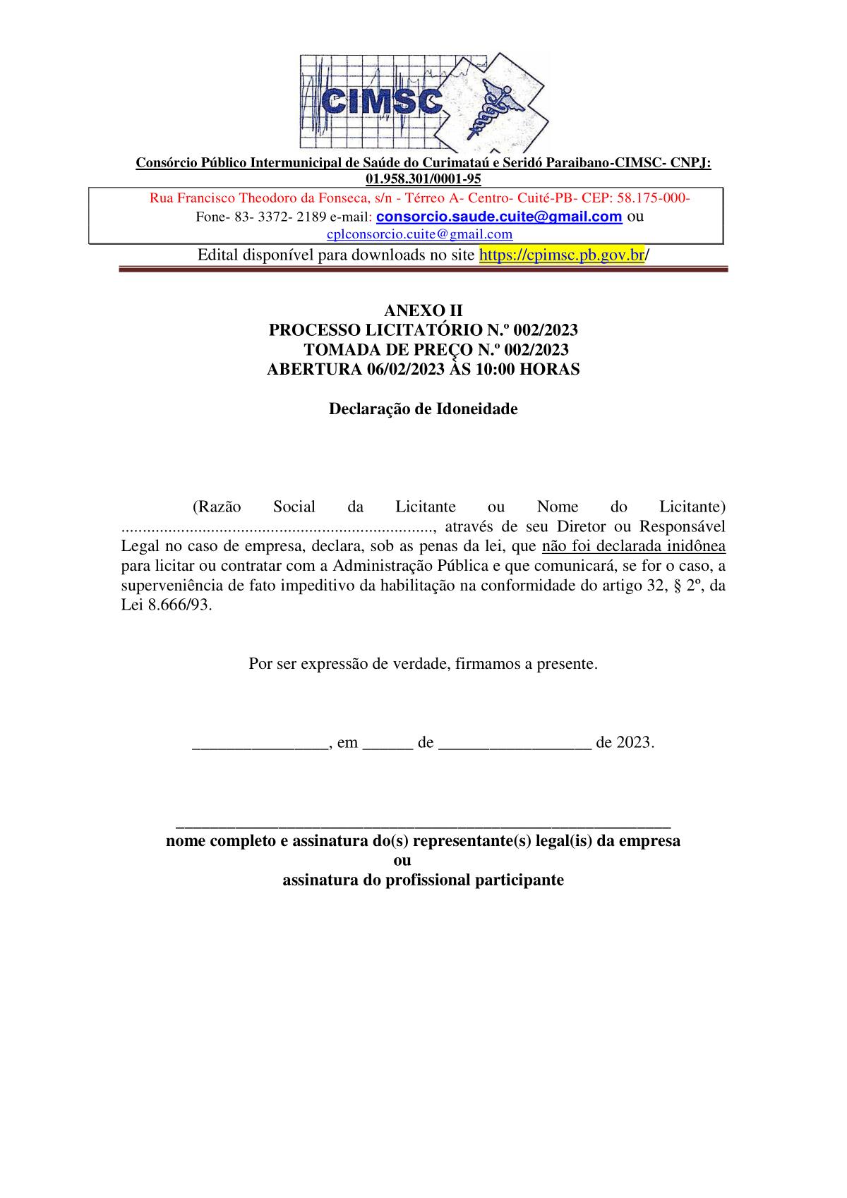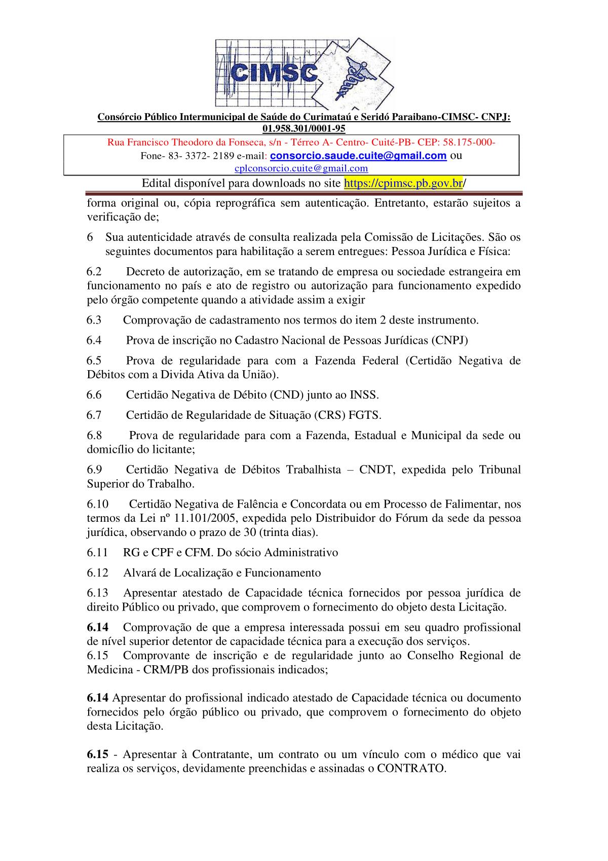Conforme MP n° 2.200-2 de 24/08/2001, que institui a infraestrutura de chaves Públicas. Matéria Publicada no Diário Oficial do Consórcio Intermunicipal de Saúde do Curimataú e Seridó Paraibano/PB no dia - Edição 00656.