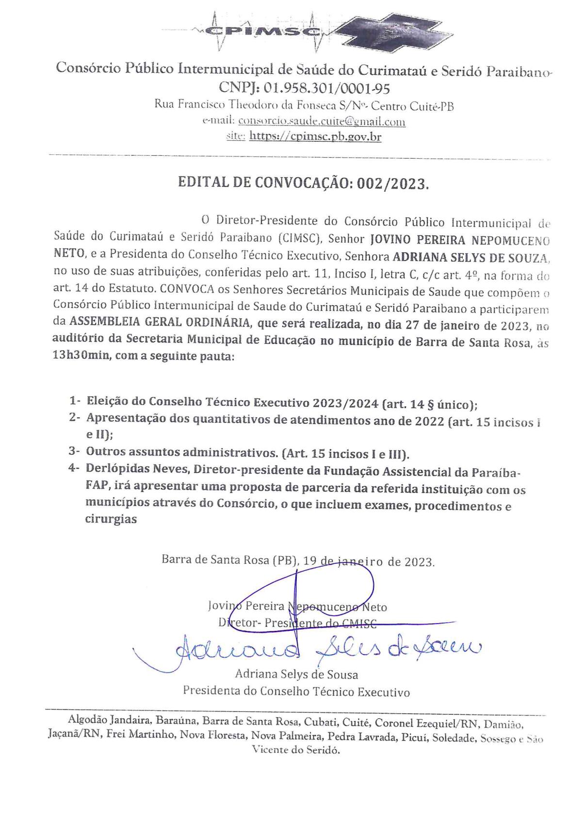 EDITAL DE CONVOCAÇÃO 0002/2023