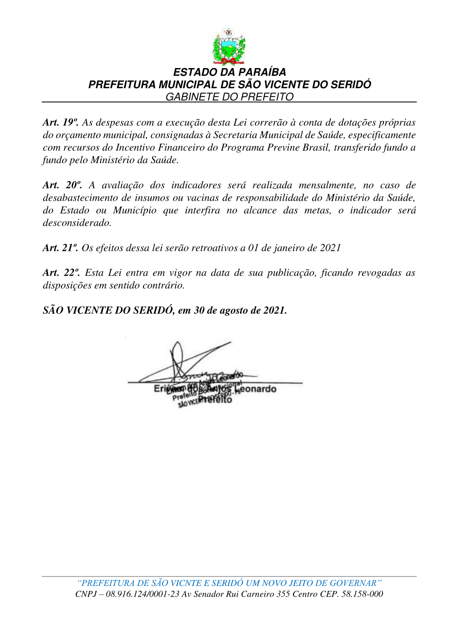 LEI 178/2021 - Dispõe sobre a instituição de incentivo variável por desempenho de metas do Programa Previne Brasil e da outras providencias.