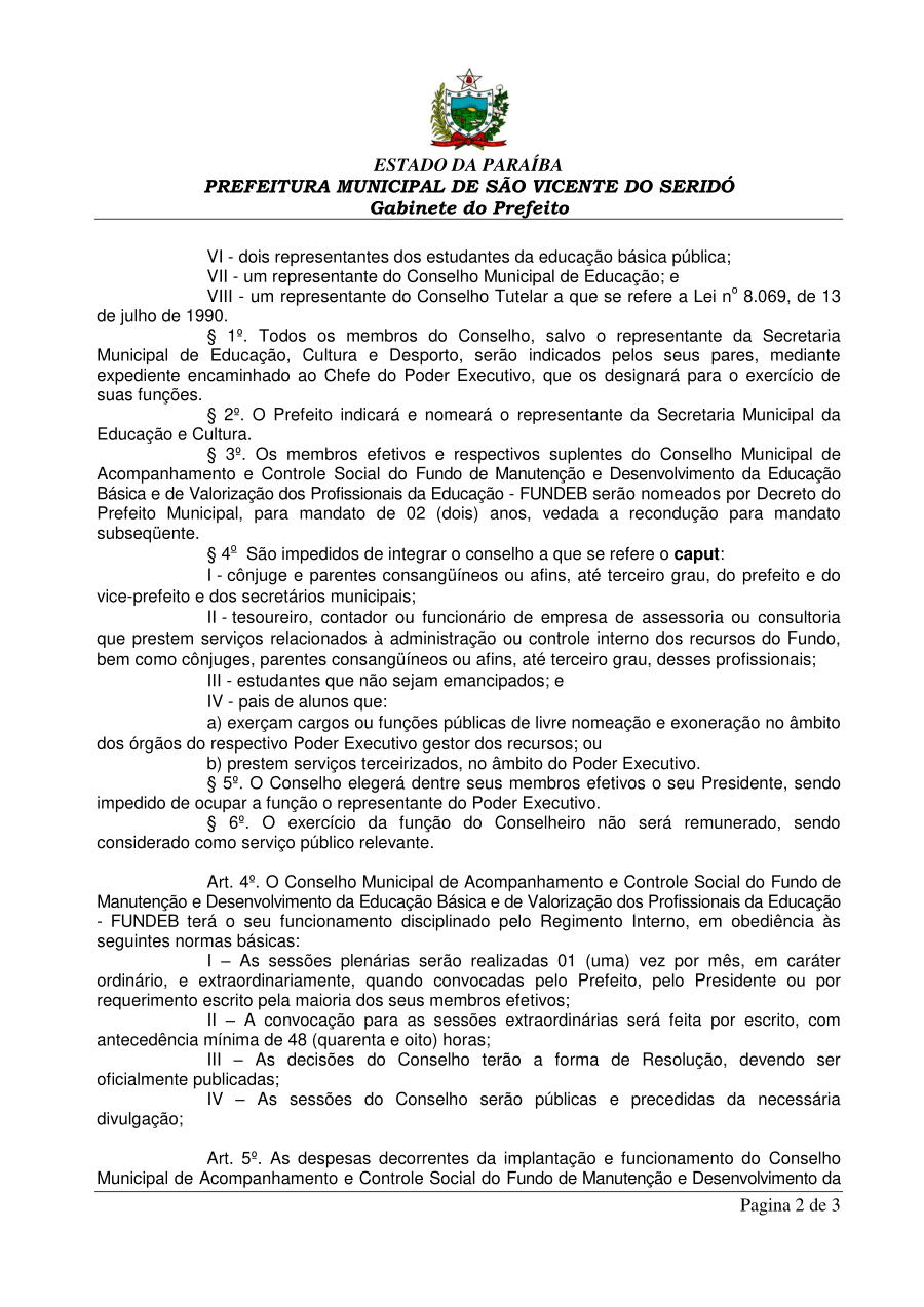 Conforme MP n° 2.200-2 de 24/08/2001, que institui a infraestrutura de chaves Públicas. Matéria Publicada no Diário Oficial do Município de São Vicente do Seridó/PB no dia - Edição .