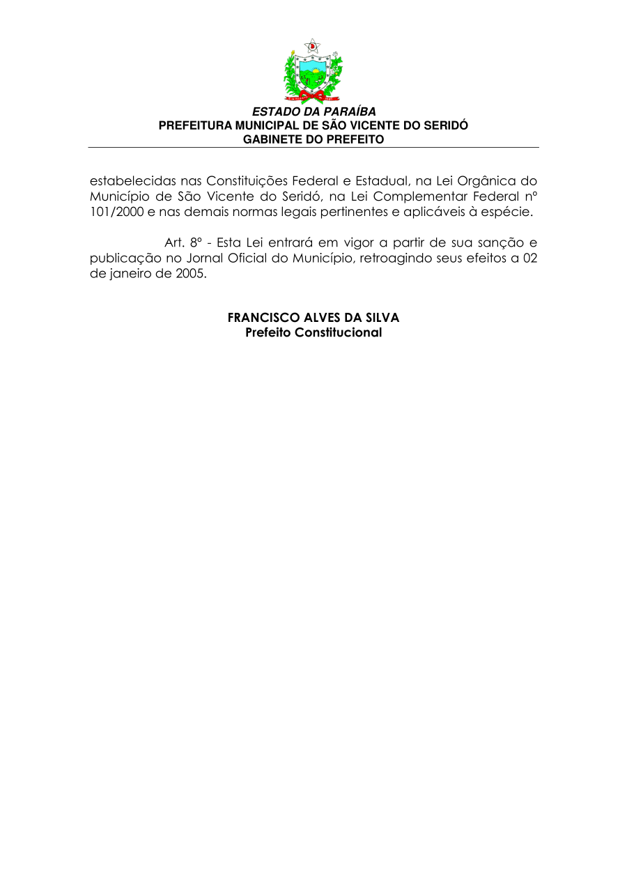 Conforme MP n° 2.200-2 de 24/08/2001, que institui a infraestrutura de chaves Públicas. Matéria Publicada no Diário Oficial do Município de São Vicente do Seridó/PB no dia - Edição .