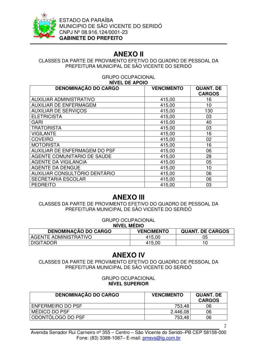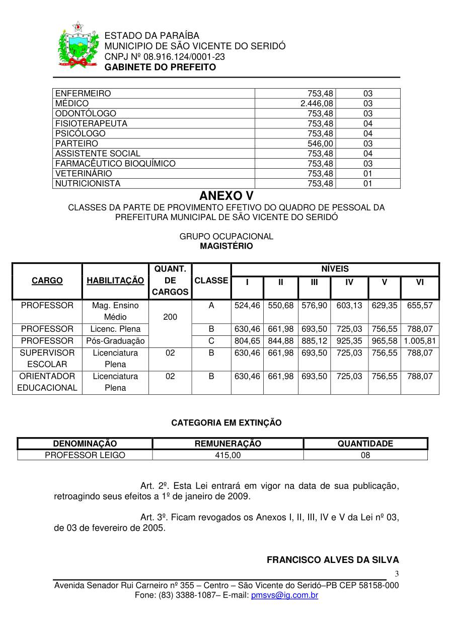LEI 002/2009 - DISPÕE SOBRE: ALTERA OS ANEXOS I, II, III, IV E V DA LEI Nº 03, DE 03 DE FEVEREIRO DE 2005 E DÁ OUTRAS PROVIDÊNCIAS.