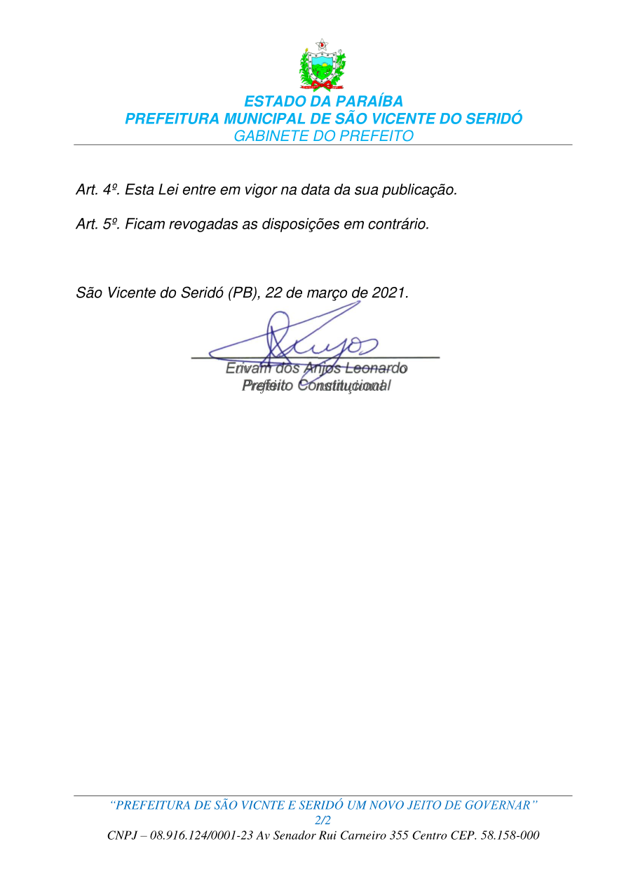 Conforme MP n° 2.200-2 de 24/08/2001, que institui a infraestrutura de chaves Públicas. Matéria Publicada no Diário Oficial do Município de São Vicente do Seridó/PB no dia - Edição .