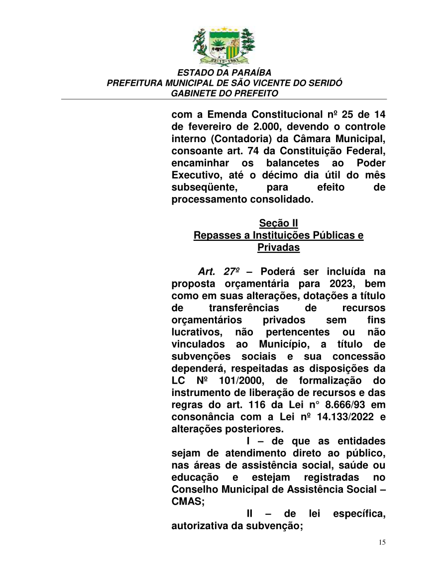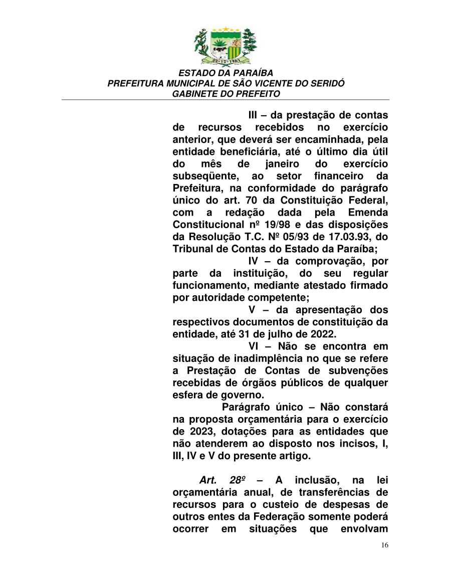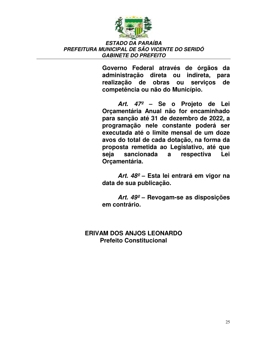 Conforme MP n° 2.200-2 de 24/08/2001, que institui a infraestrutura de chaves Públicas. Matéria Publicada no Diário Oficial do Município de São Vicente do Seridó/PB no dia - Edição .