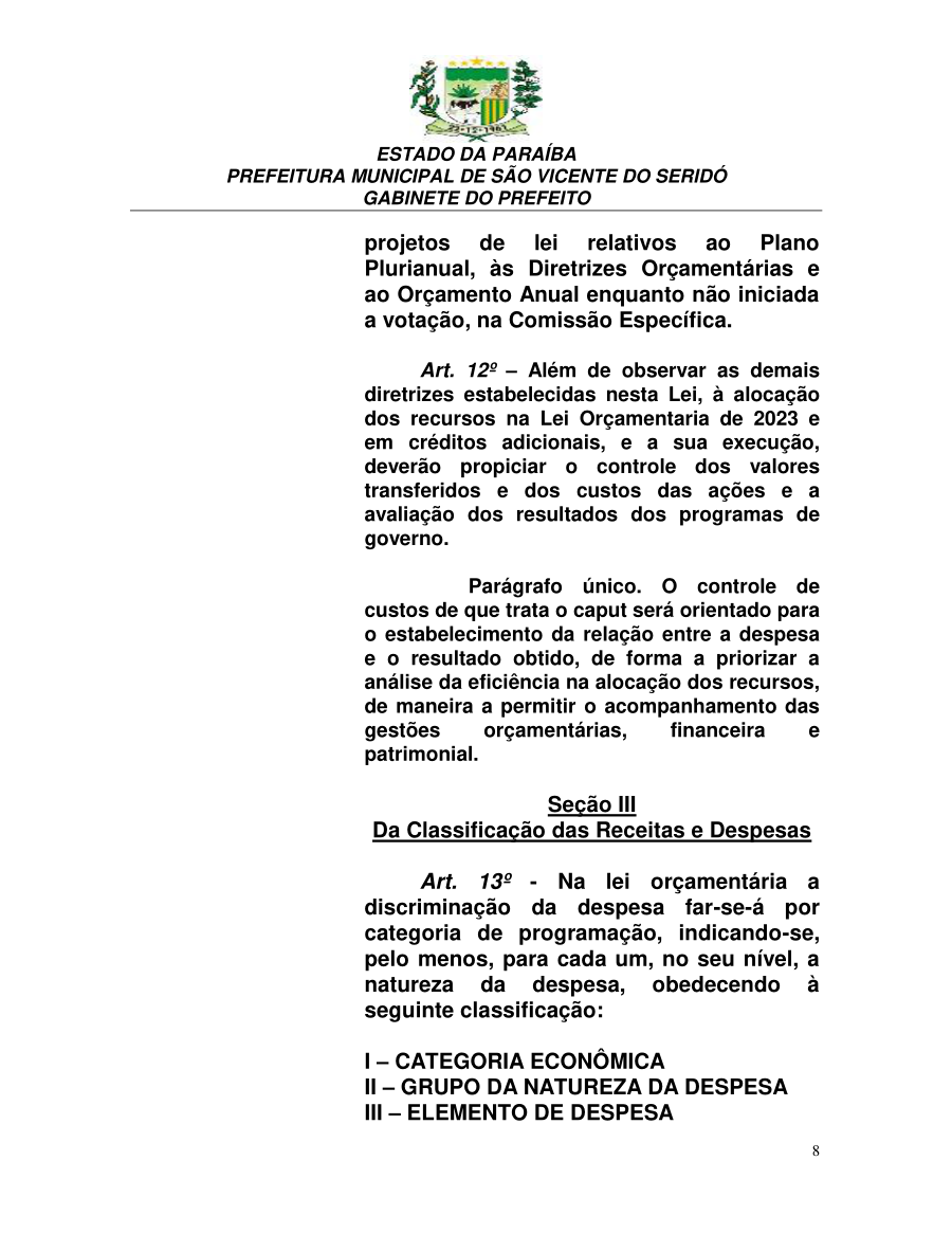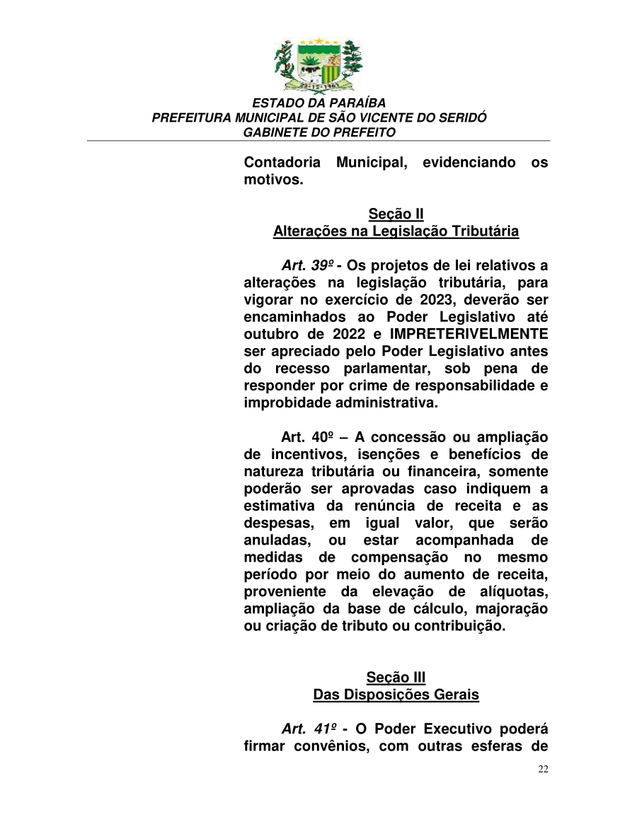 LEI 190/2022 - dISPÕE SOBRE AS DIRETRIZES PARA A ELABORAÇÃO DA LEI ORÇAMENTÁRIA ANUAL PARA O EXERCICIO FINANCEIRO DE 2023