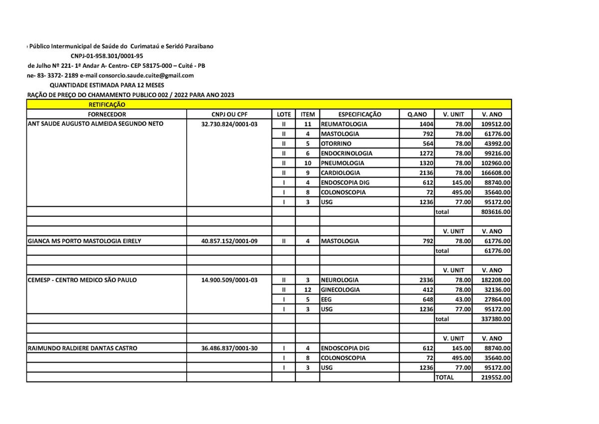2º MAPA DE APURAÇÃO DE PREÇO DO CHAMAMENTO PUBLICO 002 / 2022 PARA ANO 2023