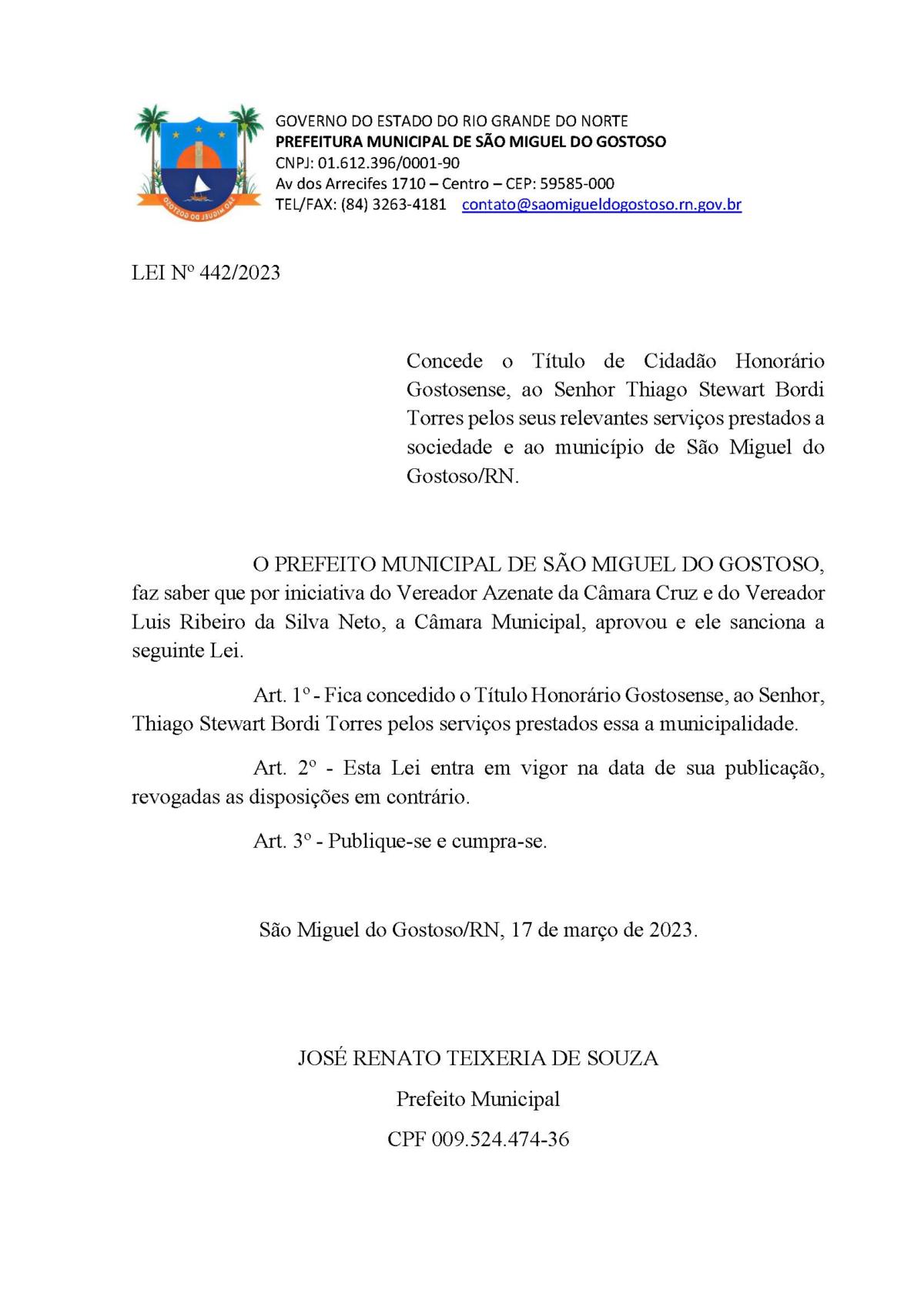 Conforme MP n° 2.200-2 de 24/08/2001, que institui a infraestrutura de chaves Públicas. Matéria Publicada no Diário Oficial do Município de São Miguel do Gostoso/RN no dia - Edição 00539.