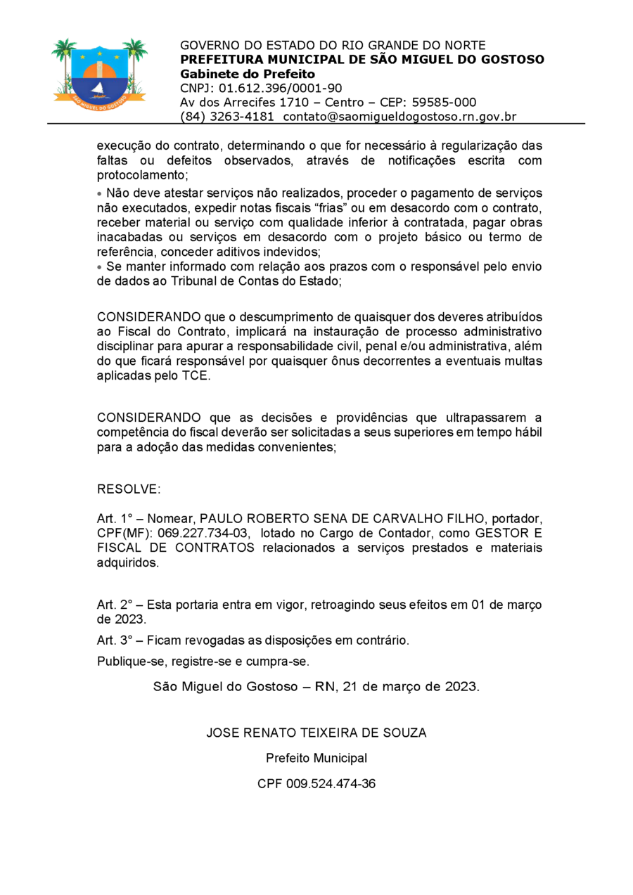 Conforme MP n° 2.200-2 de 24/08/2001, que institui a infraestrutura de chaves Públicas. Matéria Publicada no Diário Oficial do Município de São Miguel do Gostoso/RN no dia - Edição 00544.