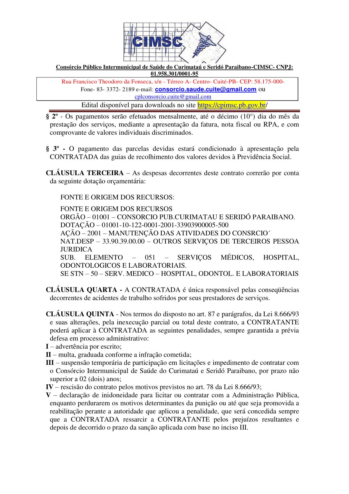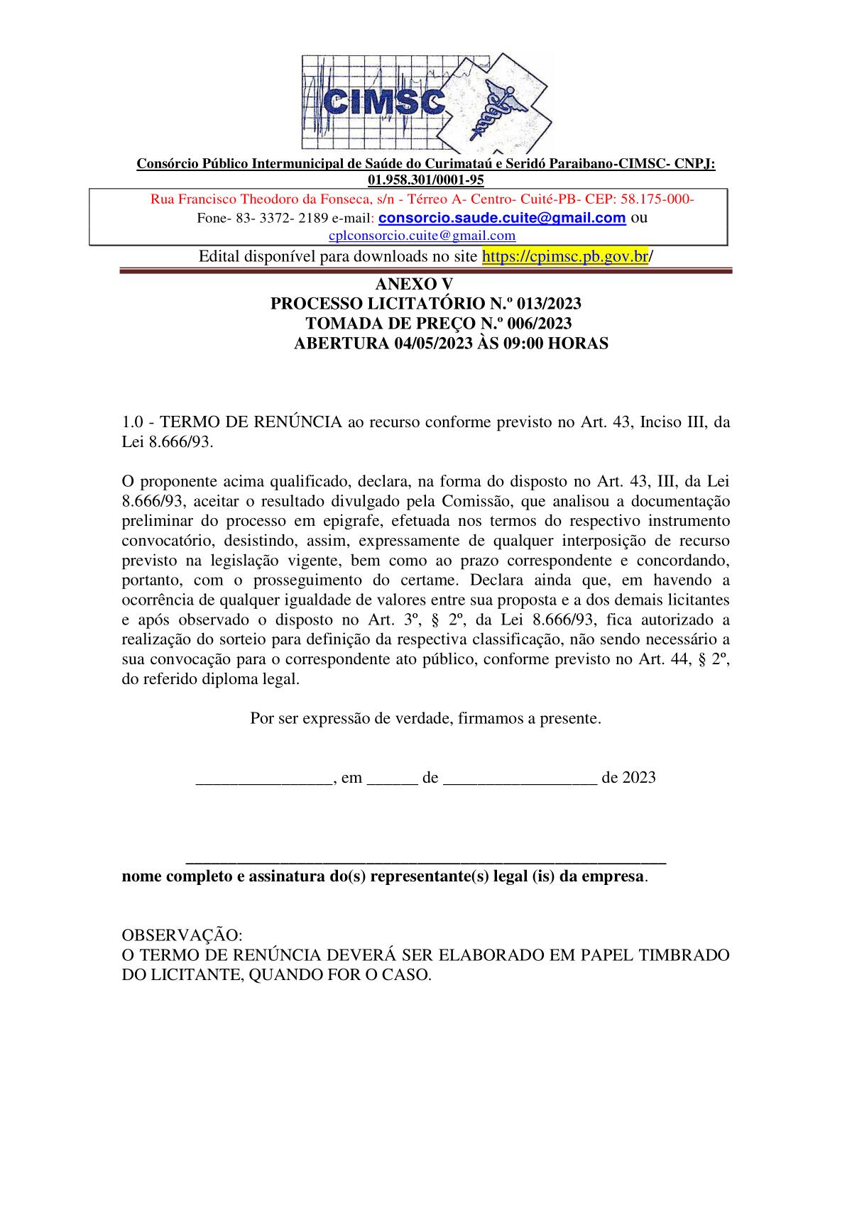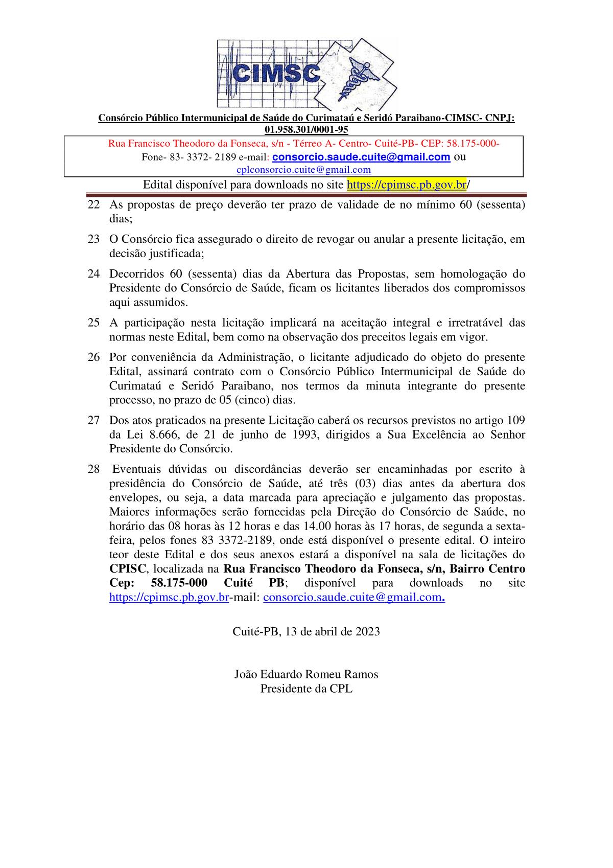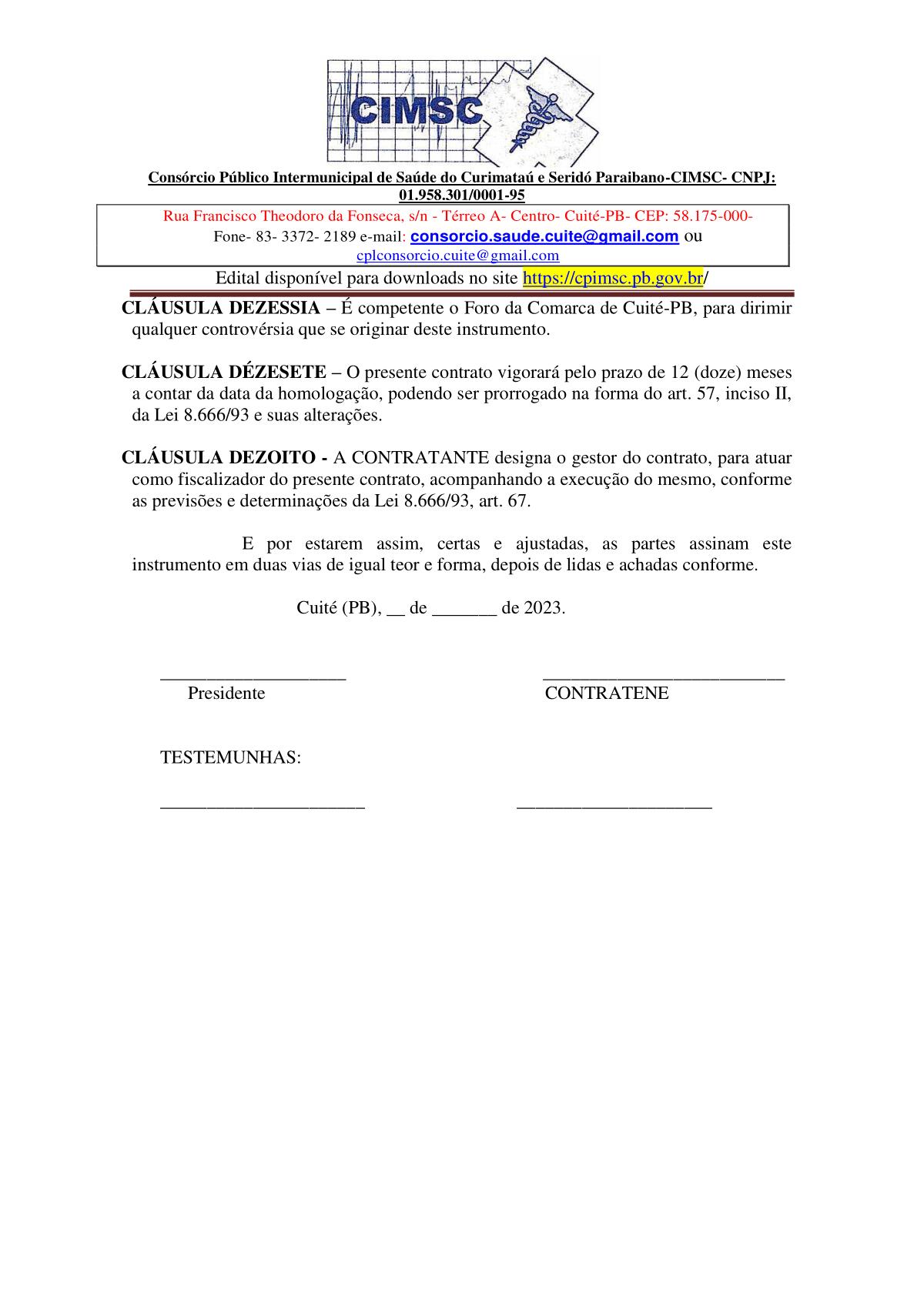 Conforme MP n° 2.200-2 de 24/08/2001, que institui a infraestrutura de chaves Públicas. Matéria Publicada no Diário Oficial do Consórcio Intermunicipal de Saúde do Curimataú e Seridó Paraibano/PB no dia - Edição 00714.