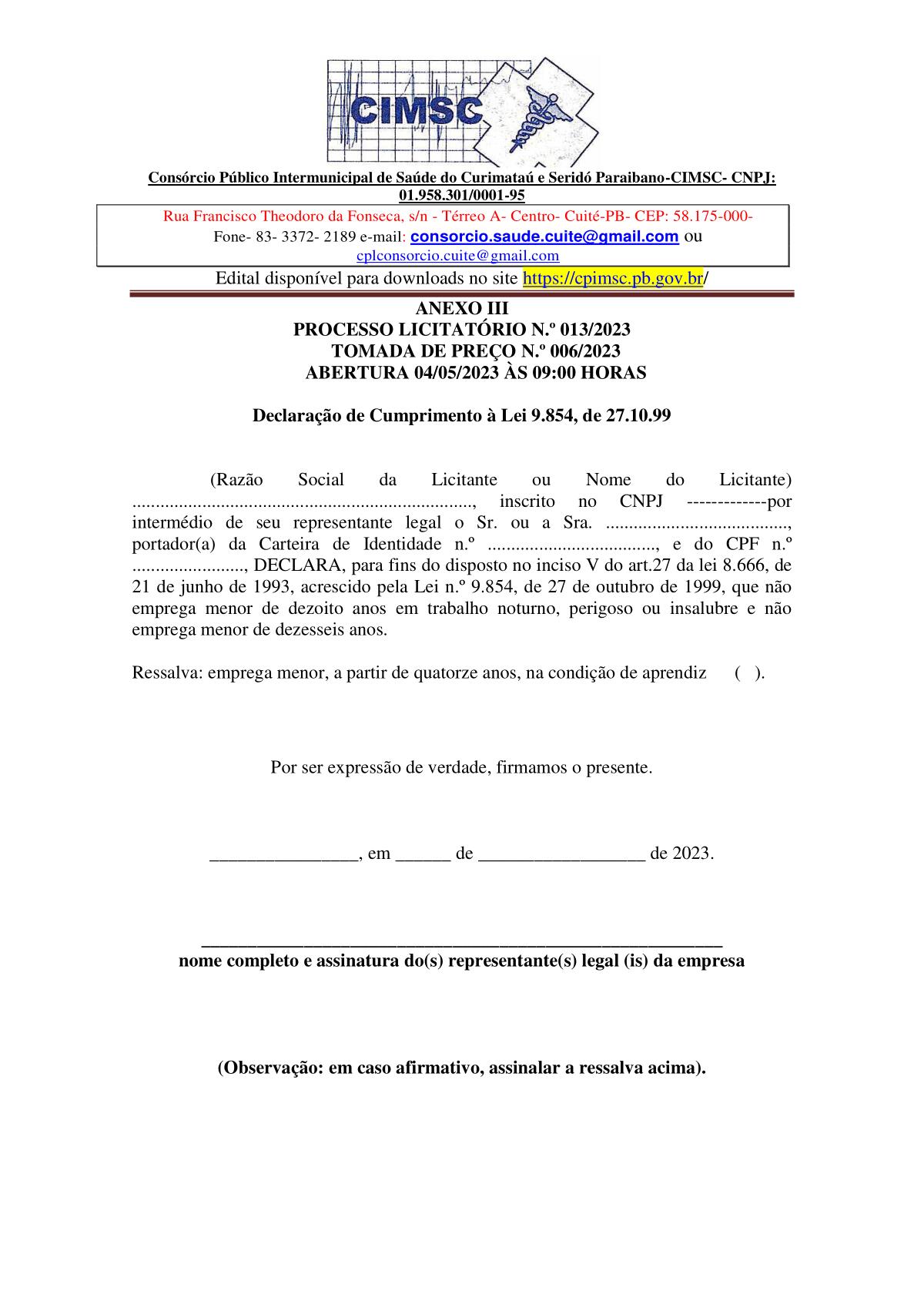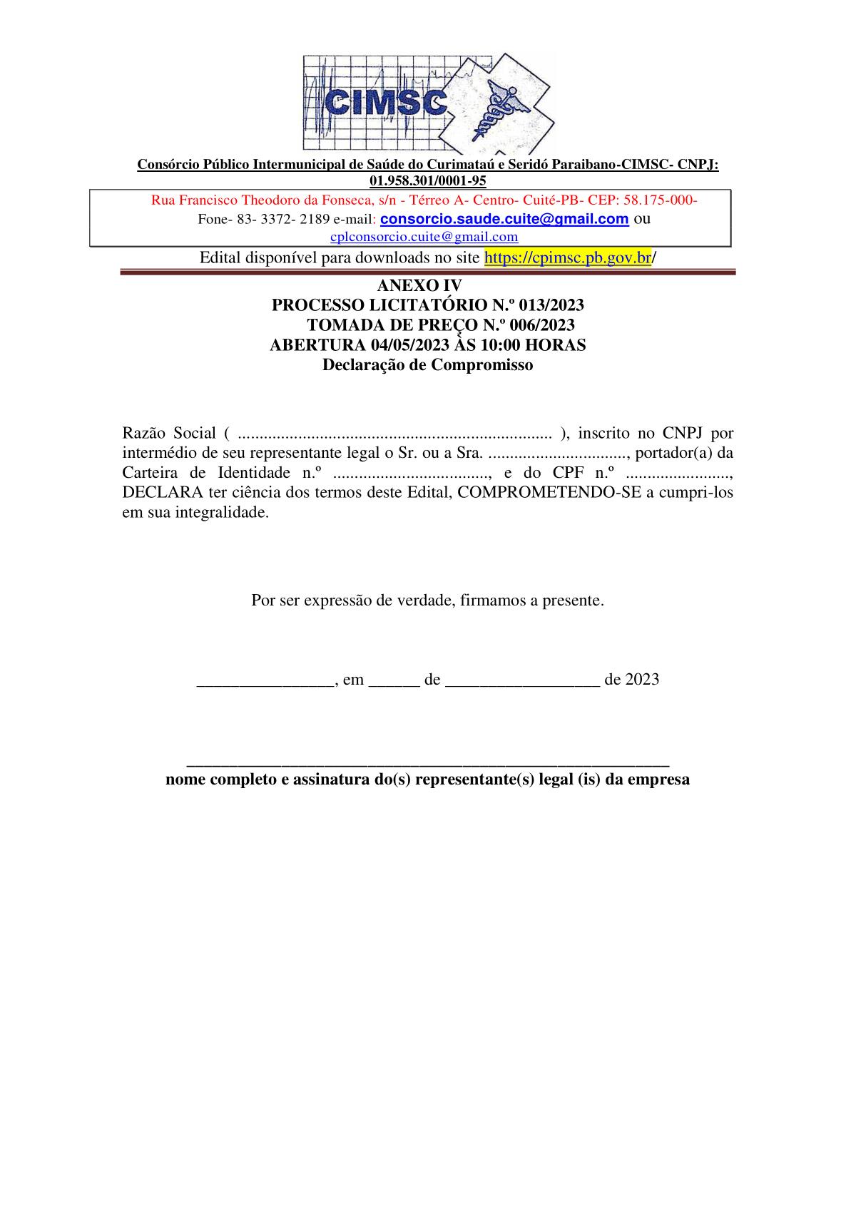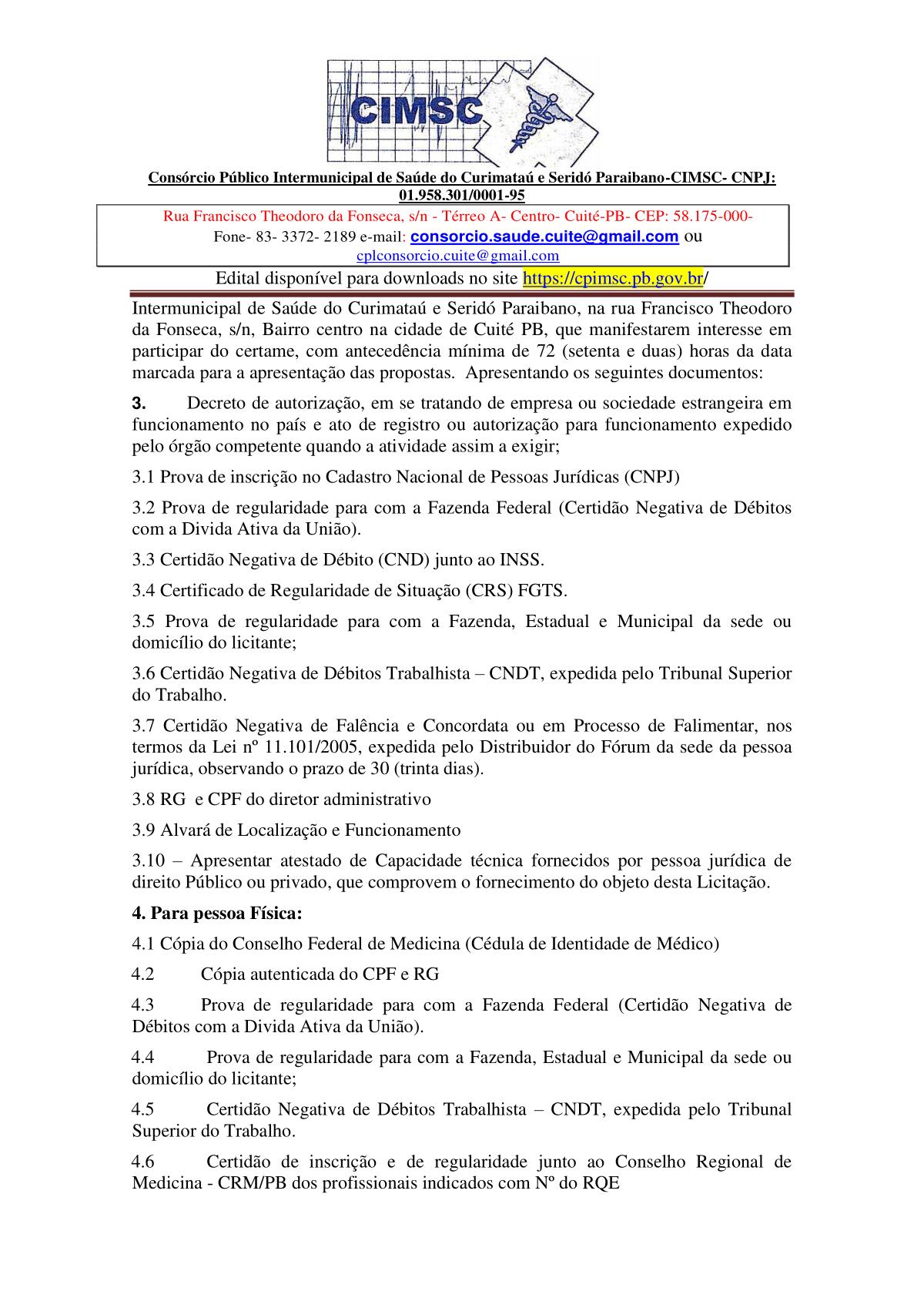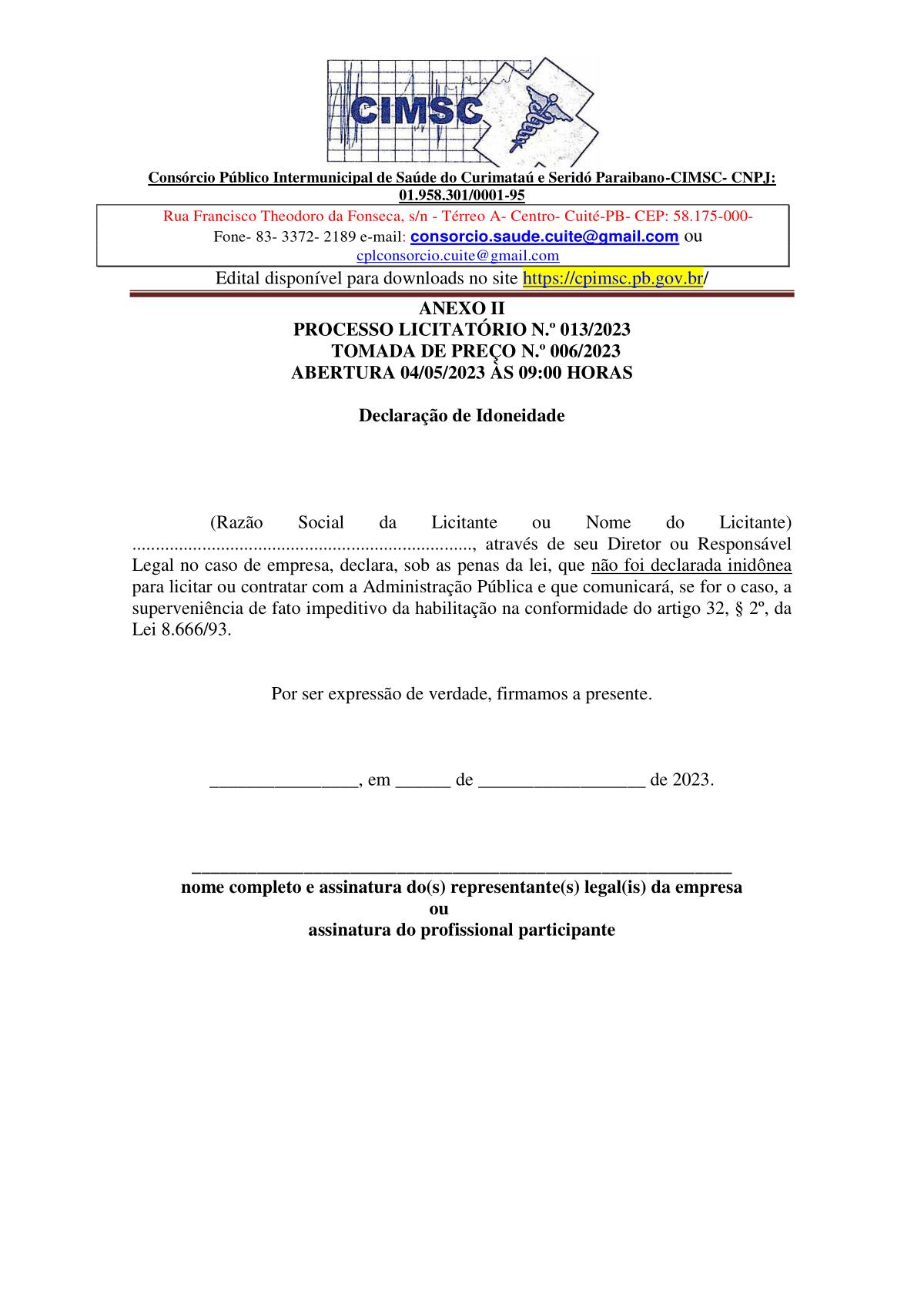 Conforme MP n° 2.200-2 de 24/08/2001, que institui a infraestrutura de chaves Públicas. Matéria Publicada no Diário Oficial do Consórcio Intermunicipal de Saúde do Curimataú e Seridó Paraibano/PB no dia - Edição 00714.