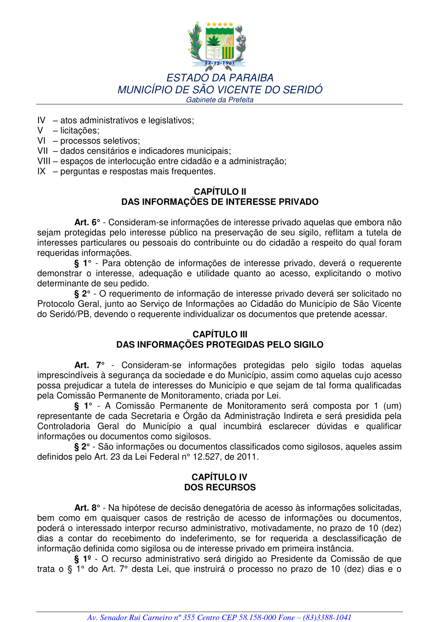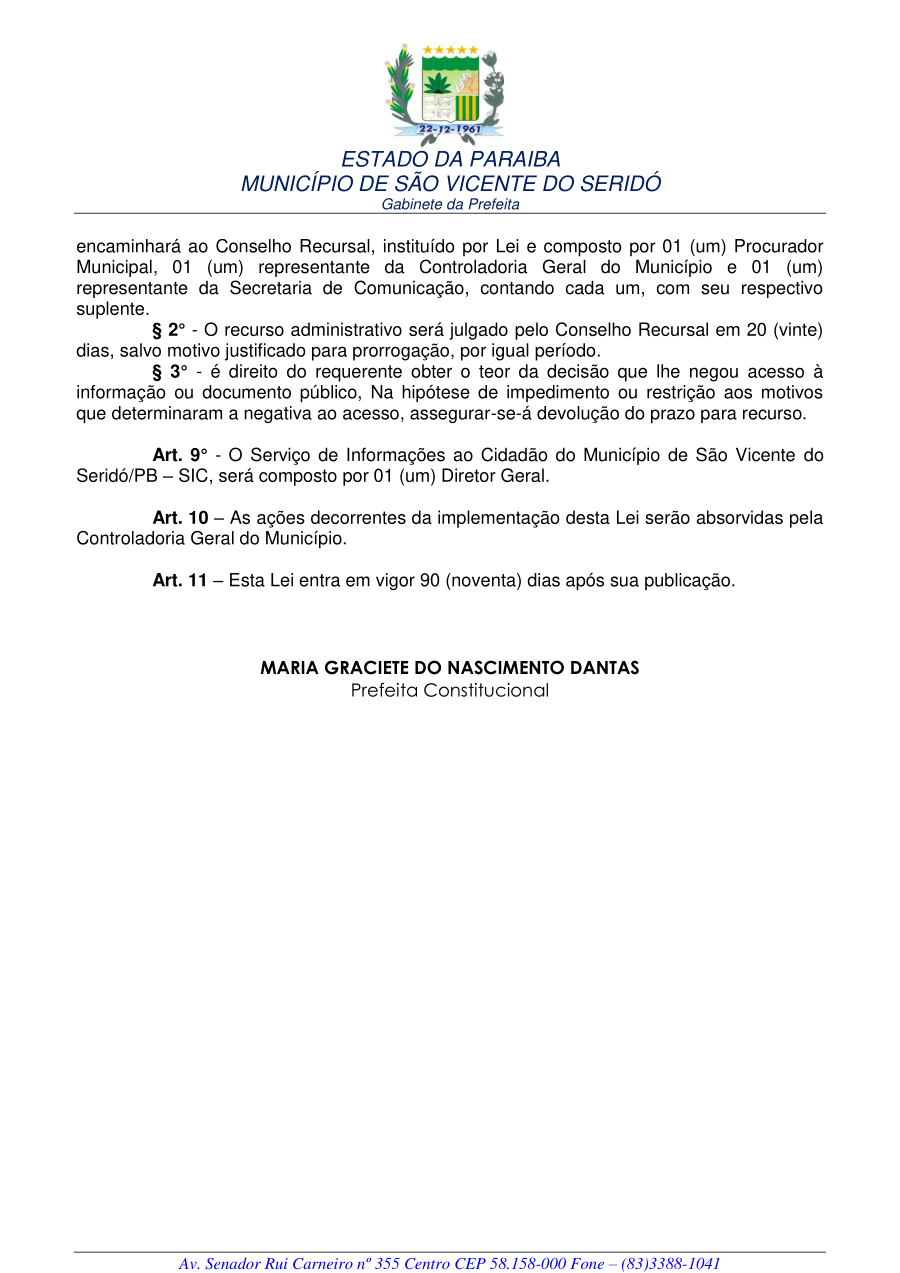 Conforme MP n° 2.200-2 de 24/08/2001, que institui a infraestrutura de chaves Públicas. Matéria Publicada no Diário Oficial do Município de São Vicente do Seridó/PB no dia - Edição .