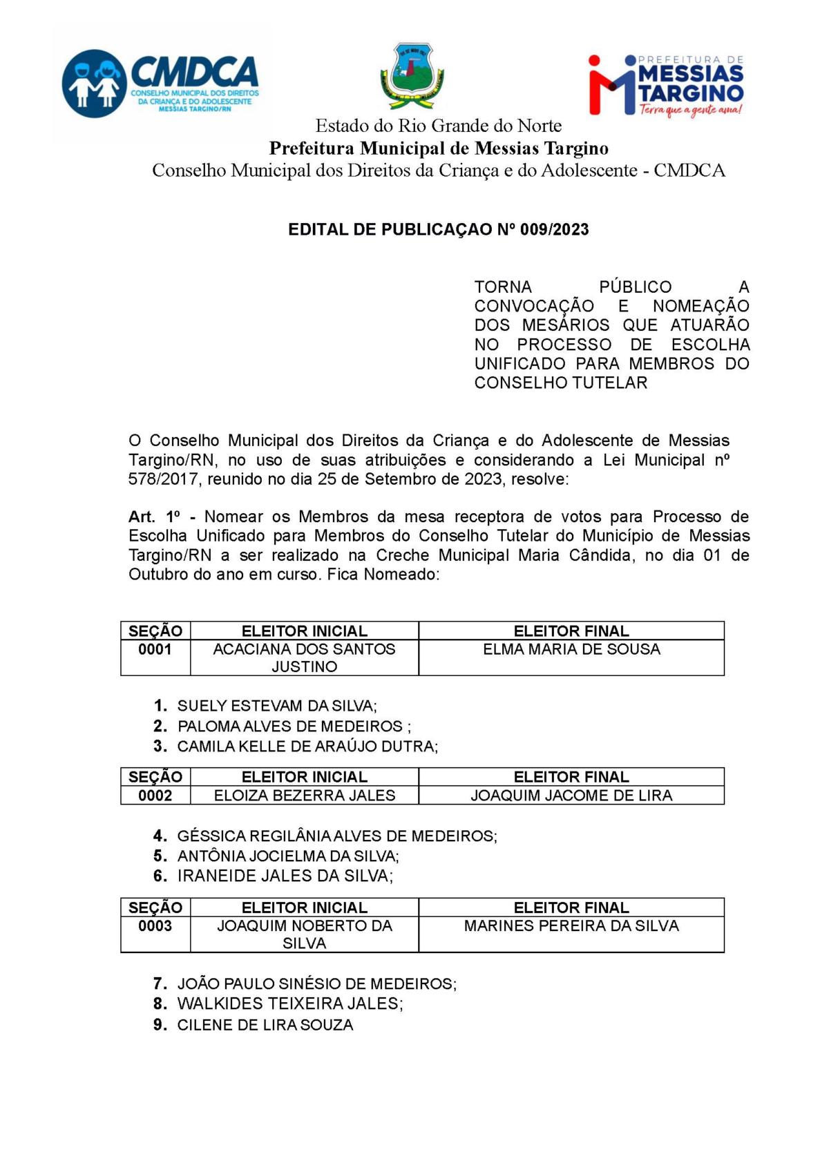 EDITAL DE PUBLICAÇAO Nº 009/2023