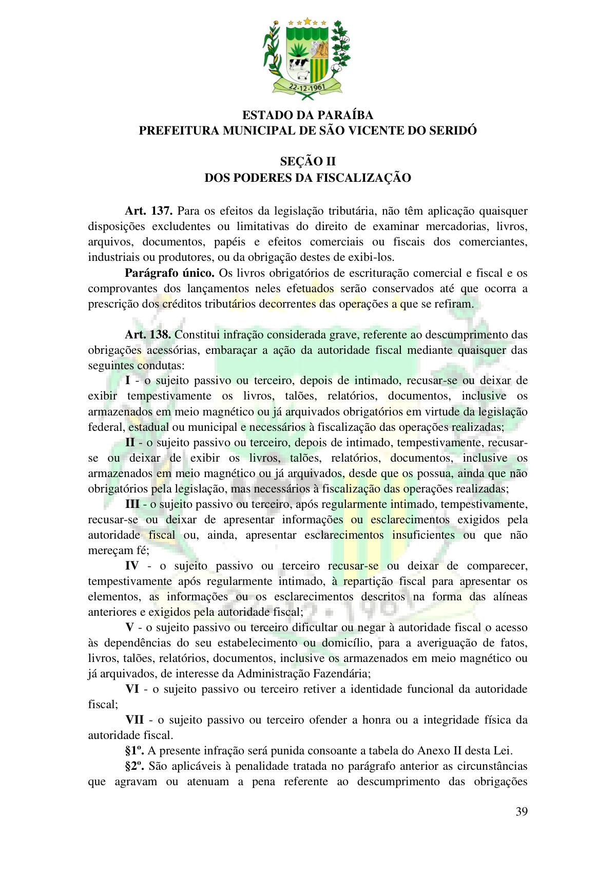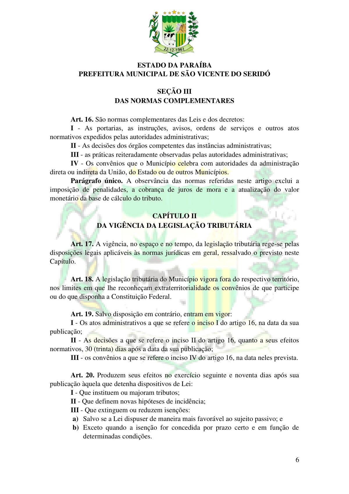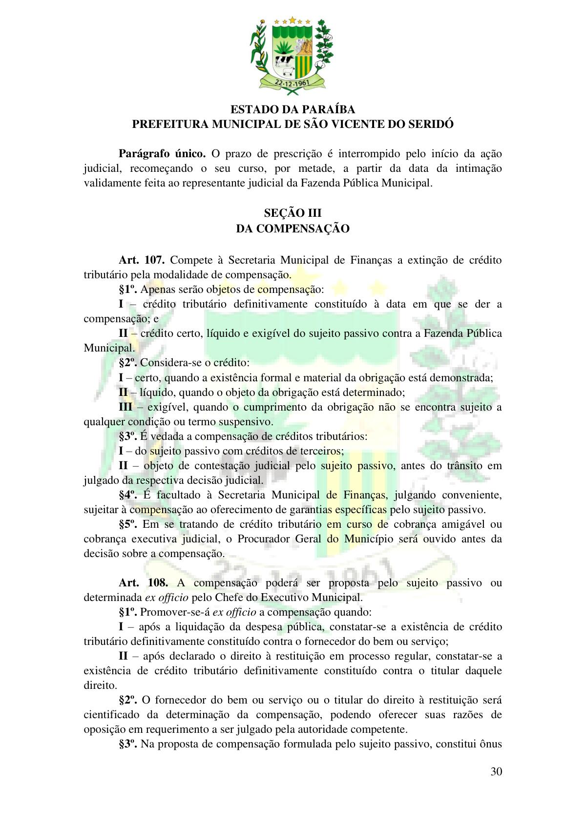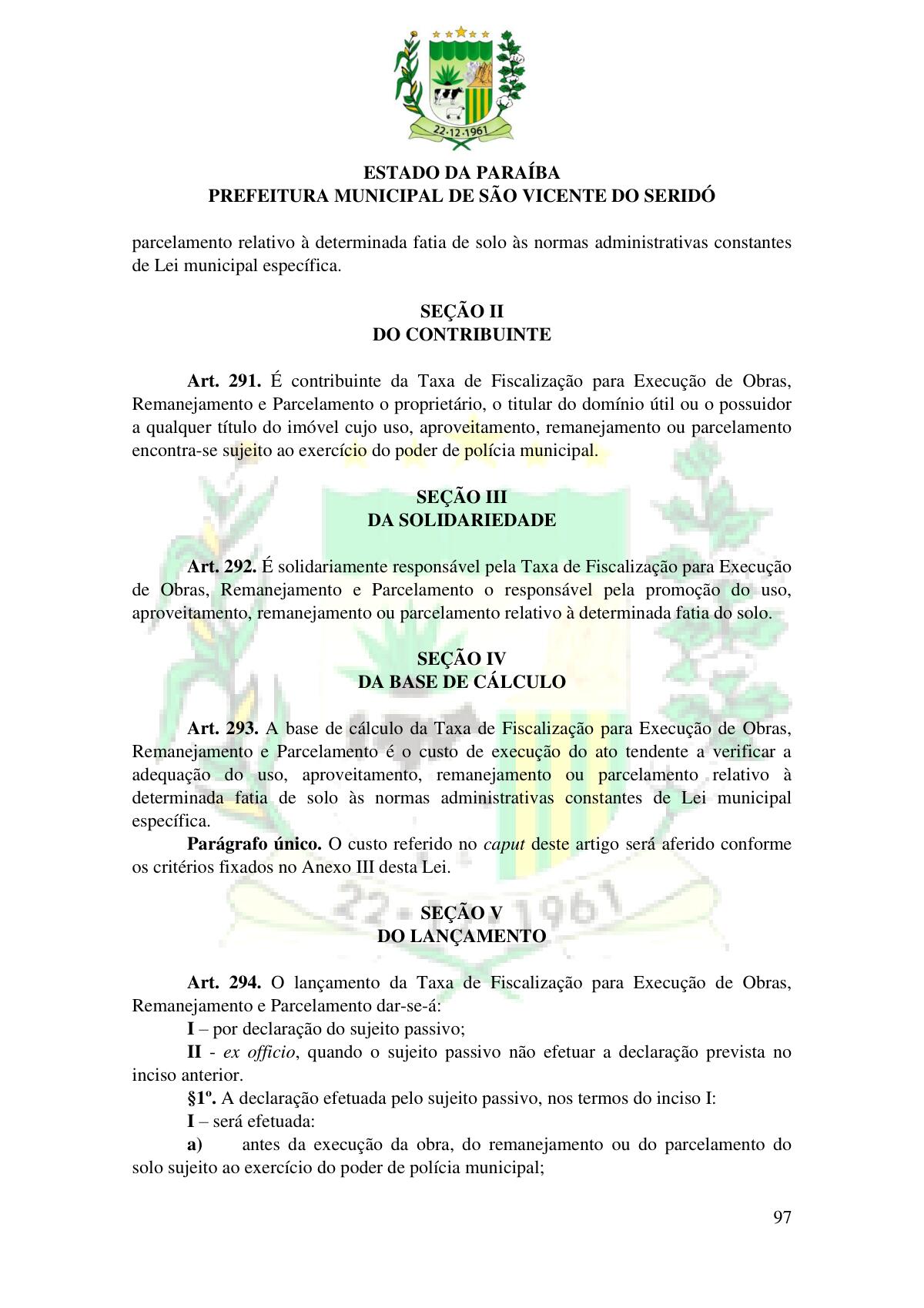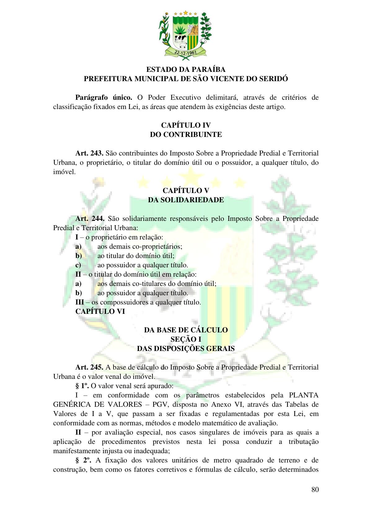 LEI Nº 230/2023 - REVOGA A LEI COMPLEMENTAR Nº 012/1996 E CRIA O NOVO CÓDIGO TRIBUTÁRIO E DE RENDAS DO MUNICÍPIO DE SÃO VICENTE DO SERIDÓ - PB E DÁ OUTRAS PROVIDÊNCIAS.