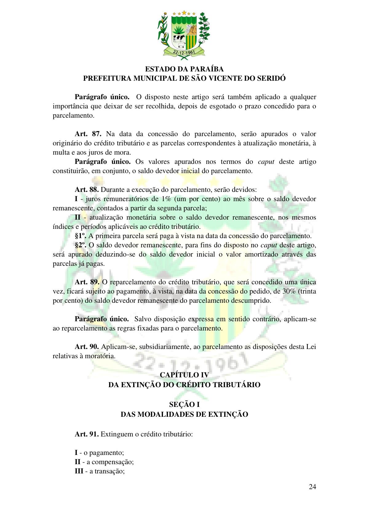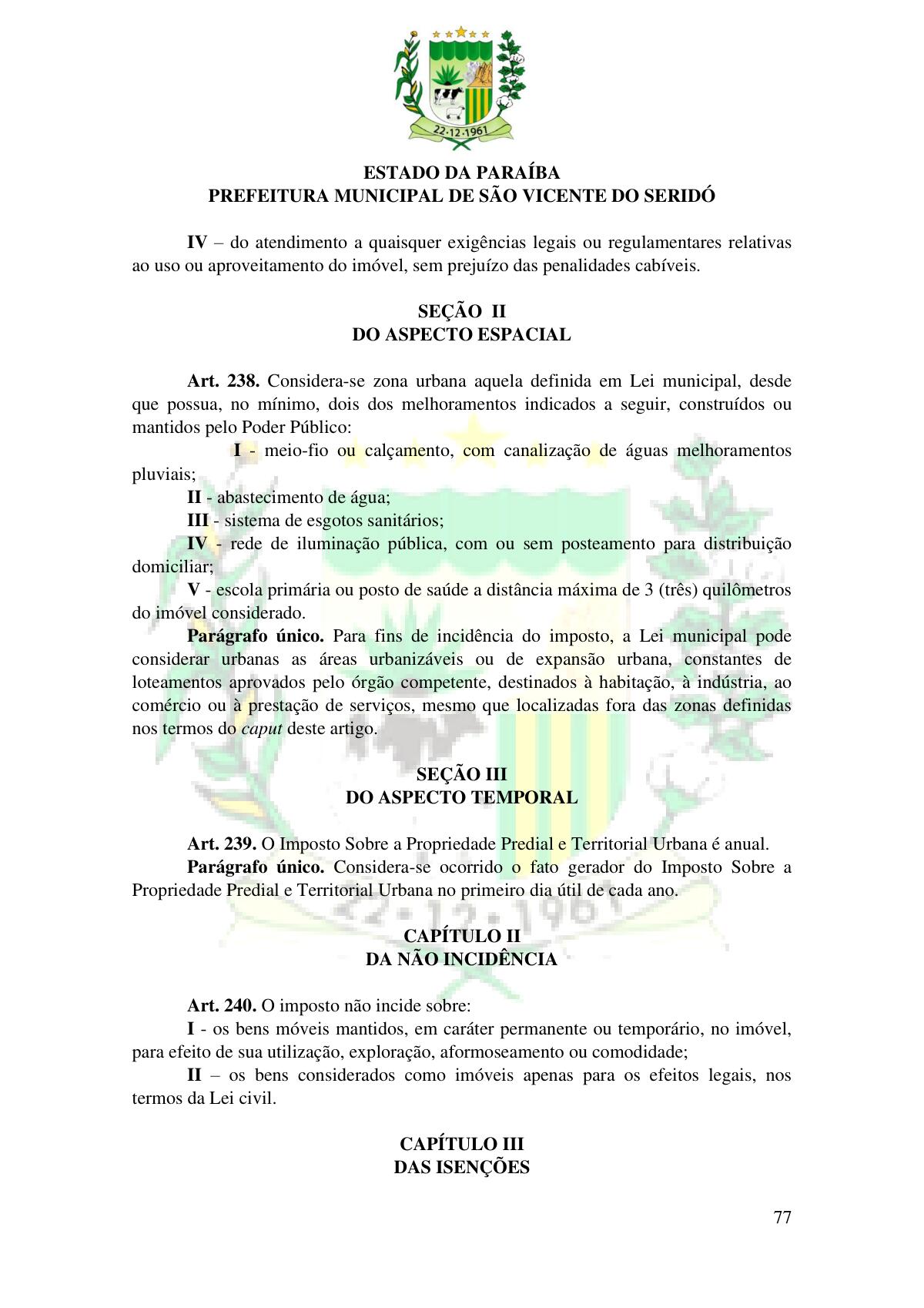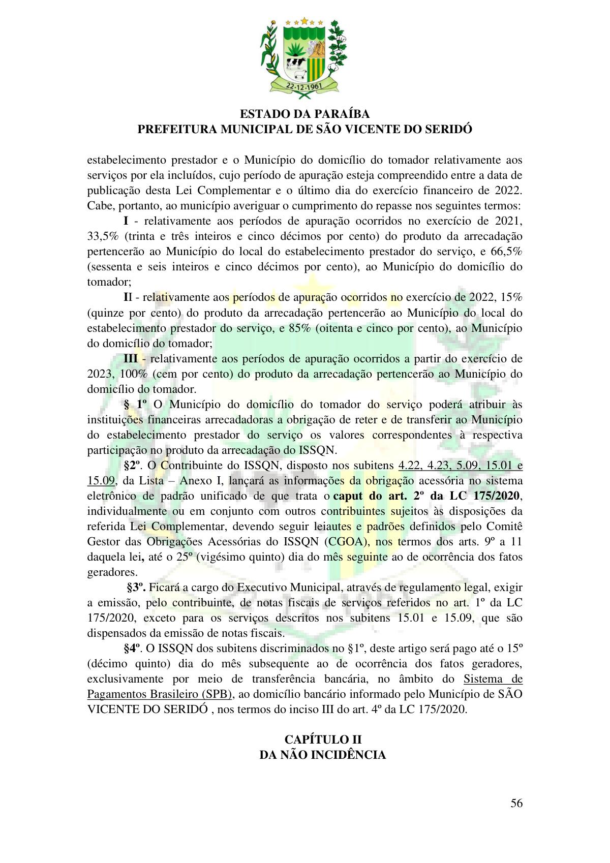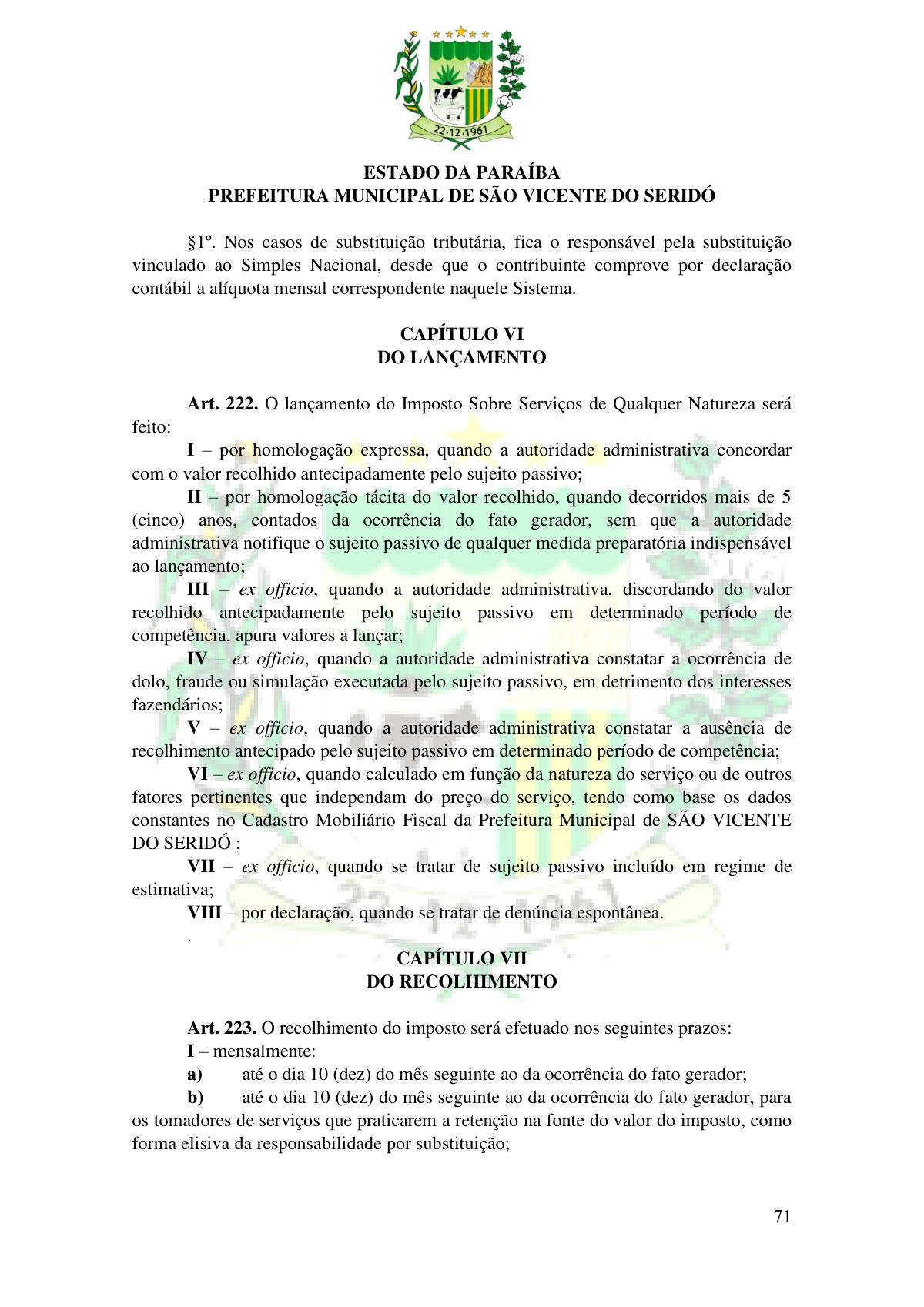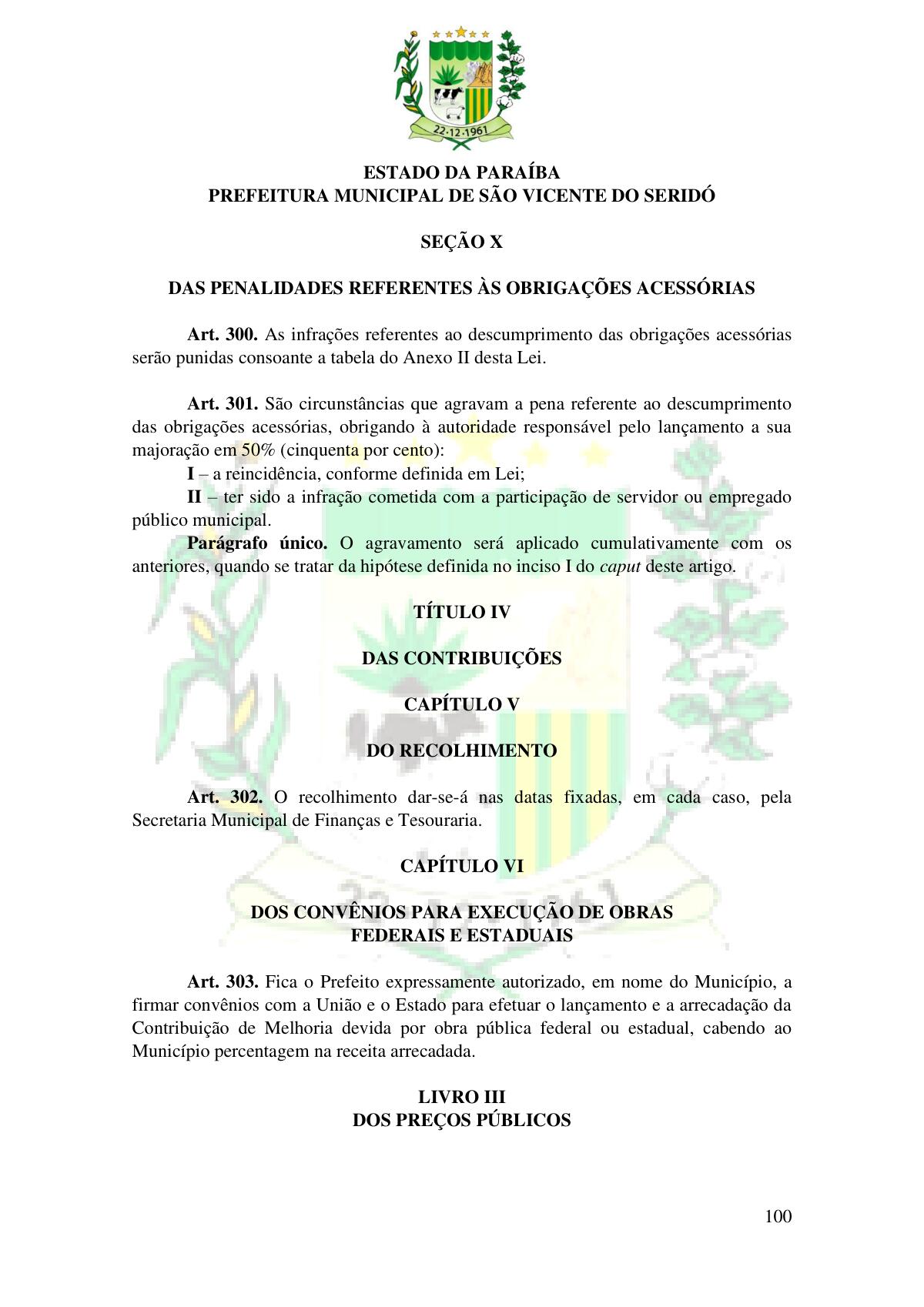 LEI Nº 230/2023 - REVOGA A LEI COMPLEMENTAR Nº 012/1996 E CRIA O NOVO CÓDIGO TRIBUTÁRIO E DE RENDAS DO MUNICÍPIO DE SÃO VICENTE DO SERIDÓ - PB E DÁ OUTRAS PROVIDÊNCIAS.