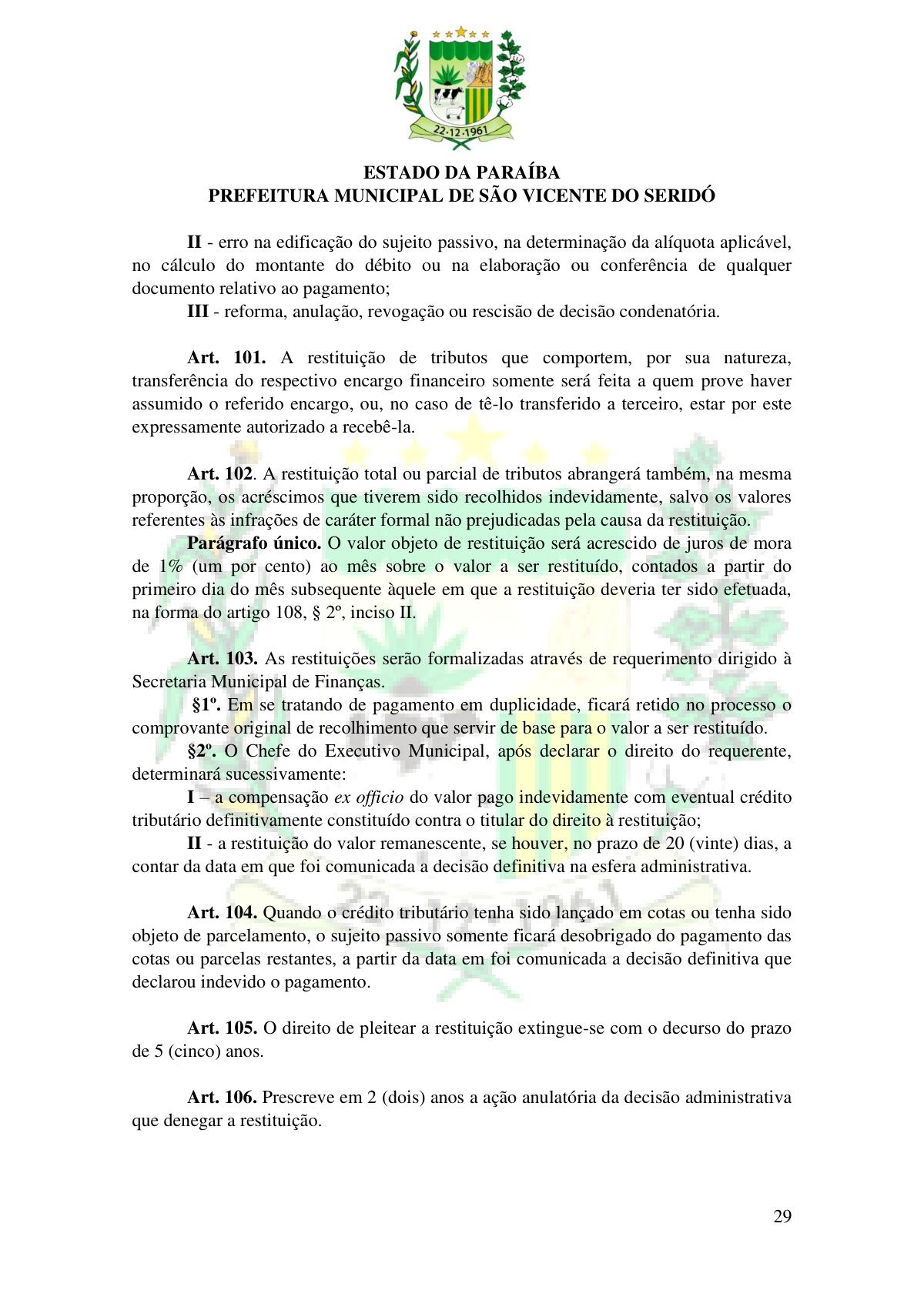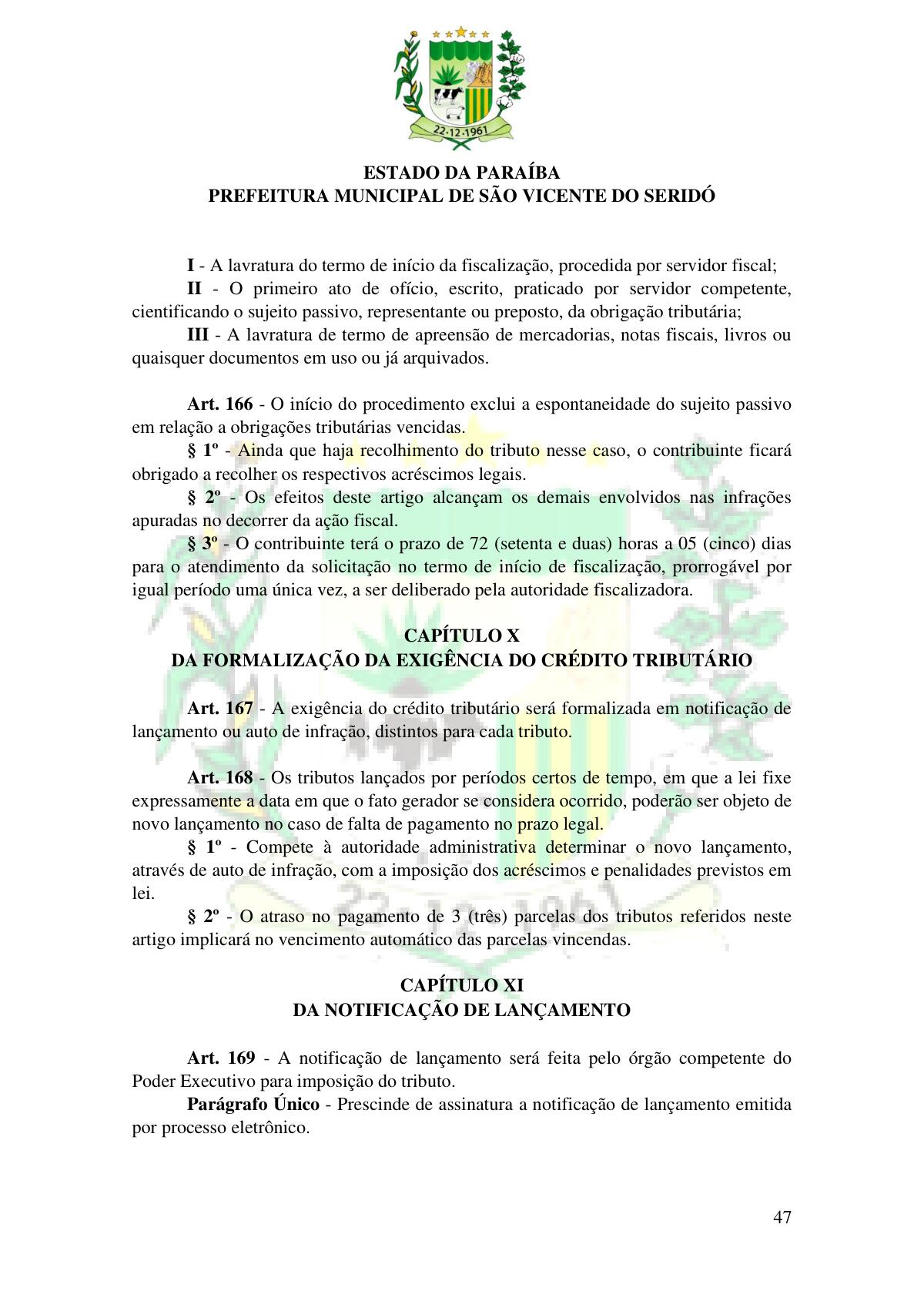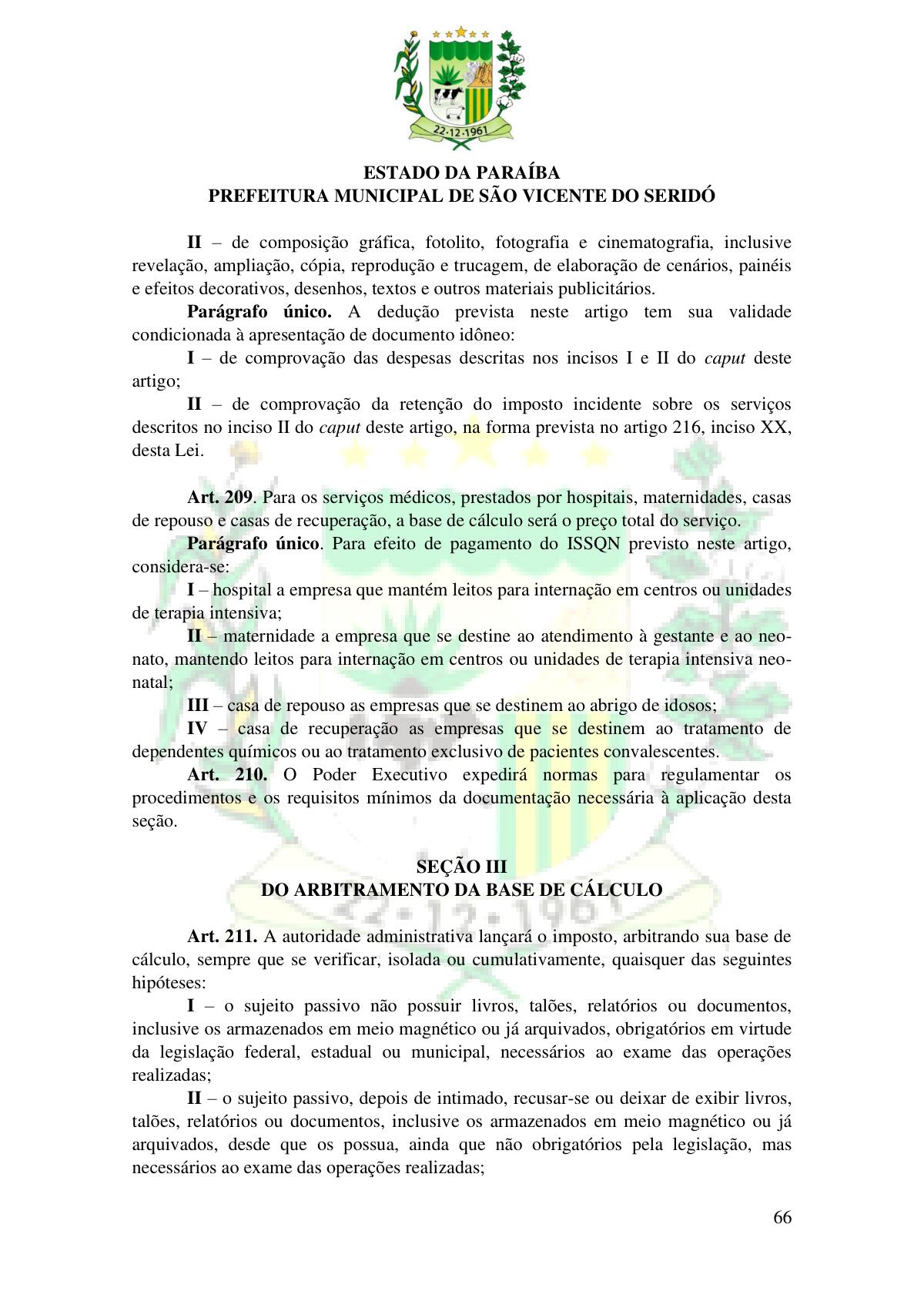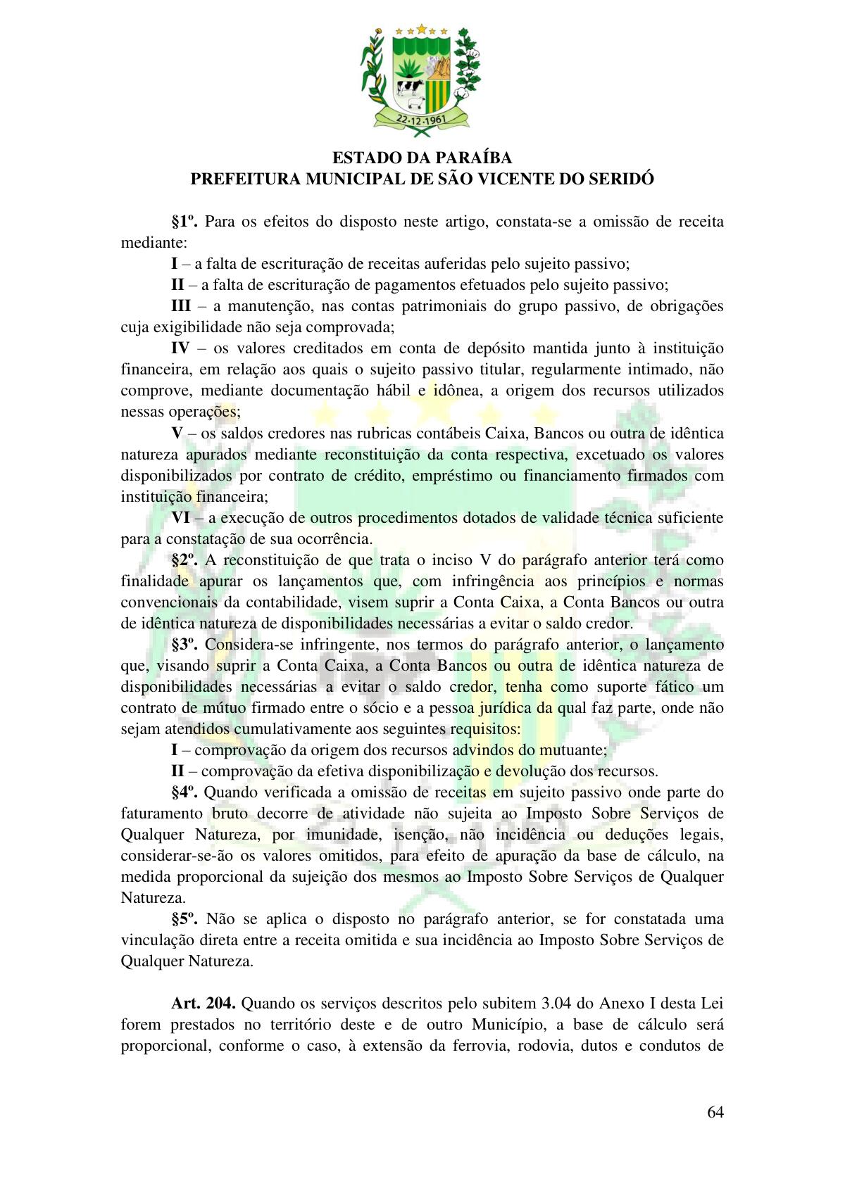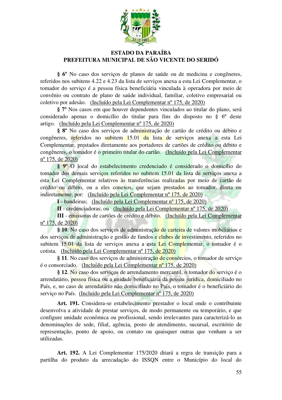 LEI Nº 230/2023 - REVOGA A LEI COMPLEMENTAR Nº 012/1996 E CRIA O NOVO CÓDIGO TRIBUTÁRIO E DE RENDAS DO MUNICÍPIO DE SÃO VICENTE DO SERIDÓ - PB E DÁ OUTRAS PROVIDÊNCIAS.