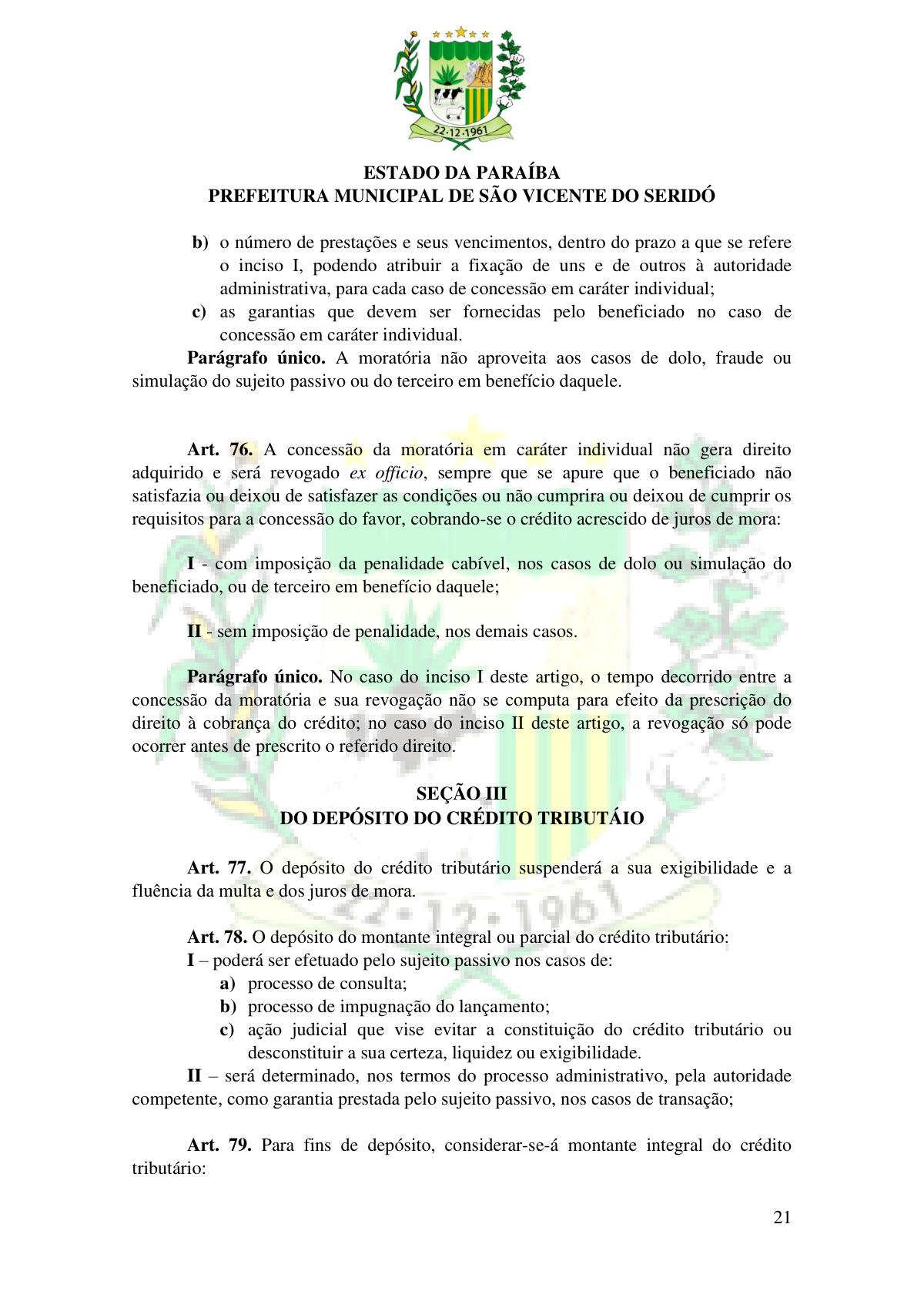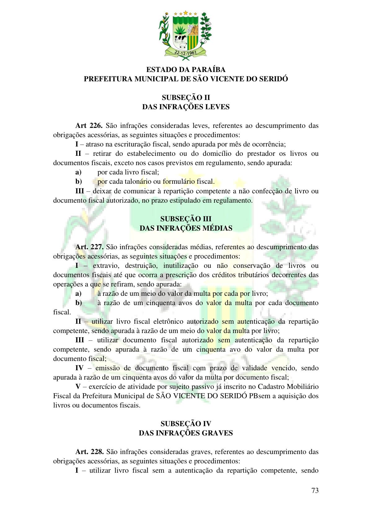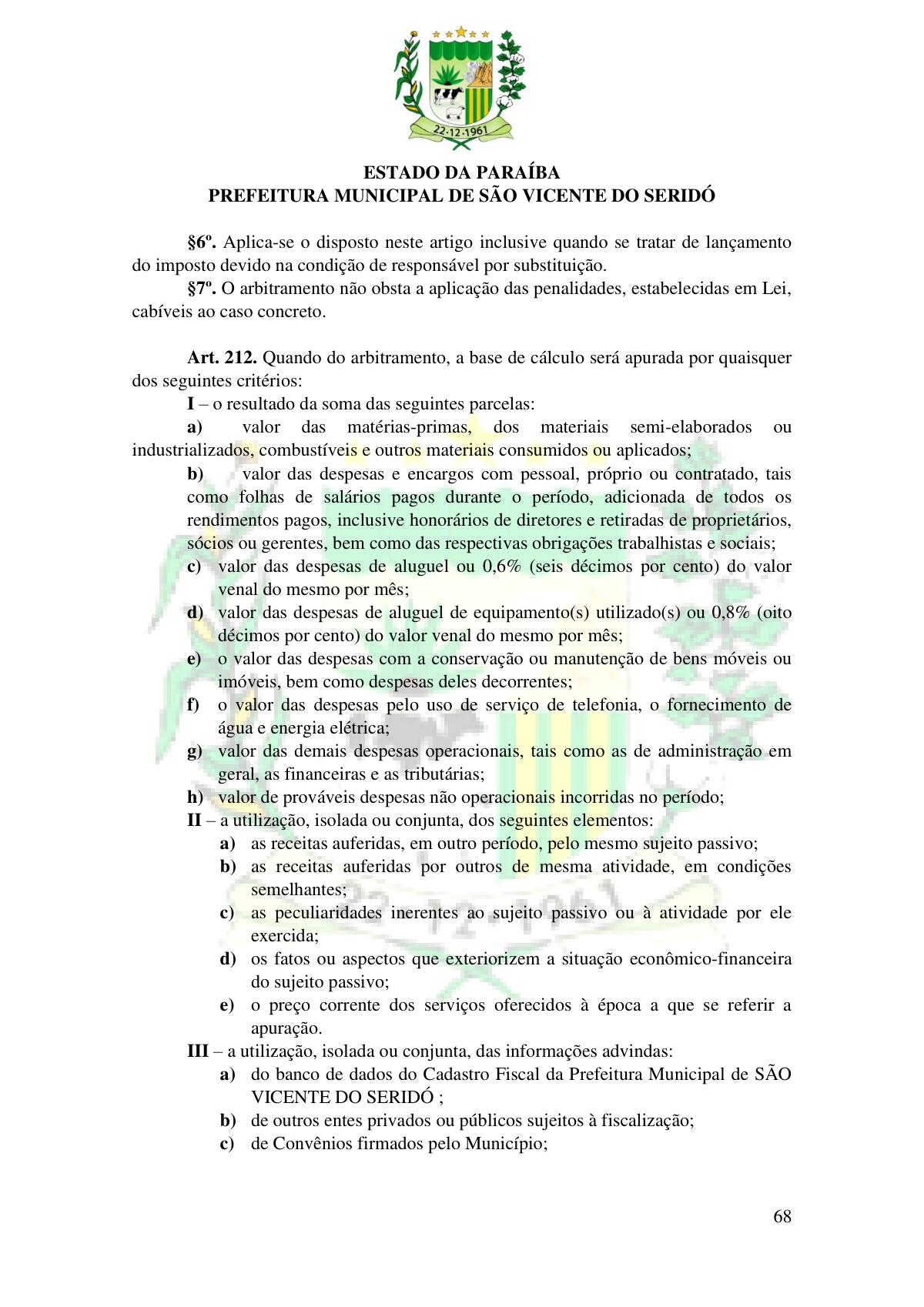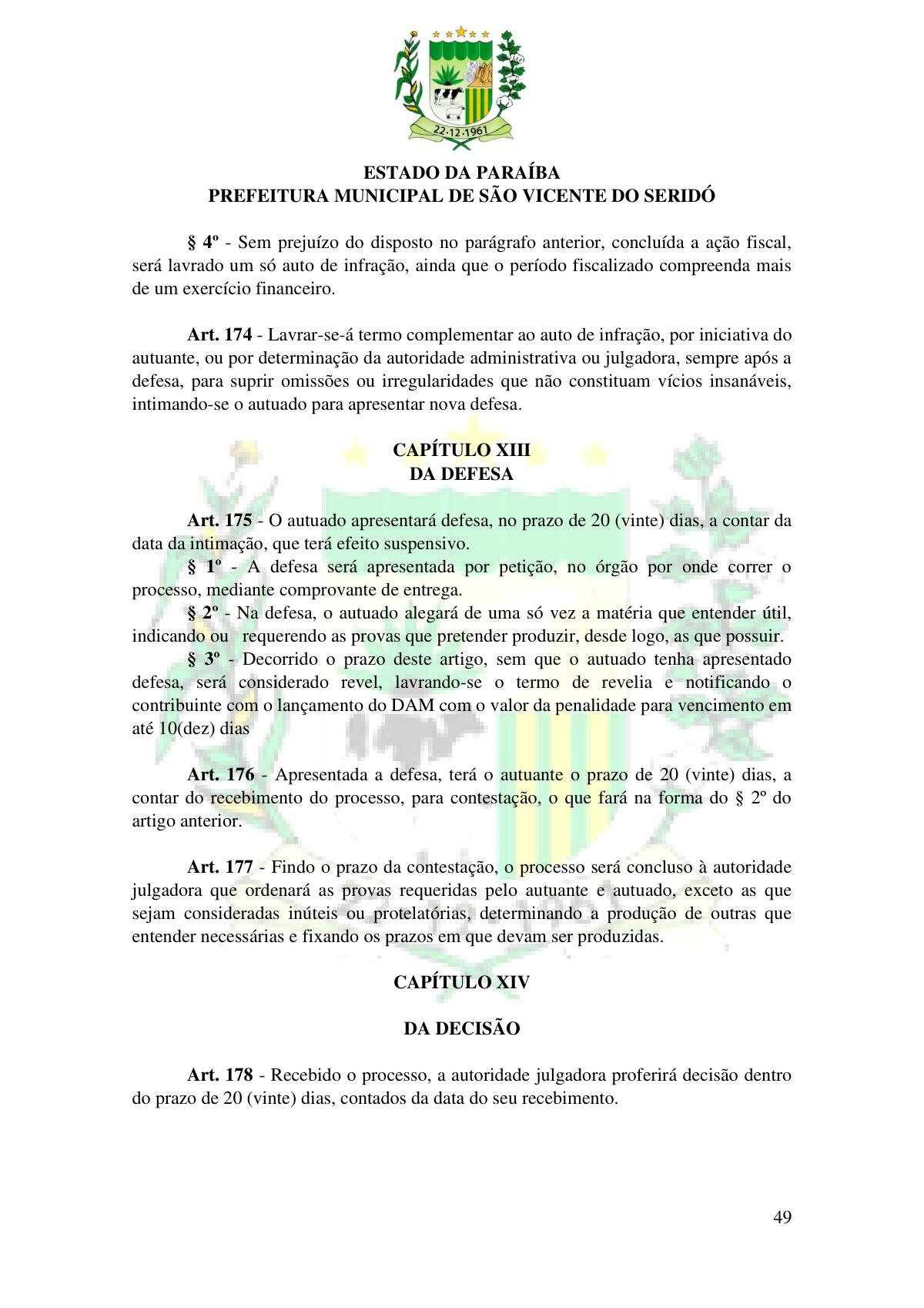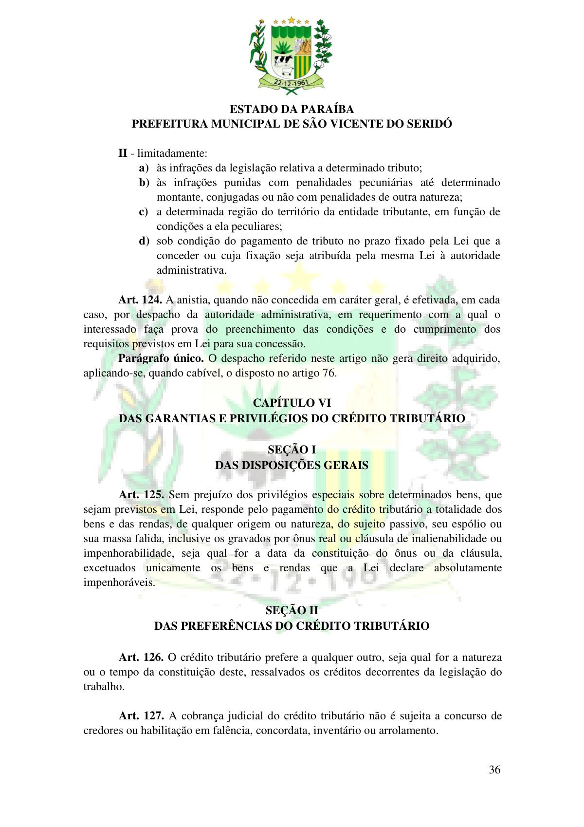 LEI Nº 230/2023 - REVOGA A LEI COMPLEMENTAR Nº 012/1996 E CRIA O NOVO CÓDIGO TRIBUTÁRIO E DE RENDAS DO MUNICÍPIO DE SÃO VICENTE DO SERIDÓ - PB E DÁ OUTRAS PROVIDÊNCIAS.