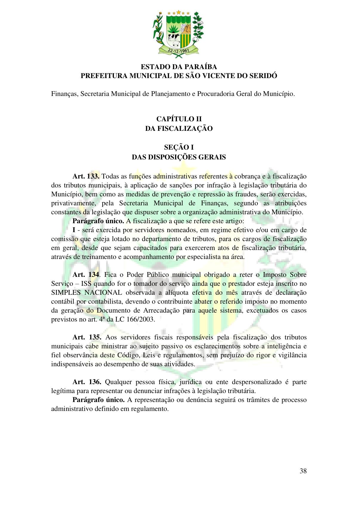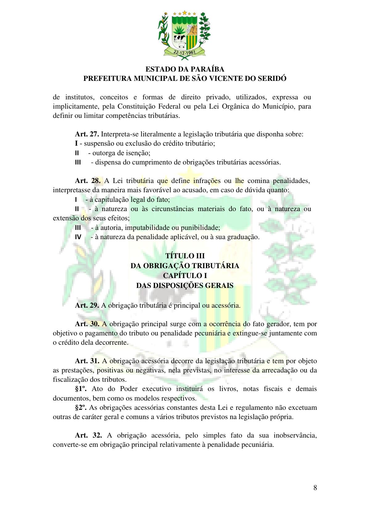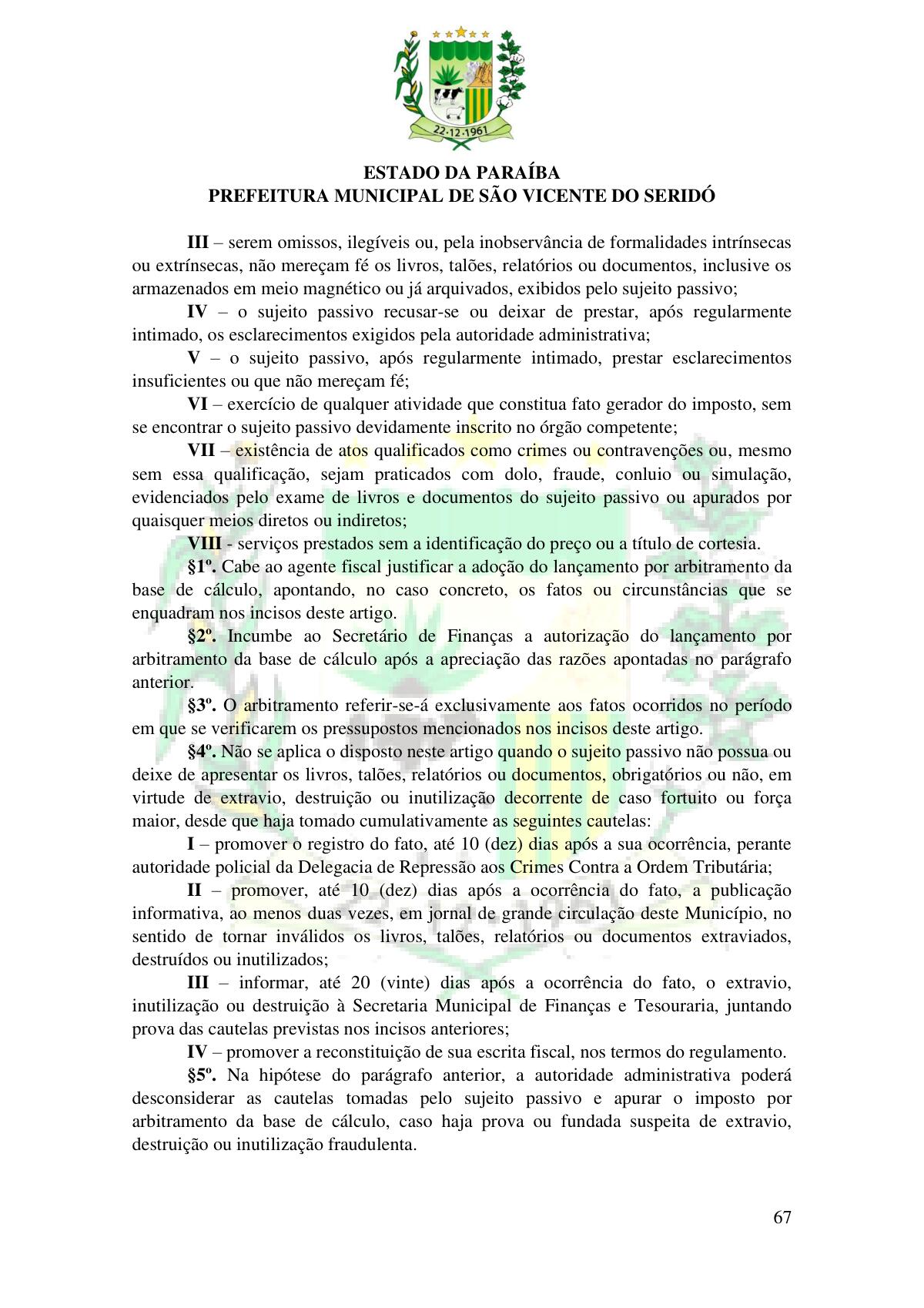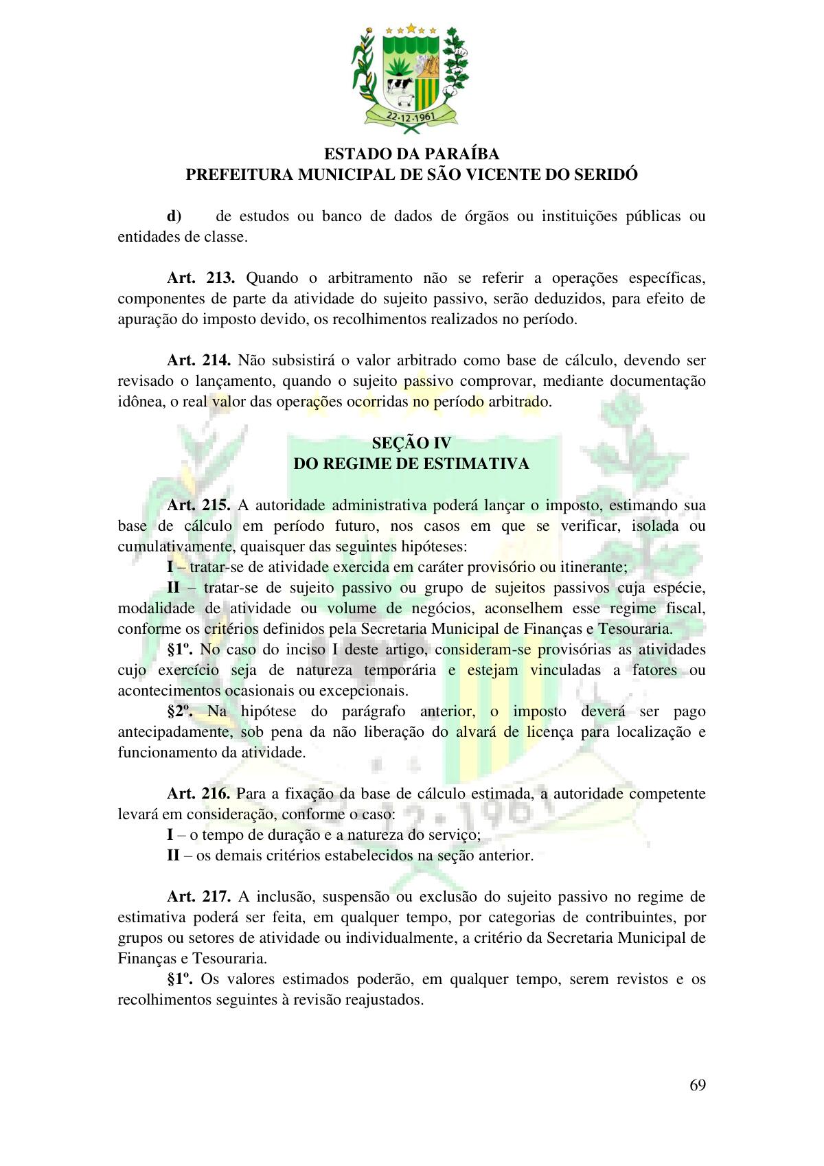 LEI Nº 230/2023 - REVOGA A LEI COMPLEMENTAR Nº 012/1996 E CRIA O NOVO CÓDIGO TRIBUTÁRIO E DE RENDAS DO MUNICÍPIO DE SÃO VICENTE DO SERIDÓ - PB E DÁ OUTRAS PROVIDÊNCIAS.