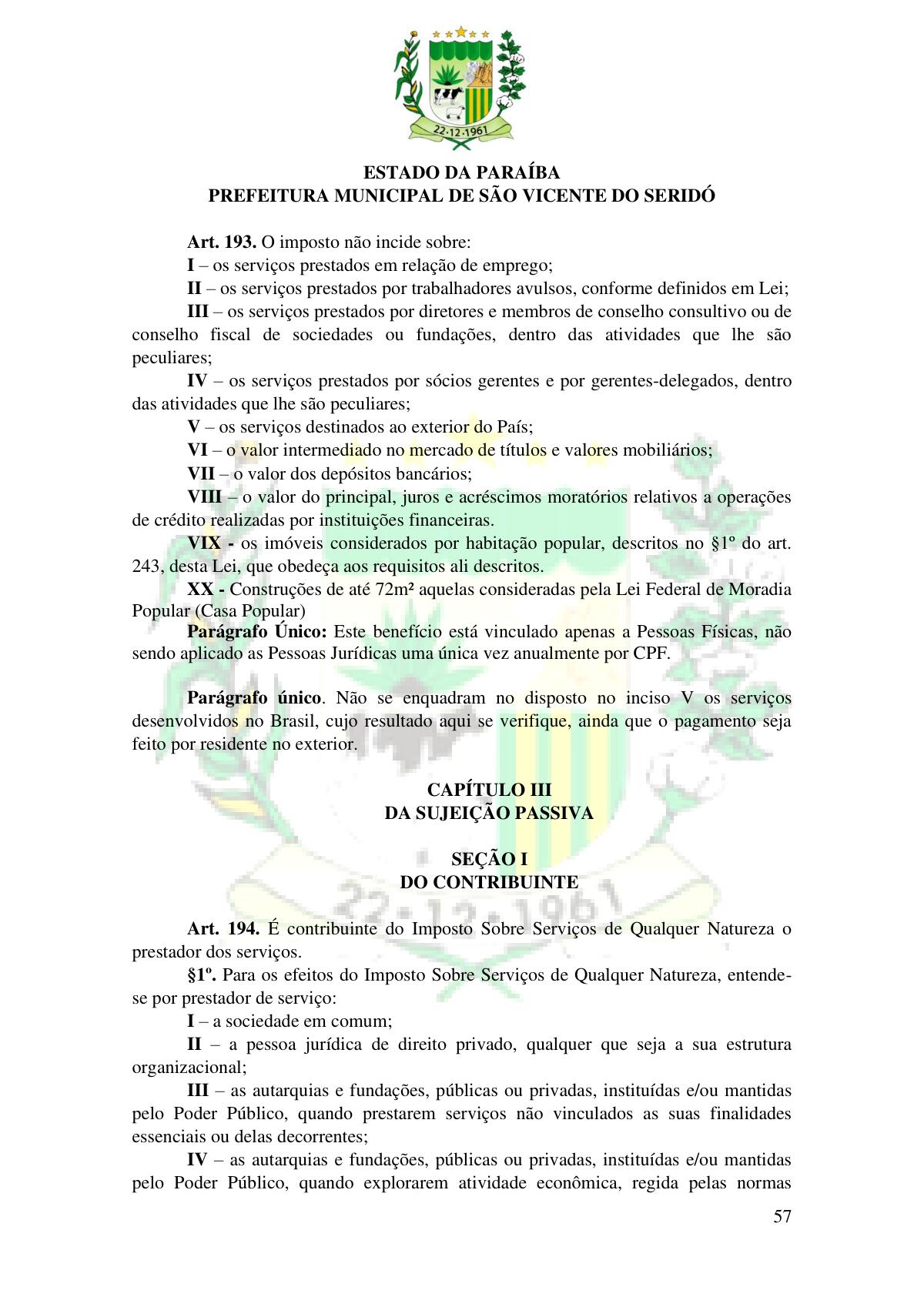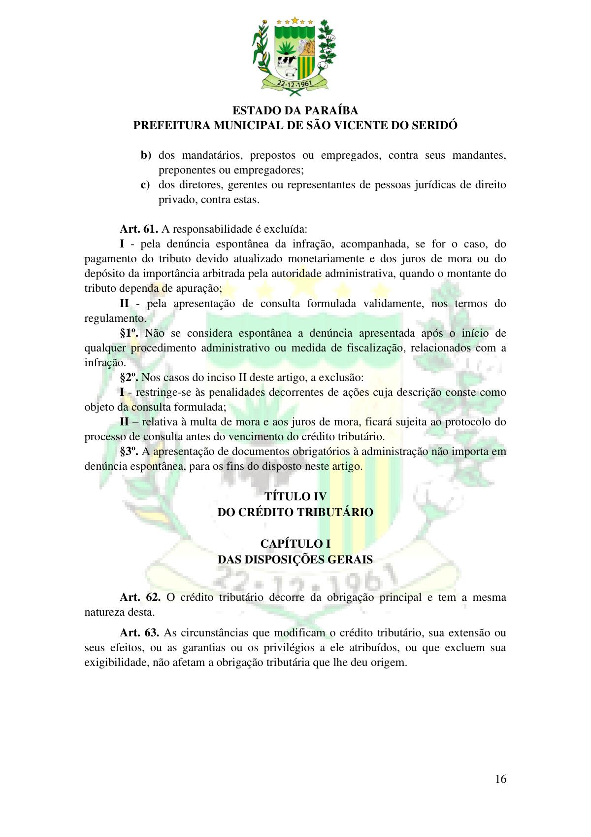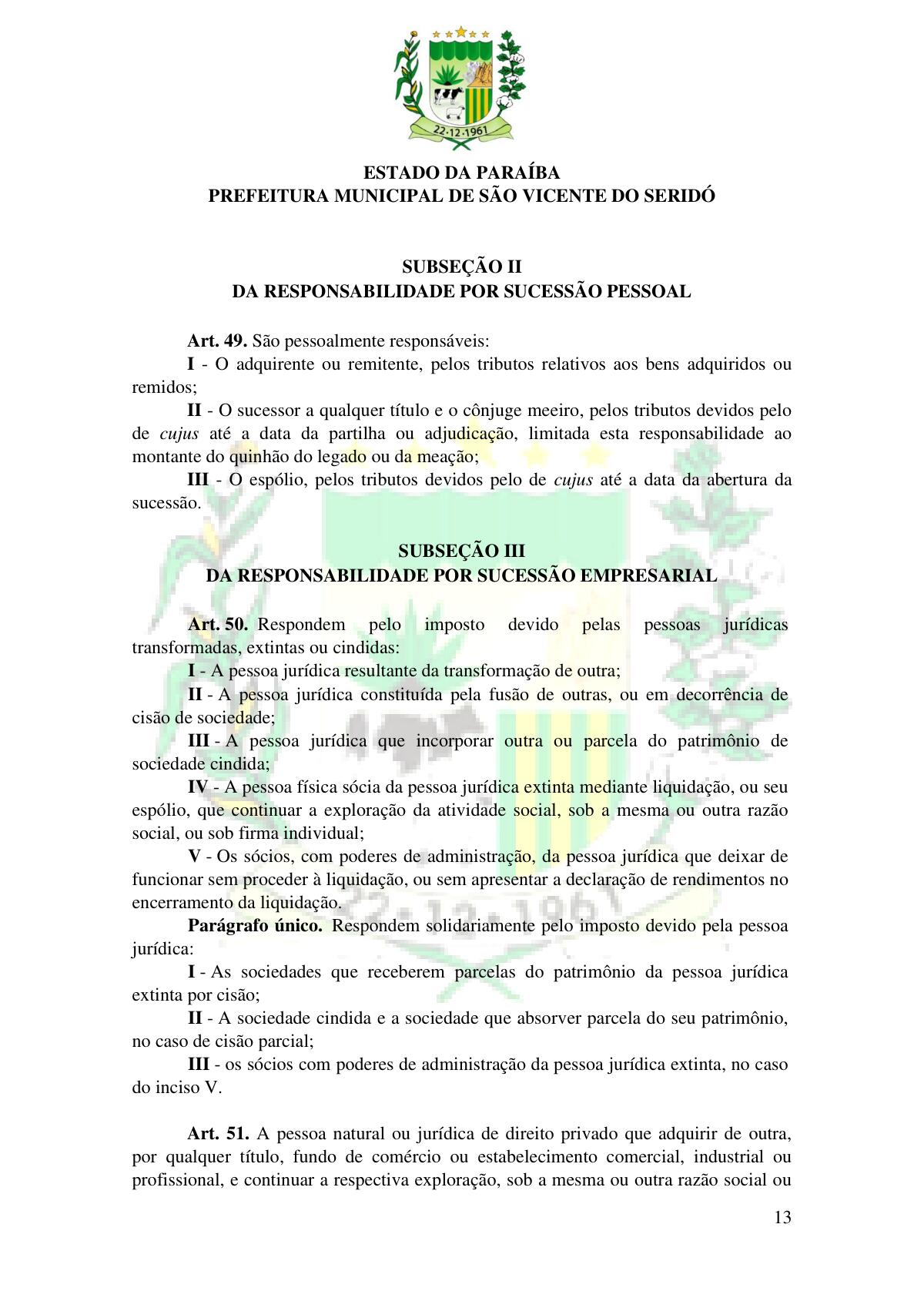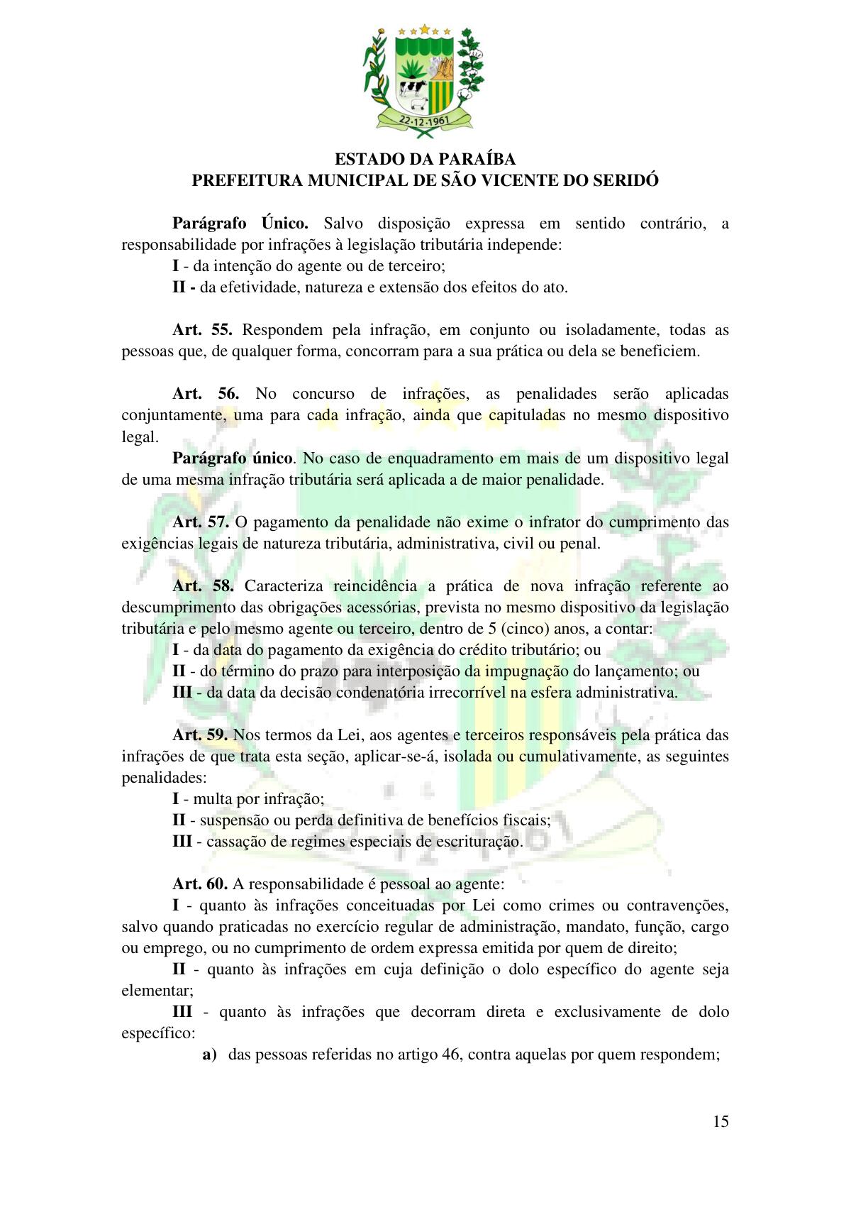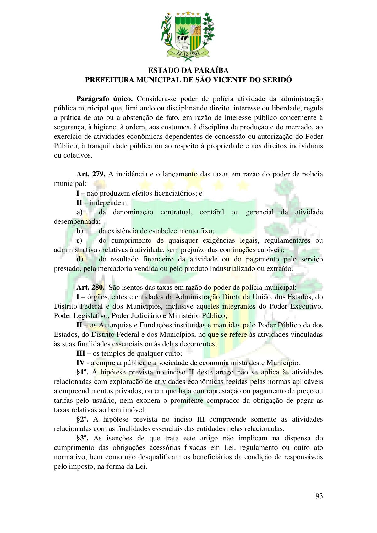 LEI Nº 230/2023 - REVOGA A LEI COMPLEMENTAR Nº 012/1996 E CRIA O NOVO CÓDIGO TRIBUTÁRIO E DE RENDAS DO MUNICÍPIO DE SÃO VICENTE DO SERIDÓ - PB E DÁ OUTRAS PROVIDÊNCIAS.