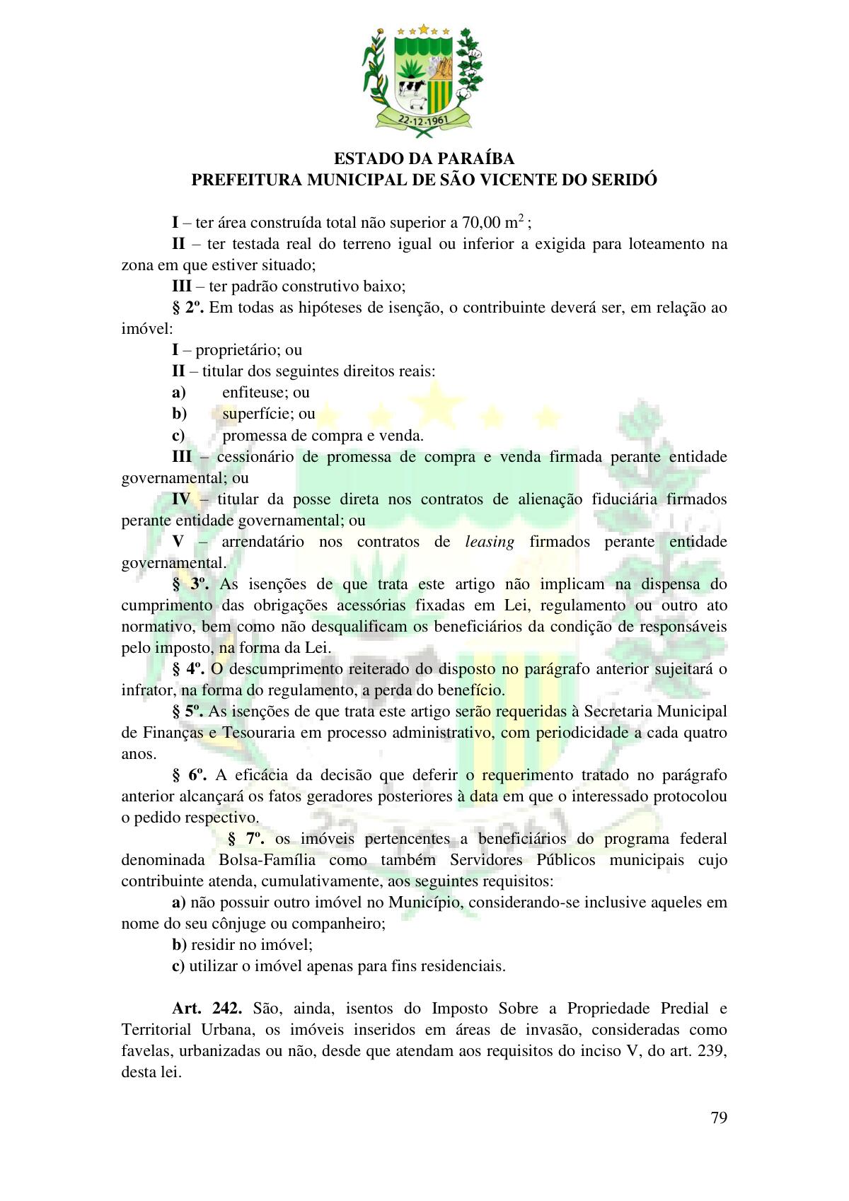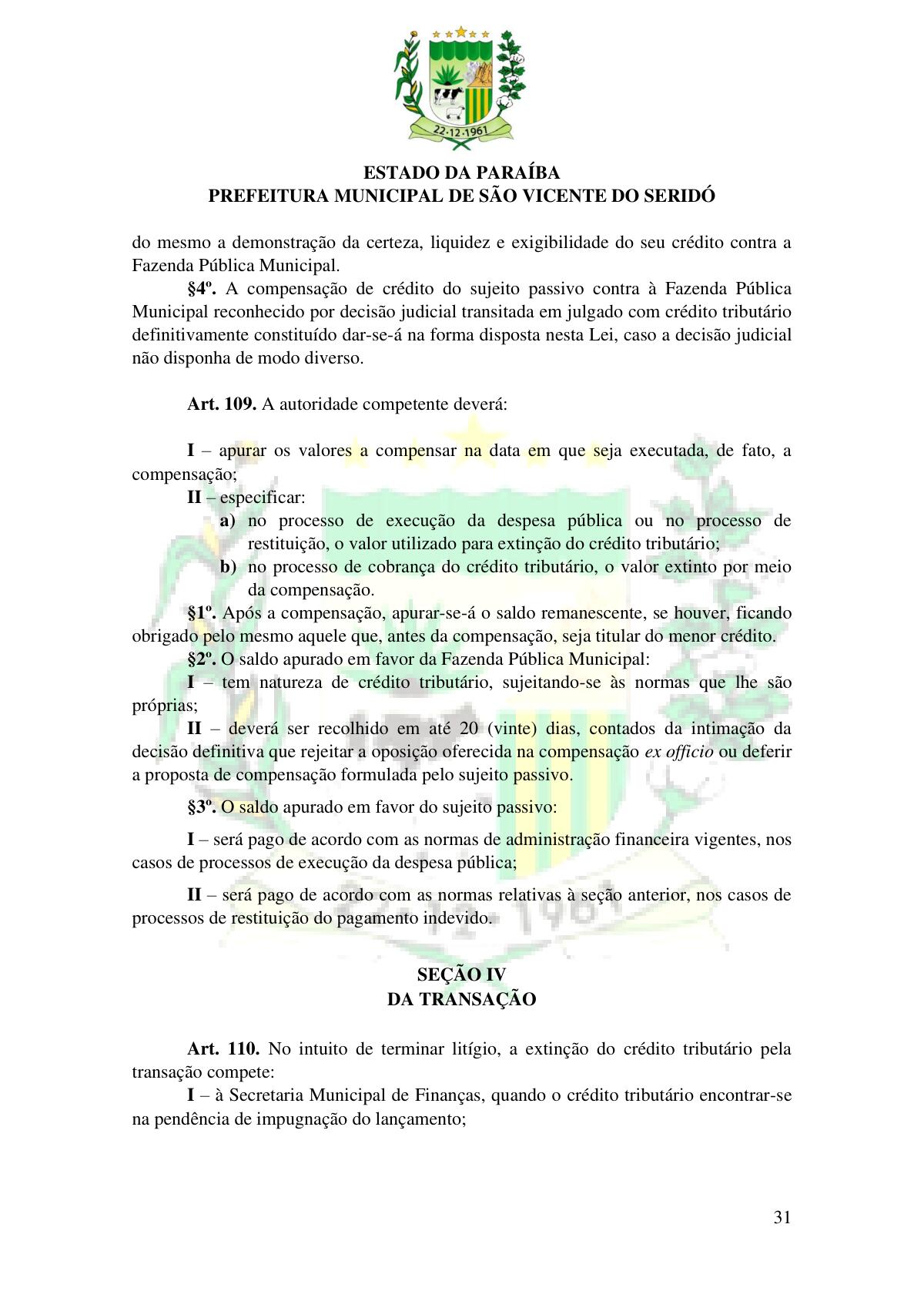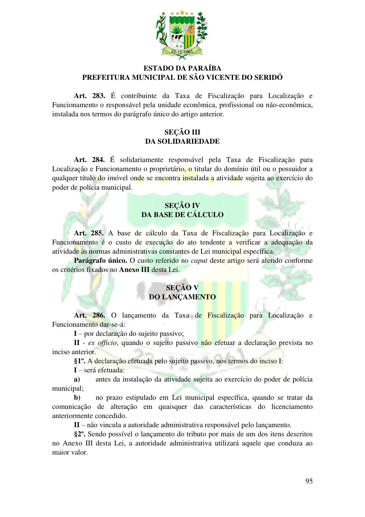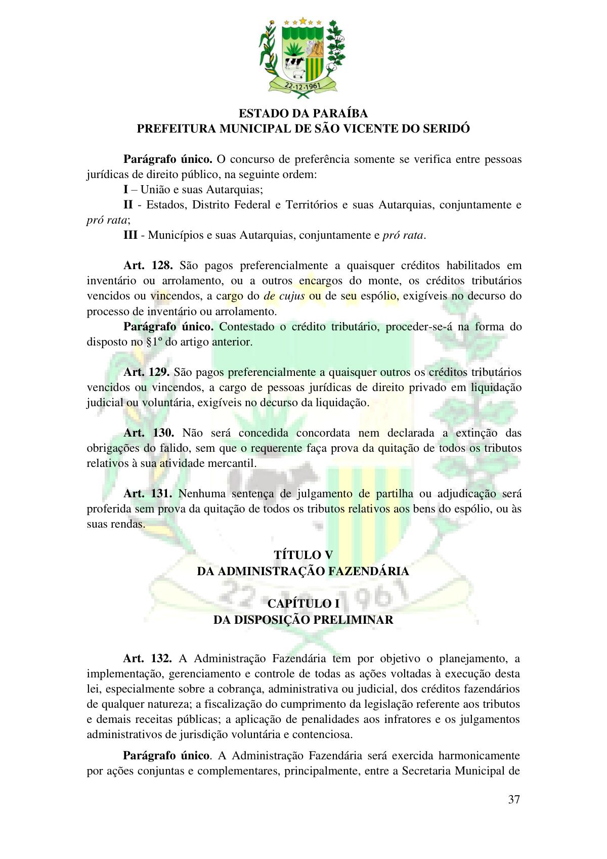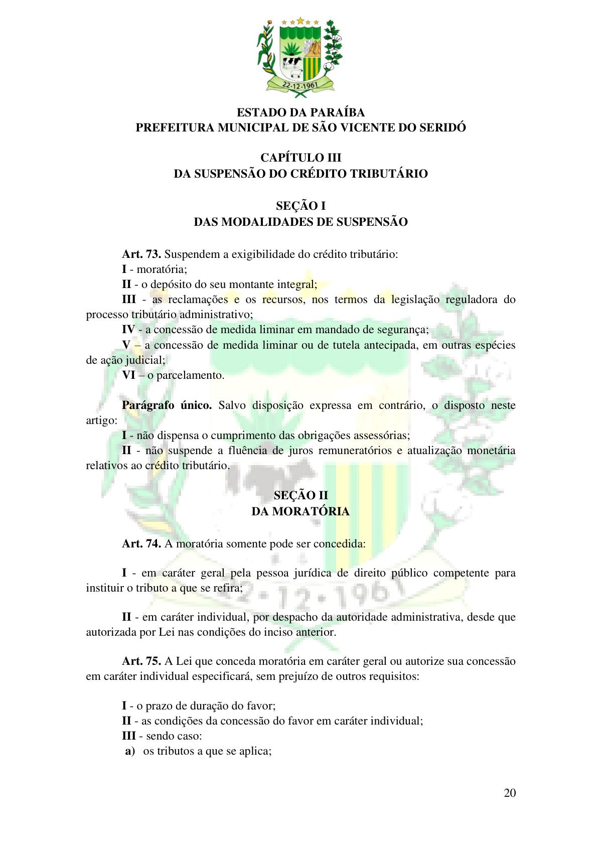 LEI Nº 230/2023 - REVOGA A LEI COMPLEMENTAR Nº 012/1996 E CRIA O NOVO CÓDIGO TRIBUTÁRIO E DE RENDAS DO MUNICÍPIO DE SÃO VICENTE DO SERIDÓ - PB E DÁ OUTRAS PROVIDÊNCIAS.