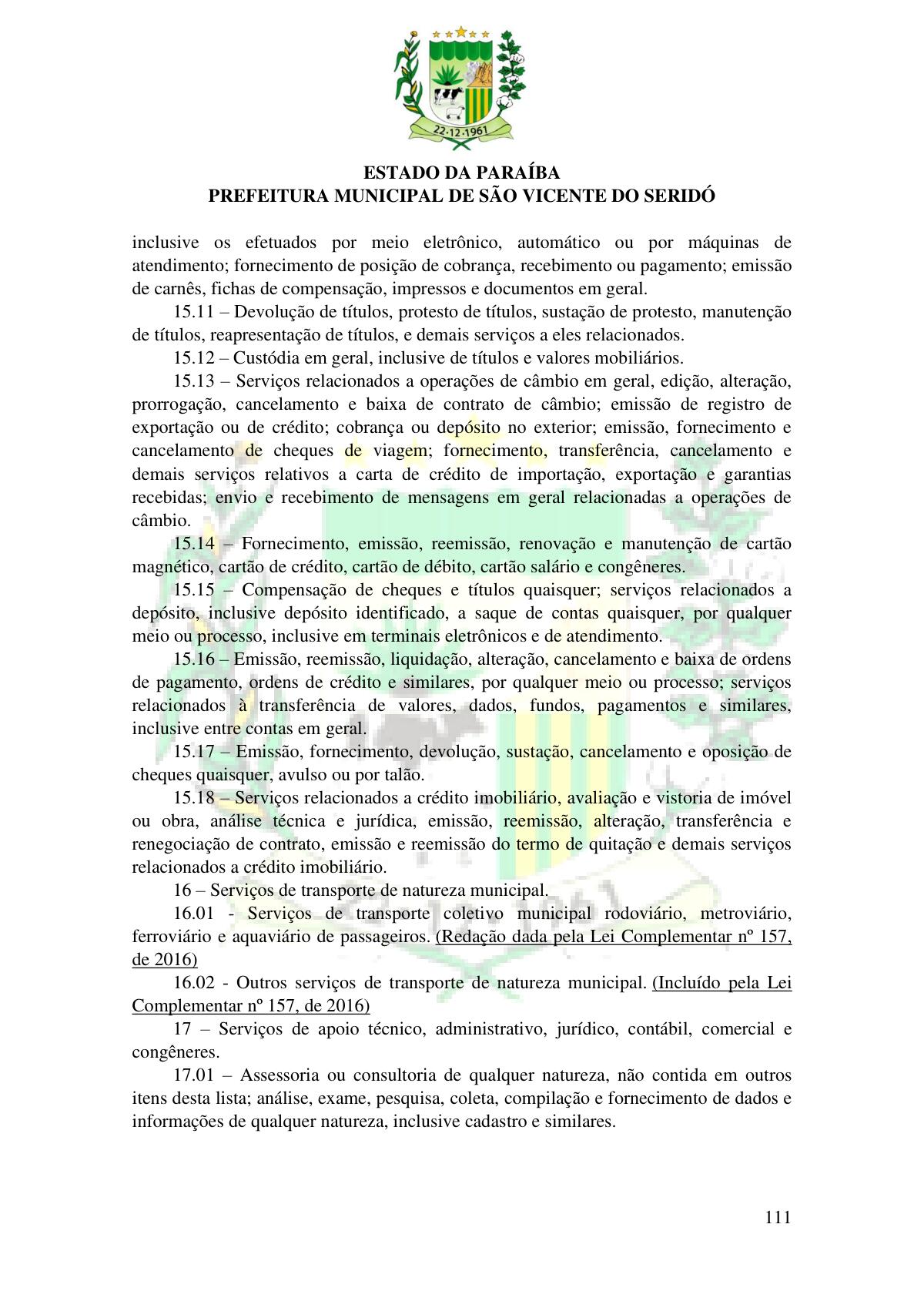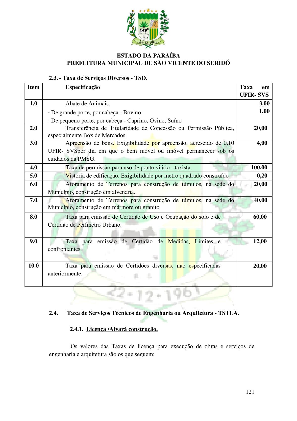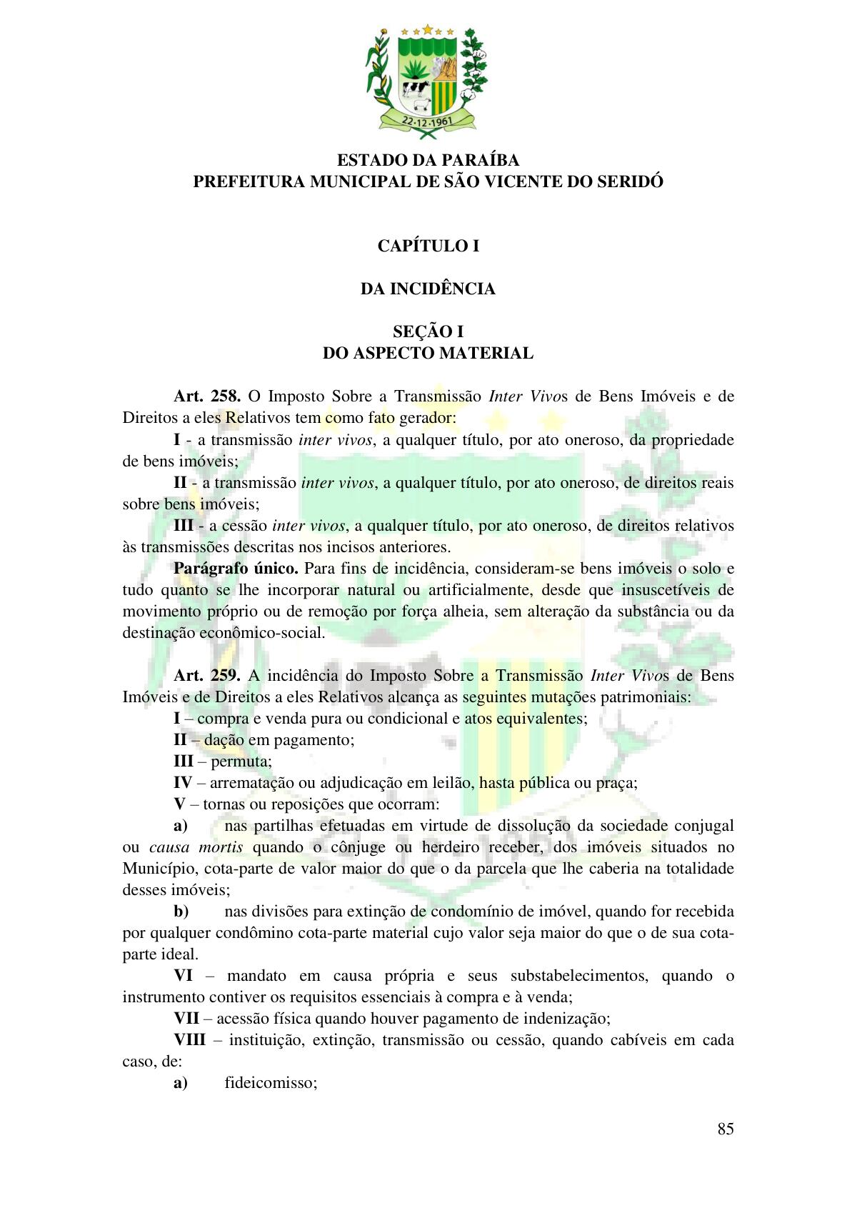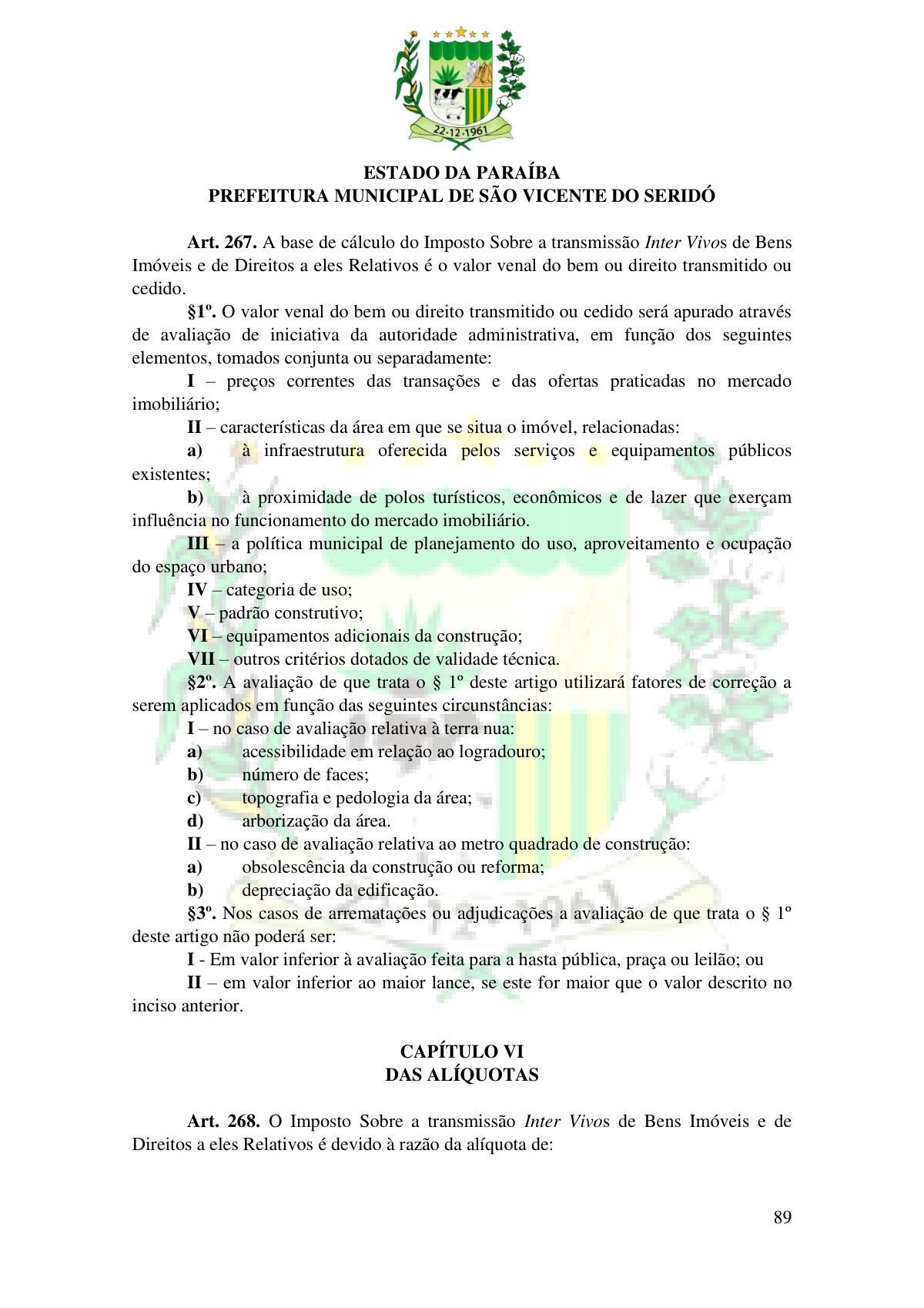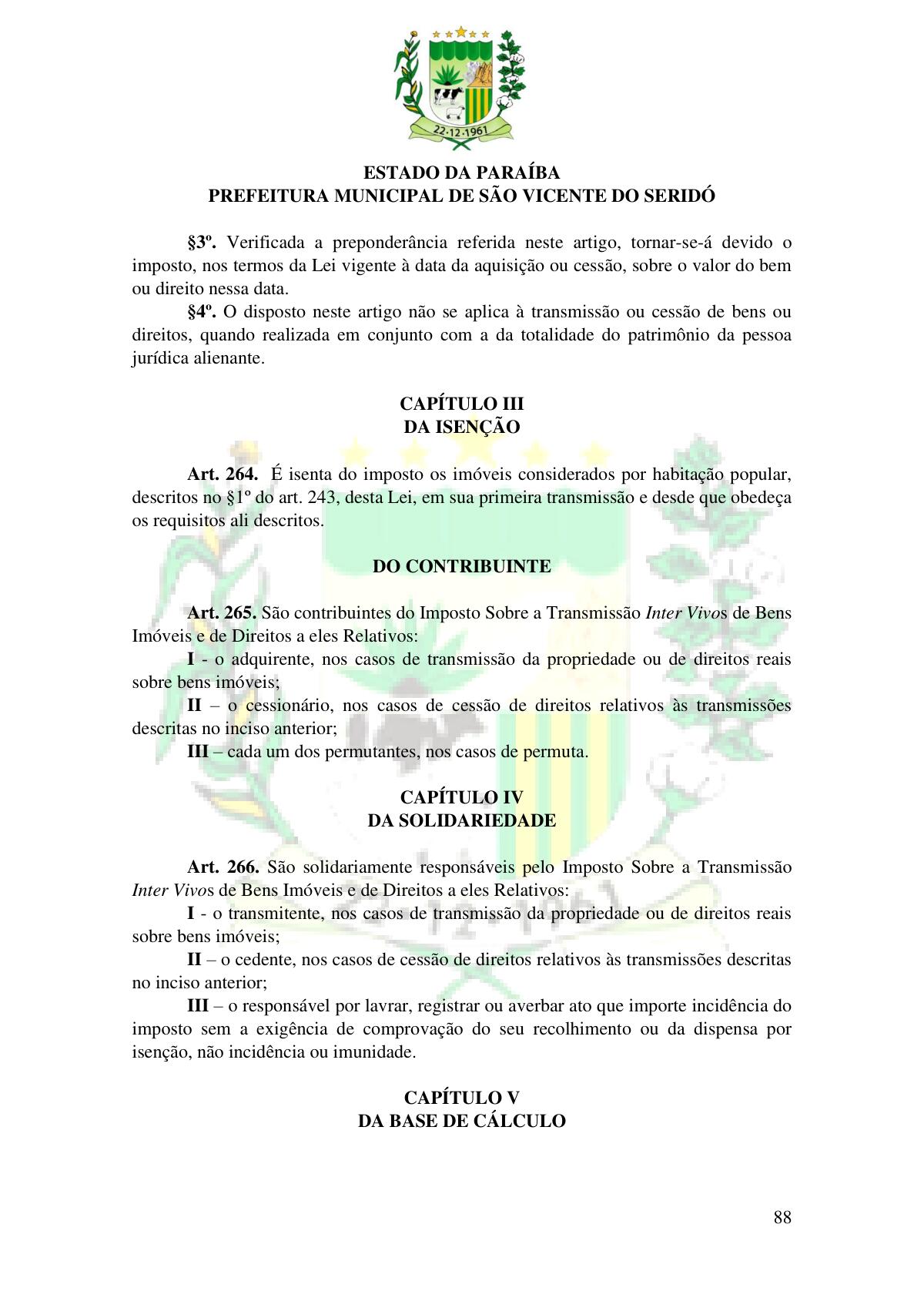 LEI Nº 230/2023 - REVOGA A LEI COMPLEMENTAR Nº 012/1996 E CRIA O NOVO CÓDIGO TRIBUTÁRIO E DE RENDAS DO MUNICÍPIO DE SÃO VICENTE DO SERIDÓ - PB E DÁ OUTRAS PROVIDÊNCIAS.