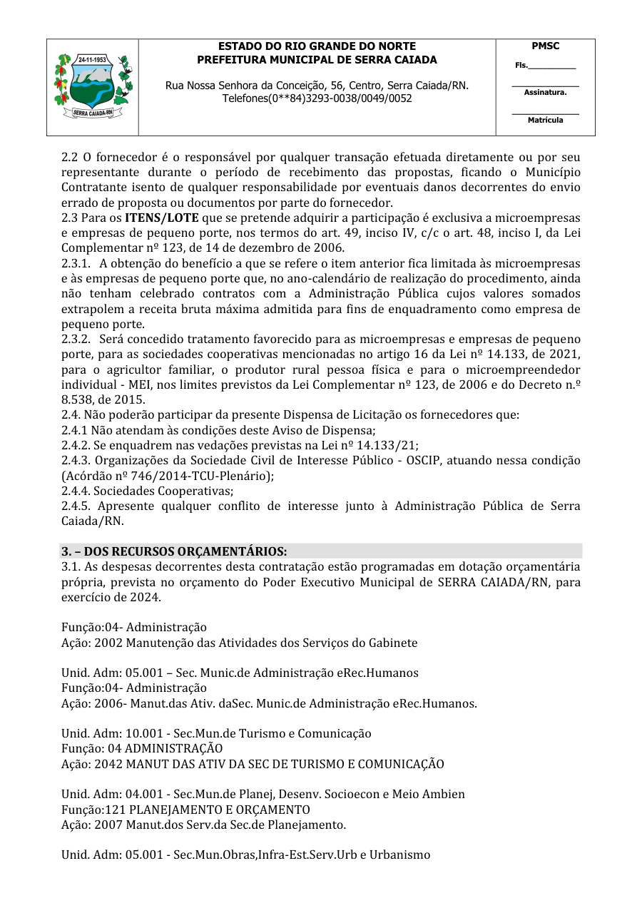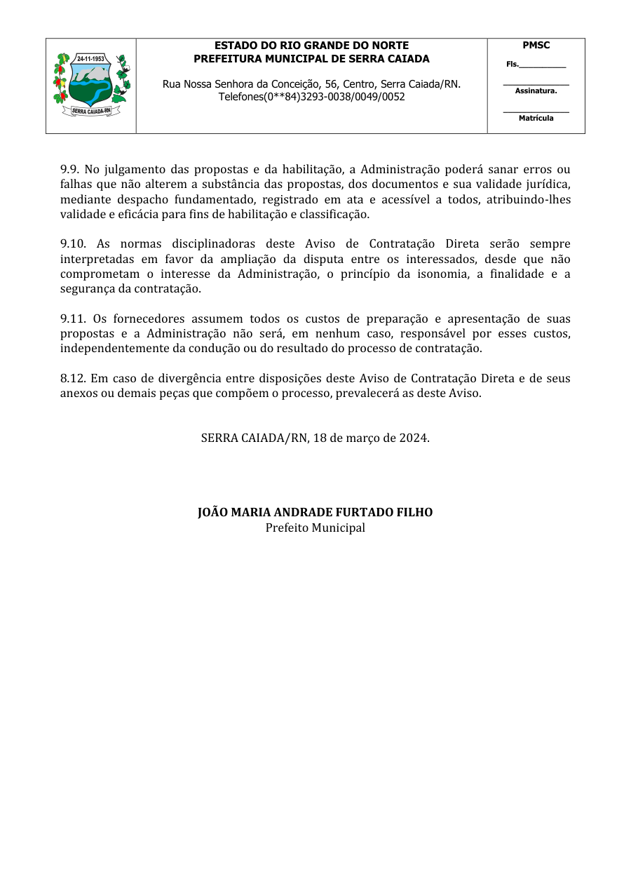 Conforme MP n° 2.200-2 de 24/08/2001, que institui a infraestrutura de chaves Públicas. Matéria Publicada no Diário Oficial do Município de Serra Caiada/RN no dia - Edição 00214.