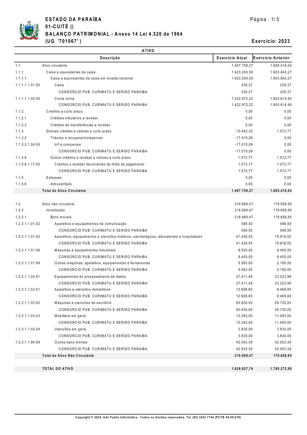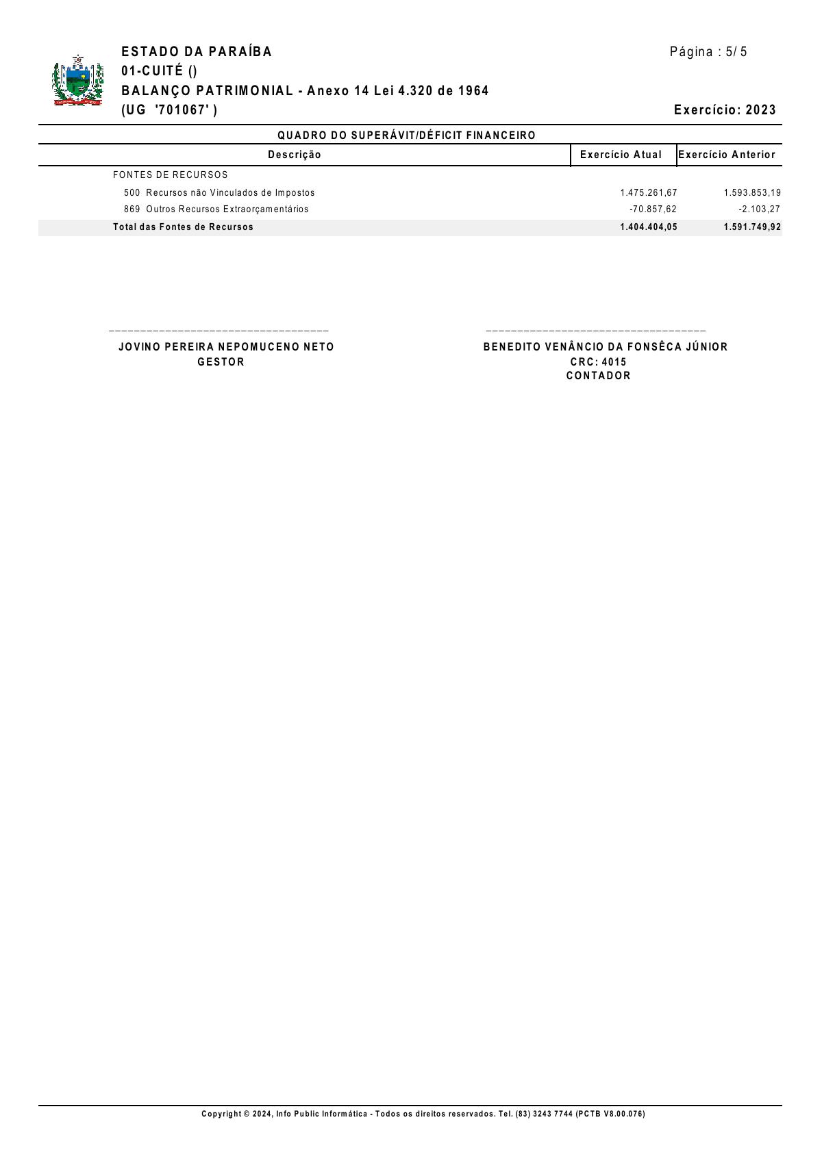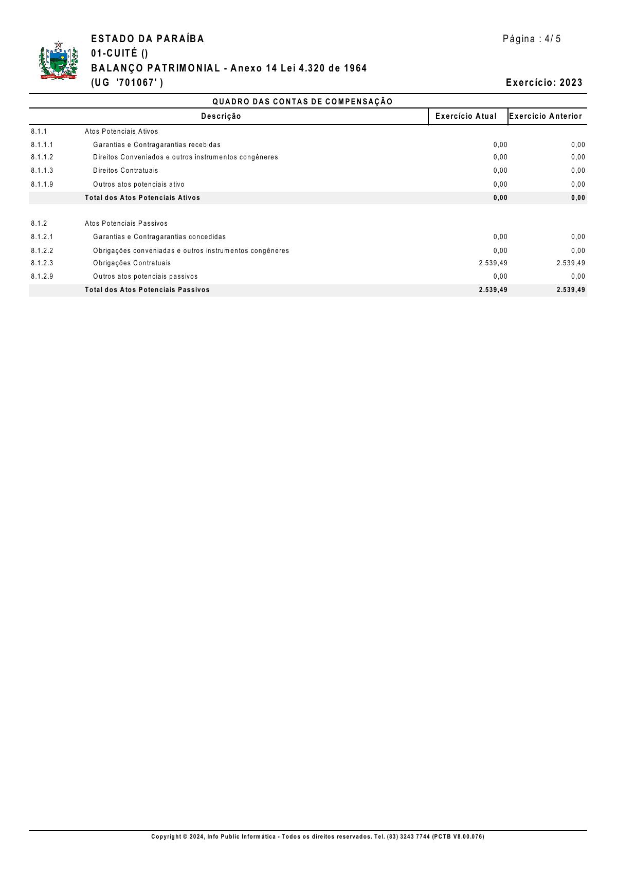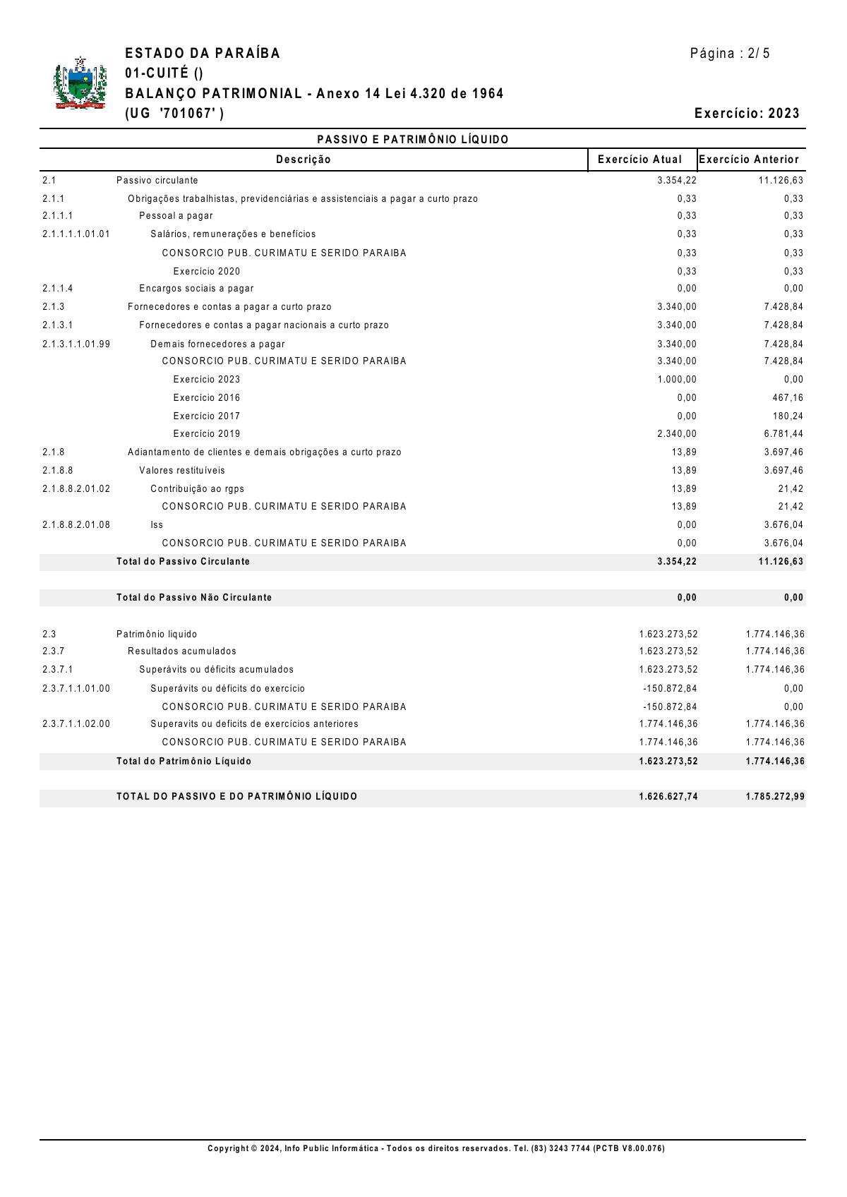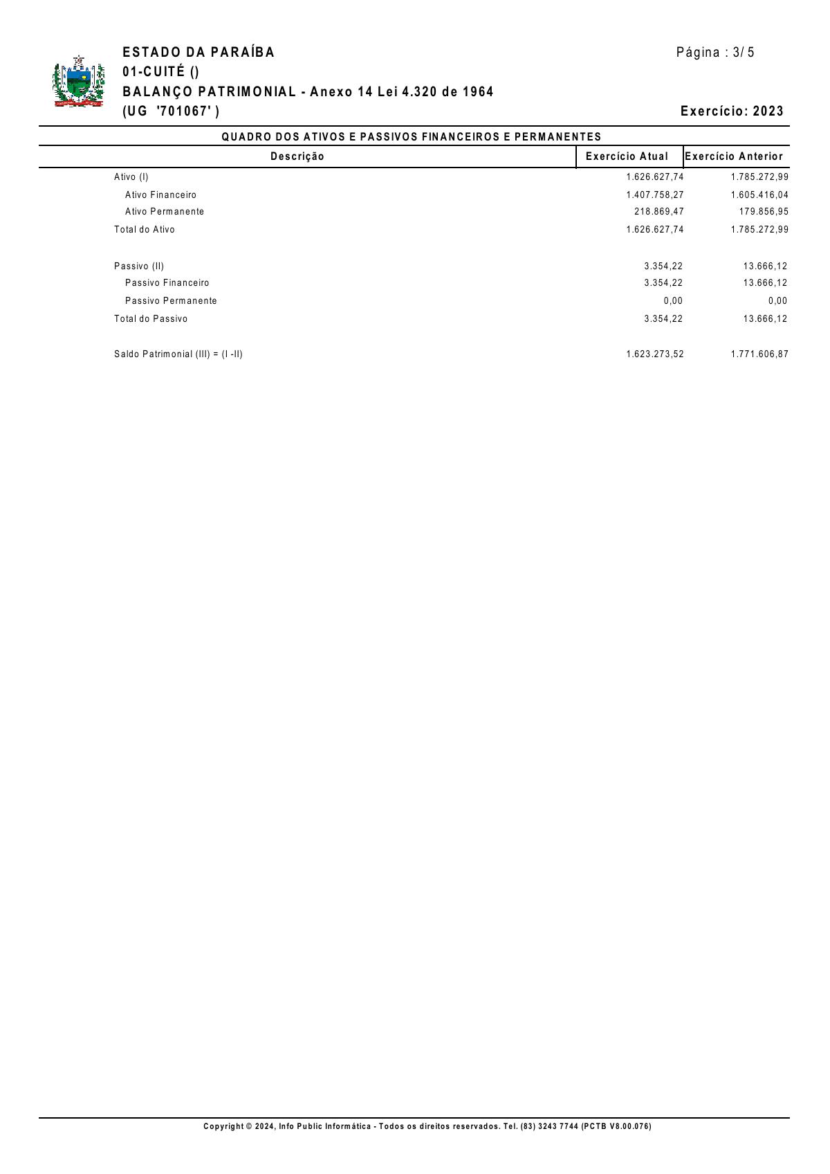 BALANÇO PATRIMONIAL - ANEXO 14 - LEI 4320 DE 1964