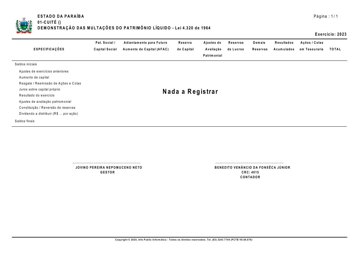 DEMONSTRAÇÃO DAS MUNTAÇÕES DO PATRIMÔNIO LÍQUIDO - LEI 4320 DE 1964