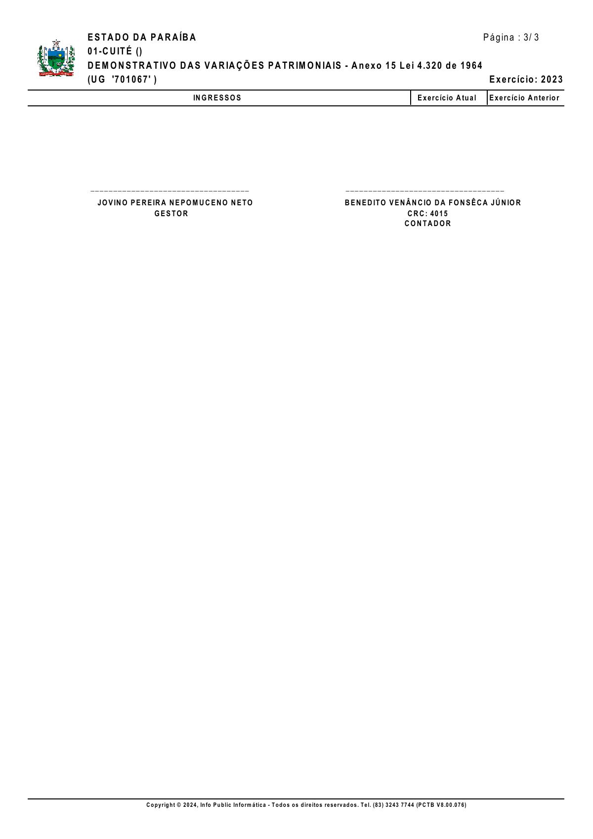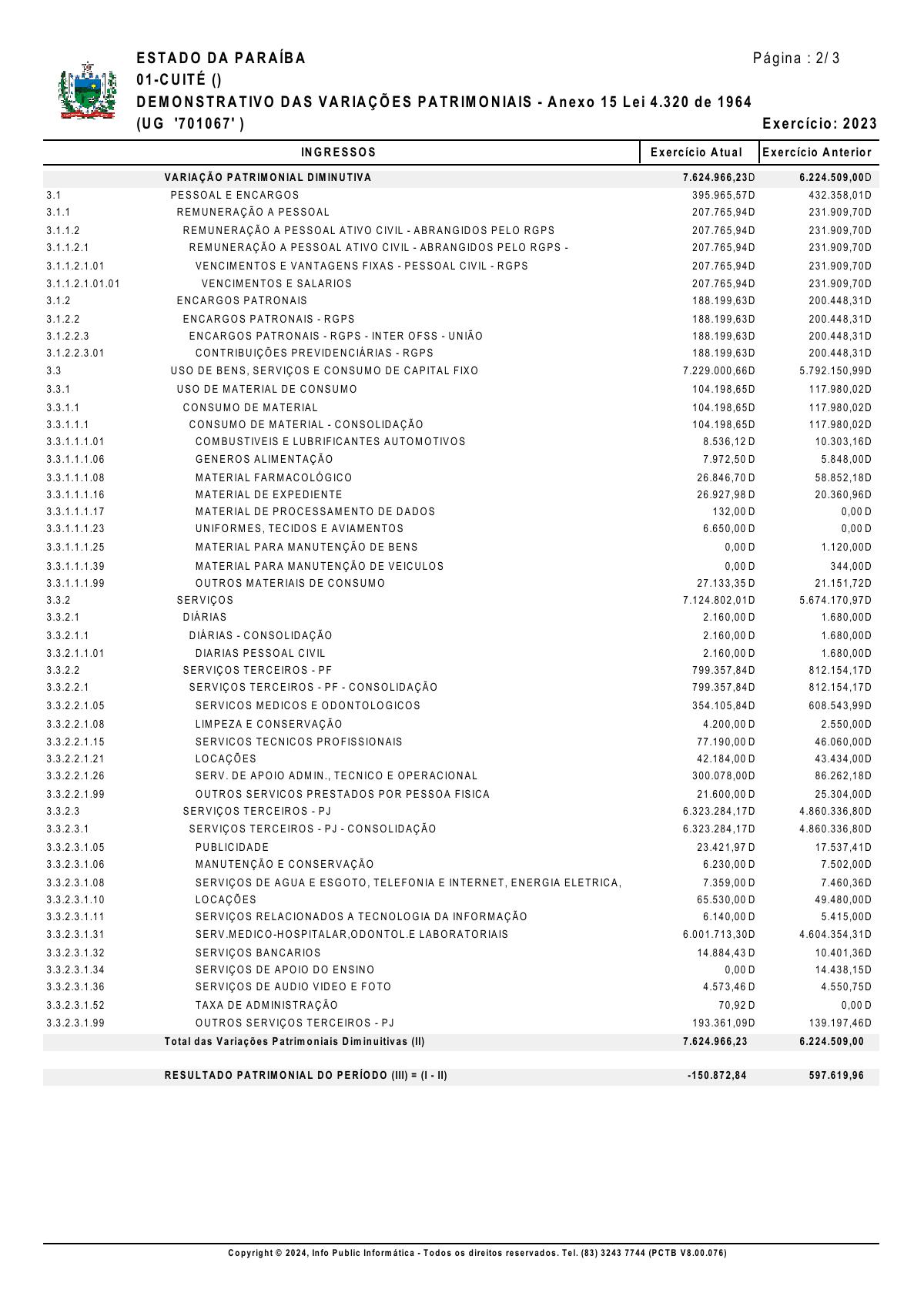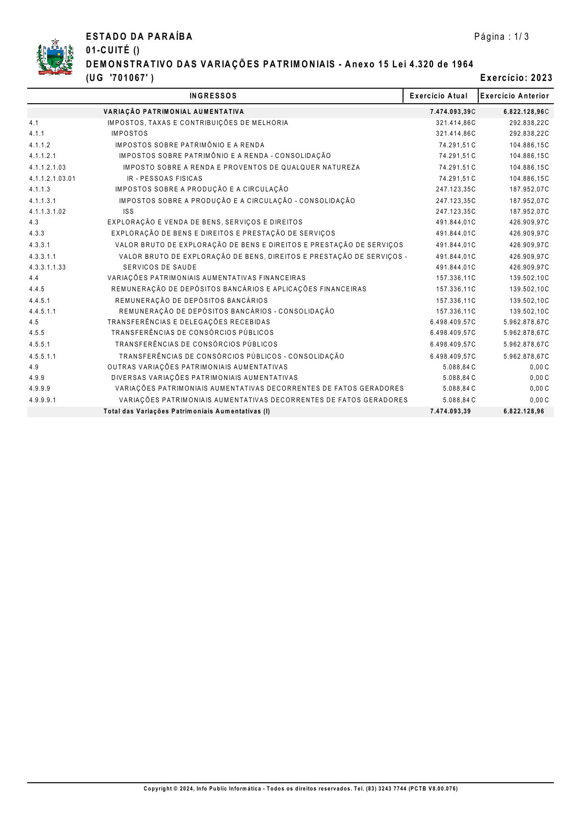 DEMONSTRATIVO DAS VARIAÇÕES PATRIMONIAIS - ANEXO 15 - LEI 4320 DE 1964