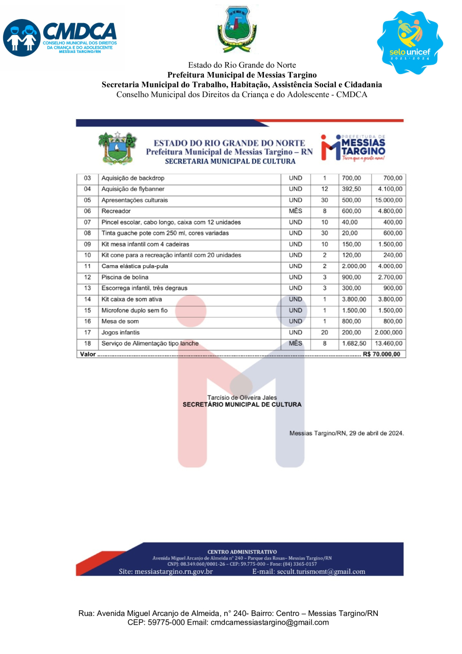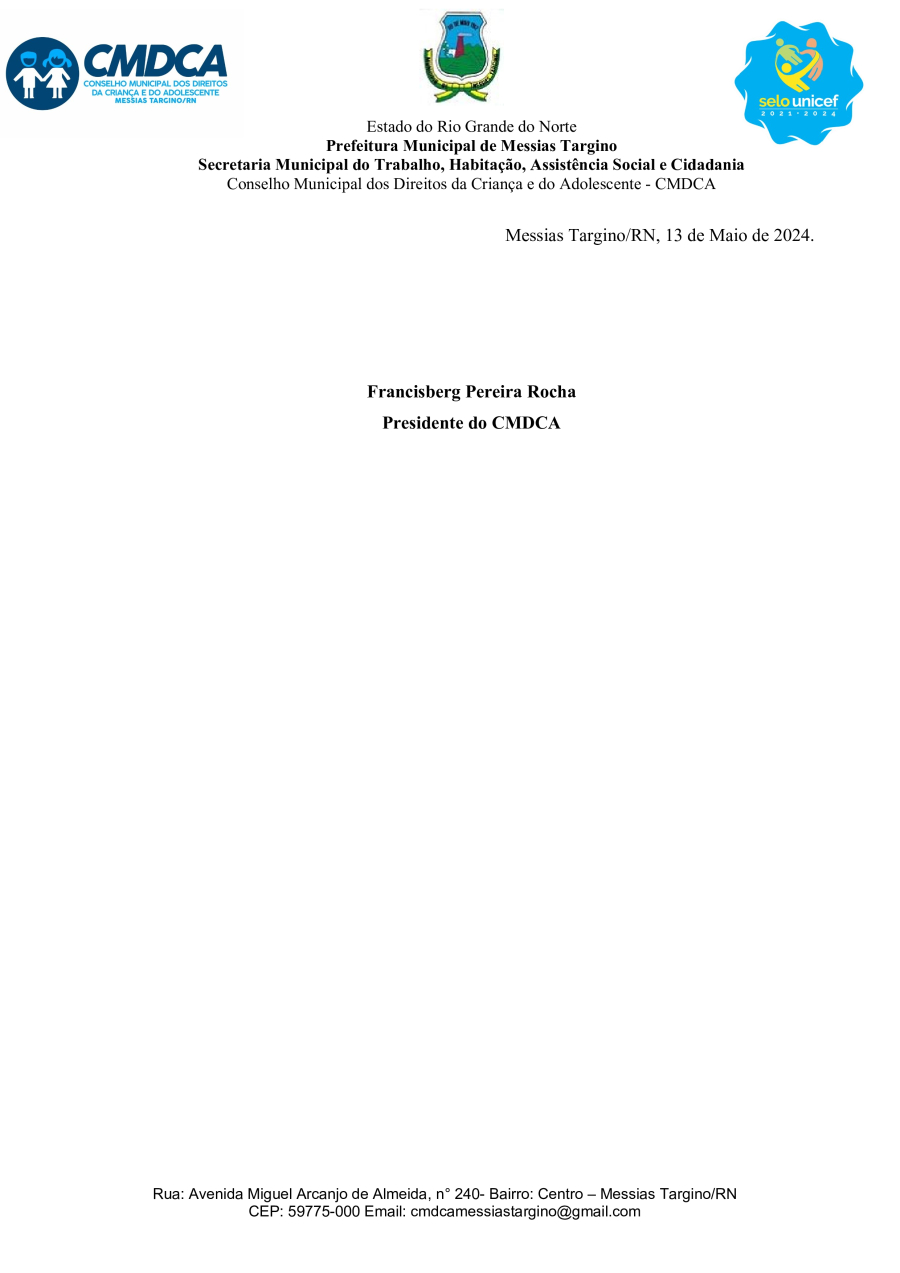 Conforme MP n° 2.200-2 de 24/08/2001, que institui a infraestrutura de chaves Públicas. Matéria Publicada no Diário Oficial do Município de Messias Targino/RN no dia - Edição 01042.