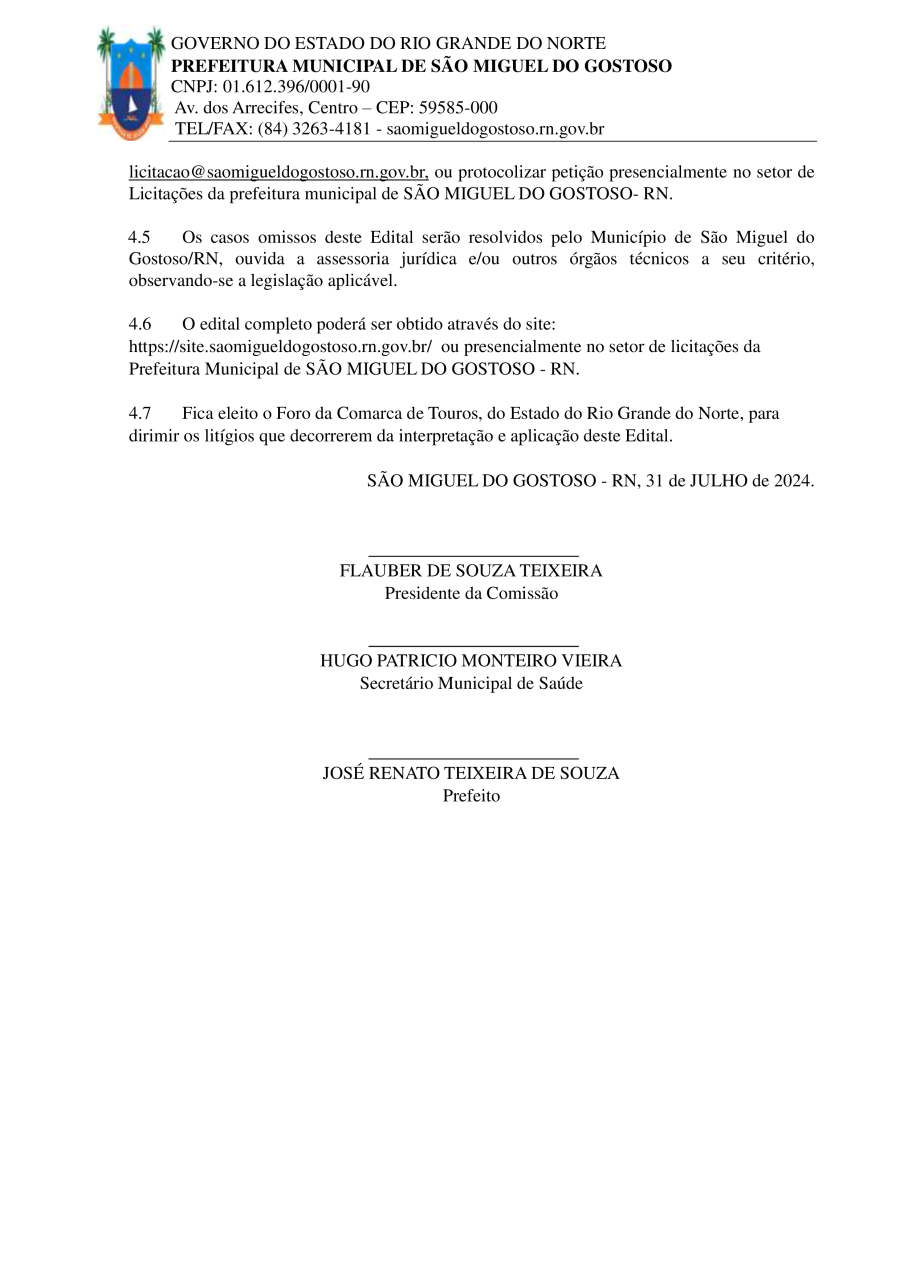 Conforme MP n° 2.200-2 de 24/08/2001, que institui a infraestrutura de chaves Públicas. Matéria Publicada no Diário Oficial do Município de São Miguel do Gostoso/RN no dia - Edição 00889.