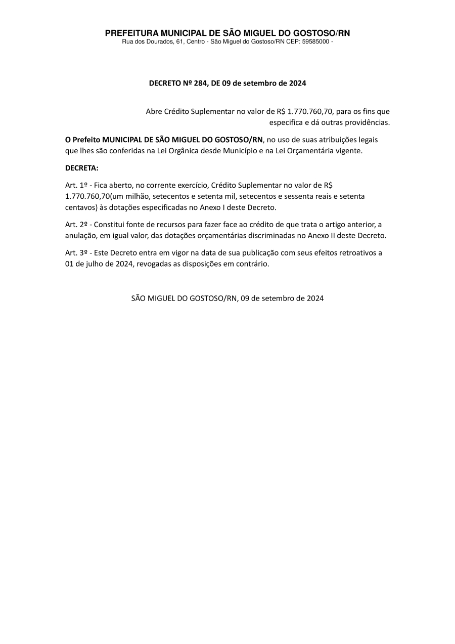 Conforme MP n° 2.200-2 de 24/08/2001, que institui a infraestrutura de chaves Públicas. Matéria Publicada no Diário Oficial do Município de São Miguel do Gostoso/RN no dia - Edição 00916.