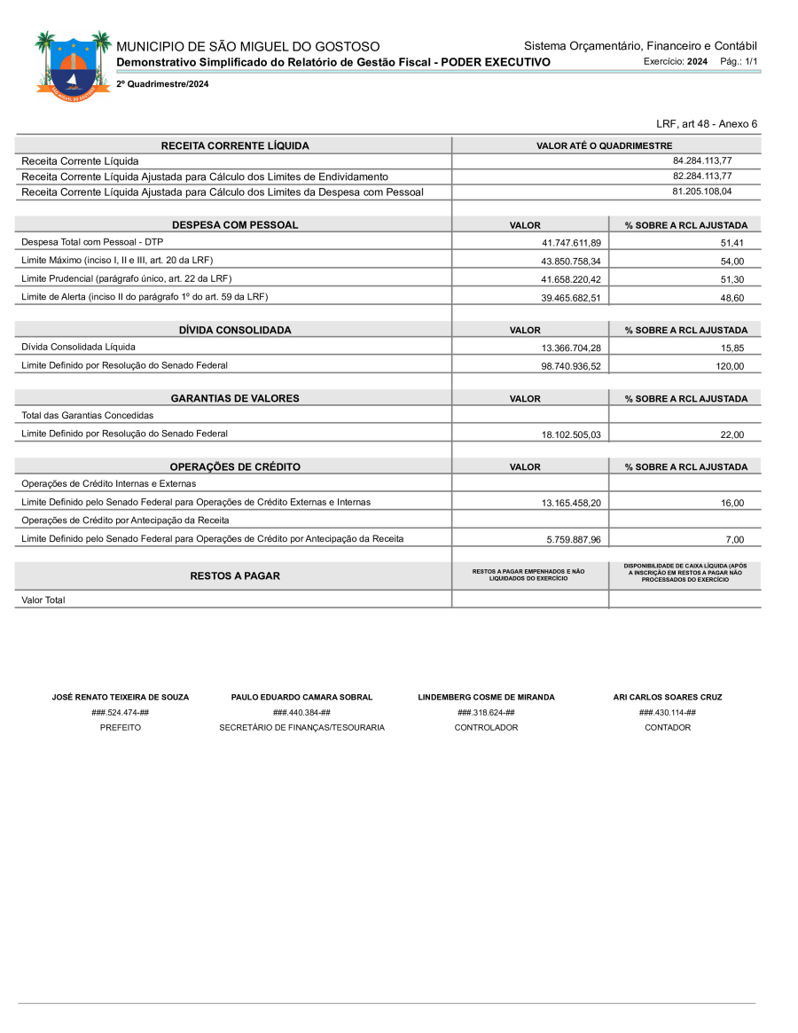 RETIFICAÇÃO - RGF 2º QUADRIMESTRE