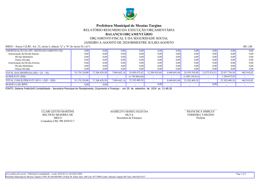 Conforme MP n° 2.200-2 de 24/08/2001, que institui a infraestrutura de chaves Públicas. Matéria Publicada no Diário Oficial do Município de Messias Targino/RN no dia - Edição 01135.